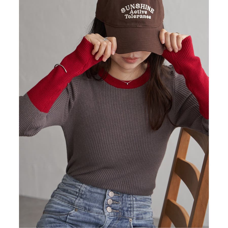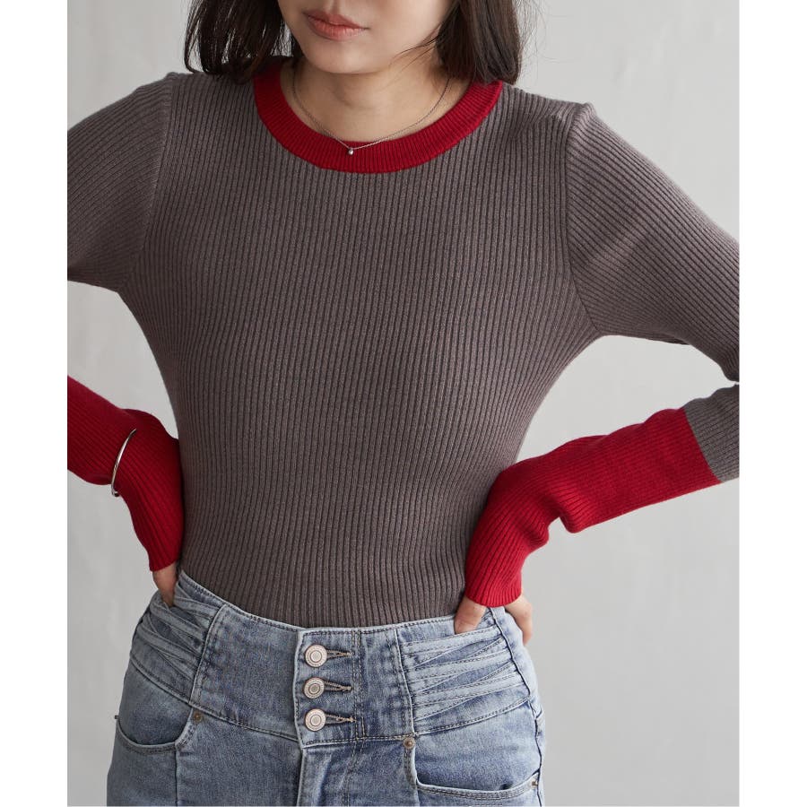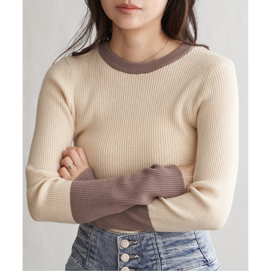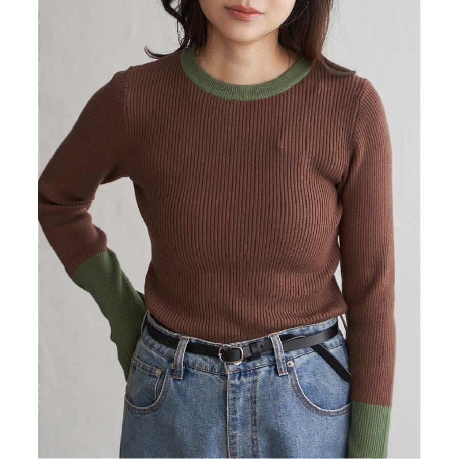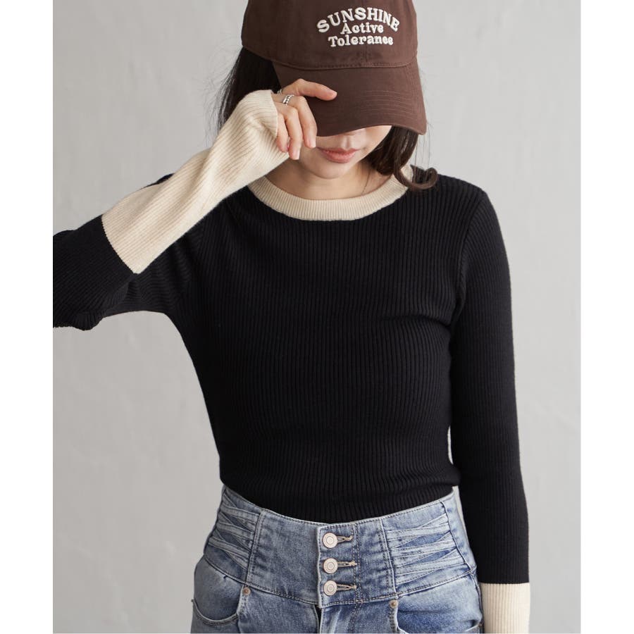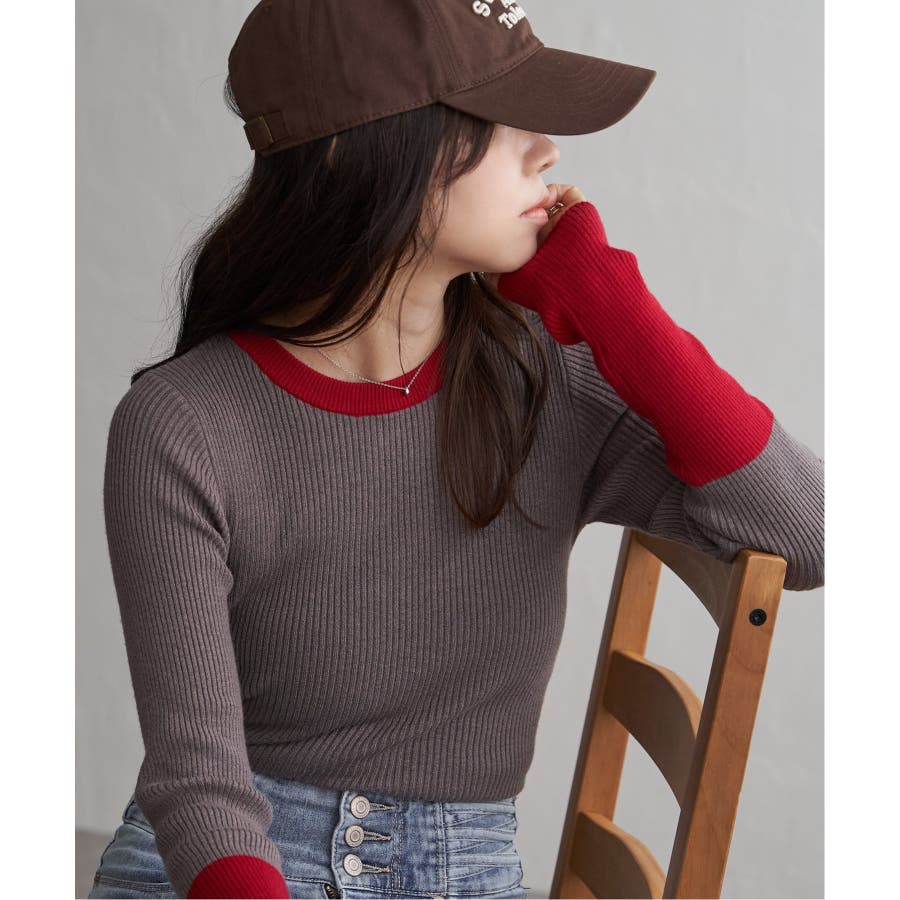 シンプルながらも配色デザインが効いたリブニット。