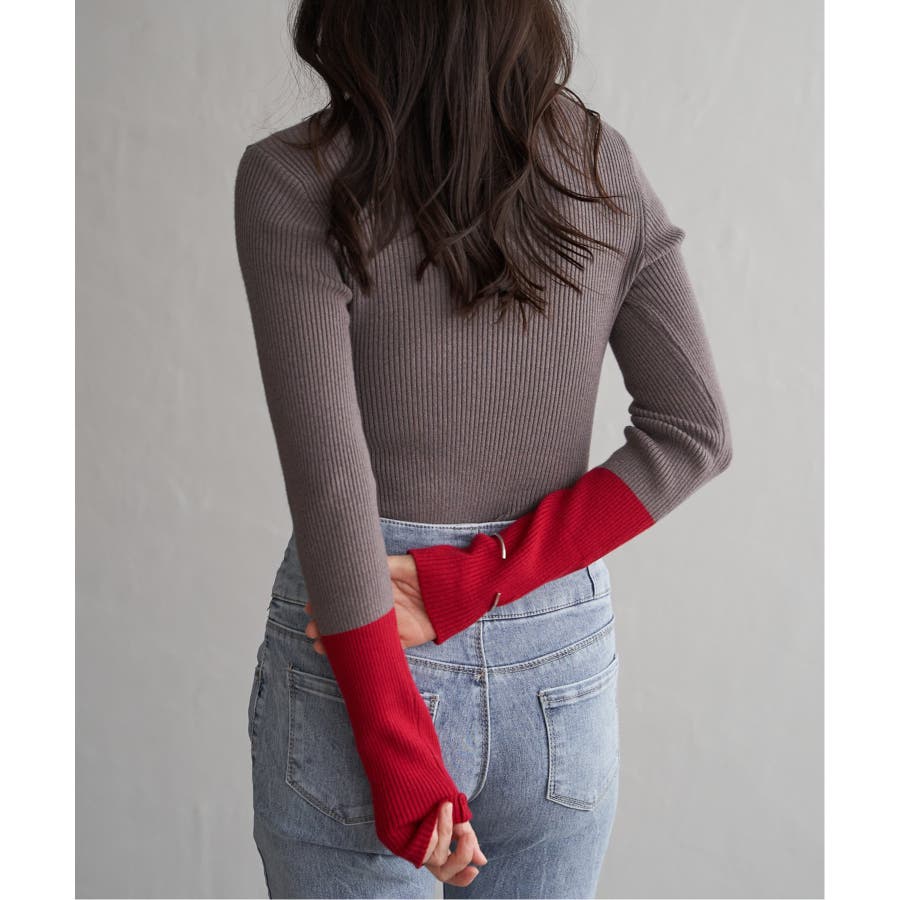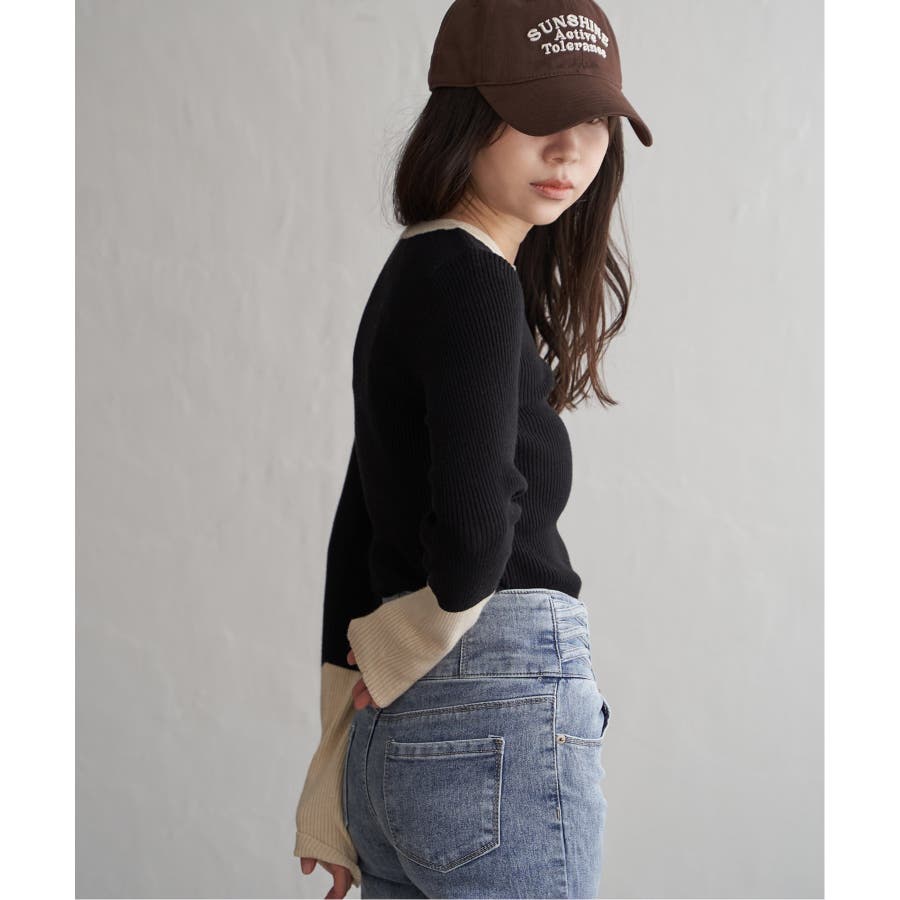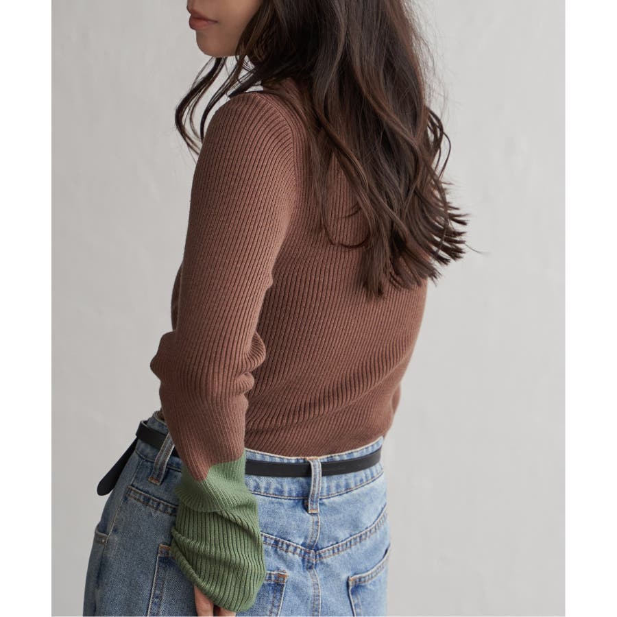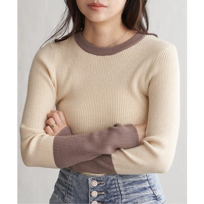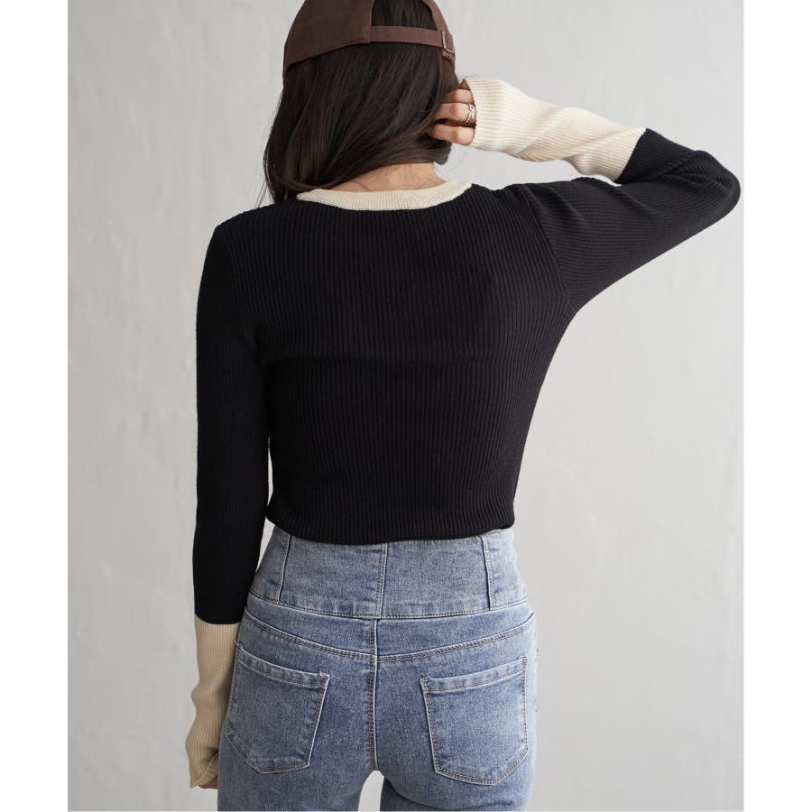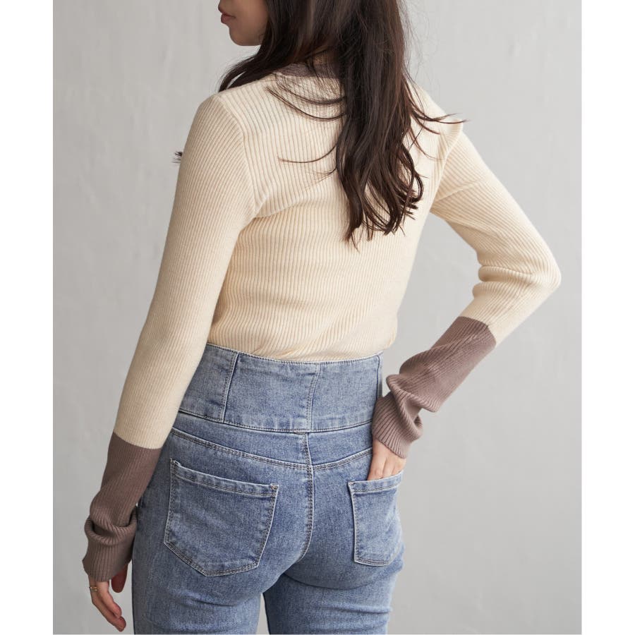 シンプルながらも配色デザインが効いたリブニット。