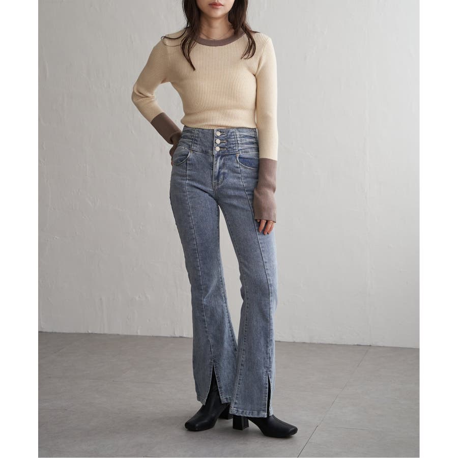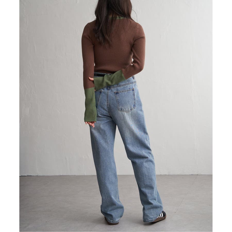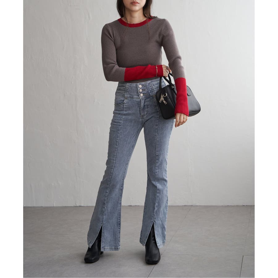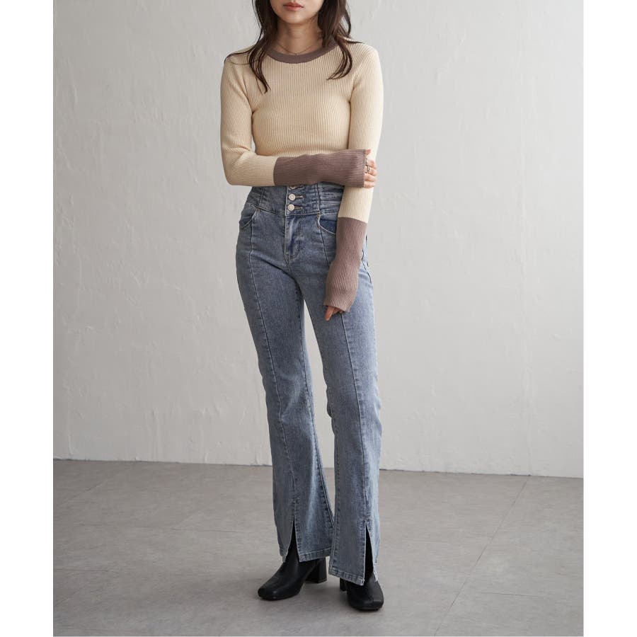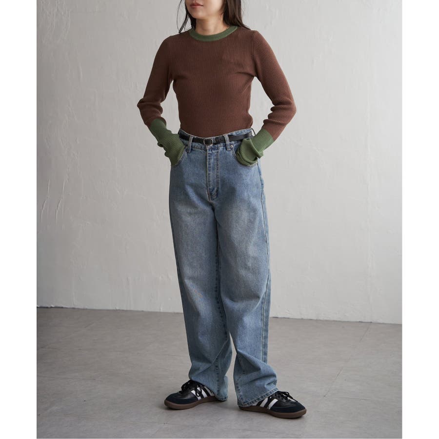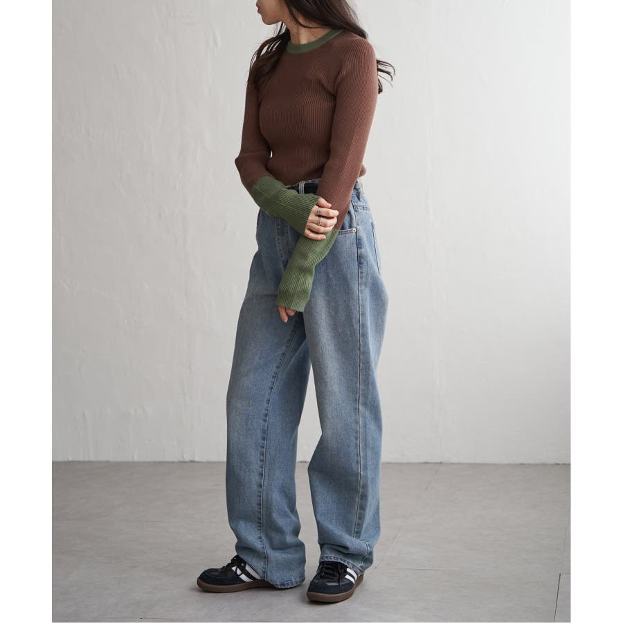 シンプルながらも配色デザインが効いたリブニット。