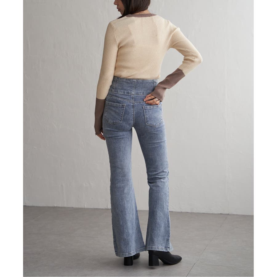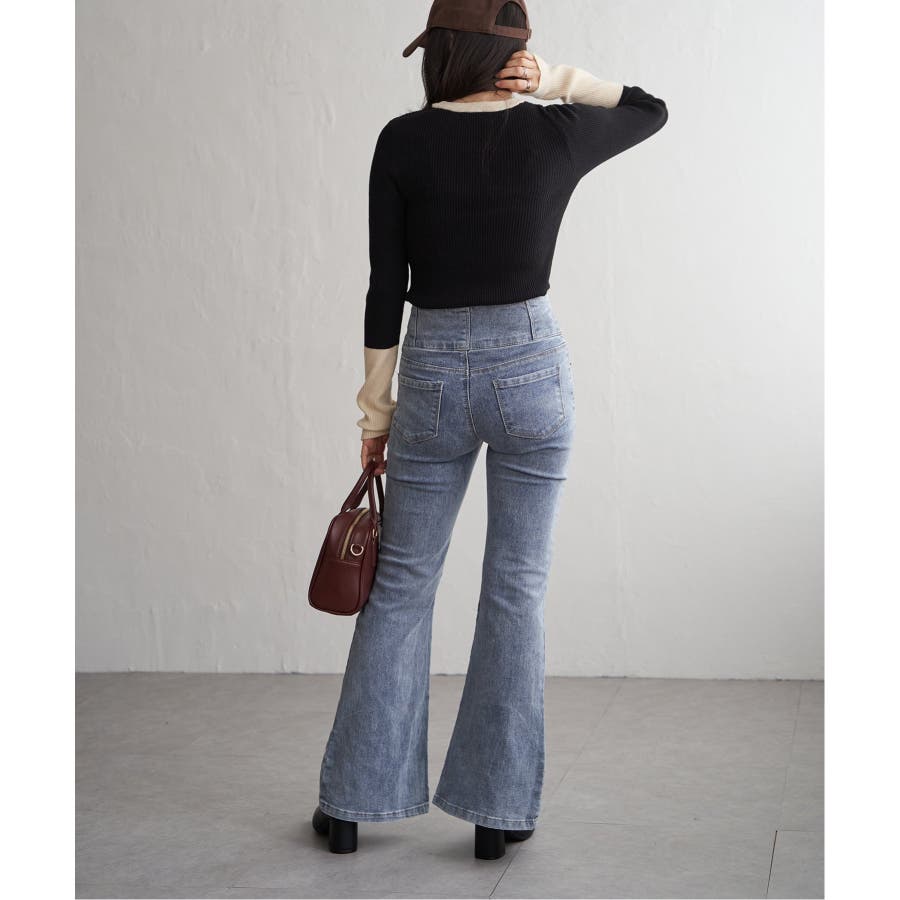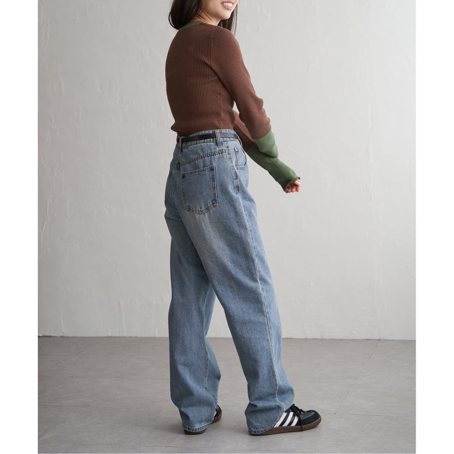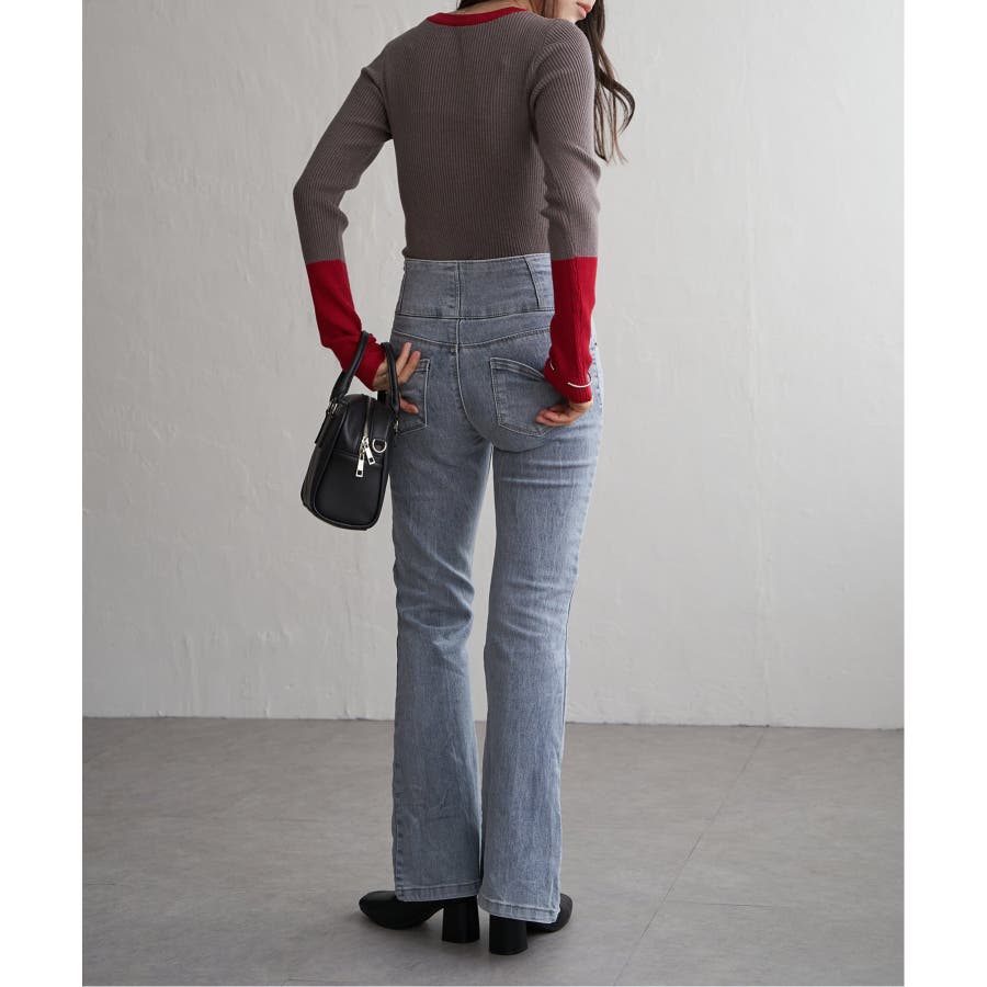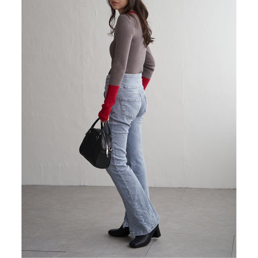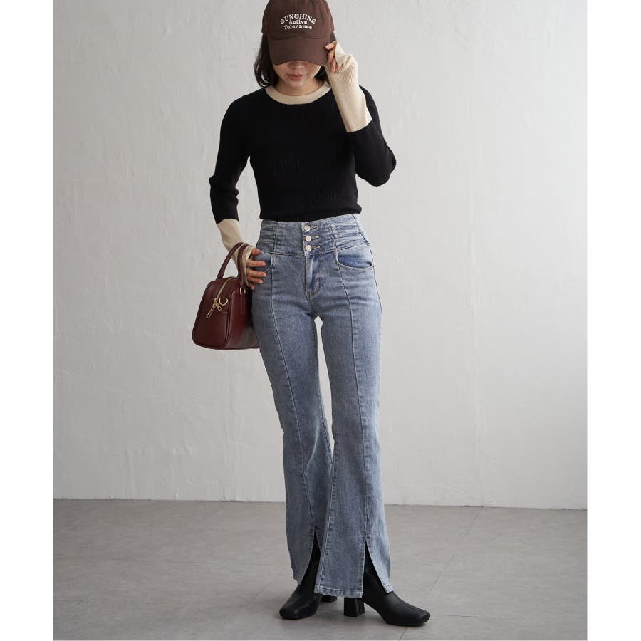 シンプルながらも配色デザインが効いたリブニット。