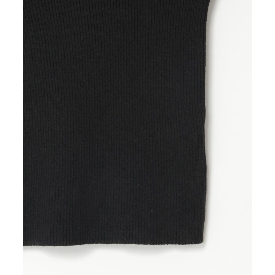 全体はすっきりとしたリブ編みで仕上げられ、身体に沿うようなシルエットが特徴。