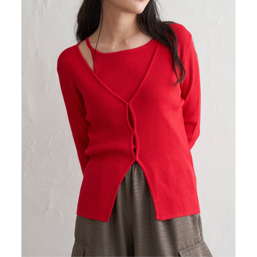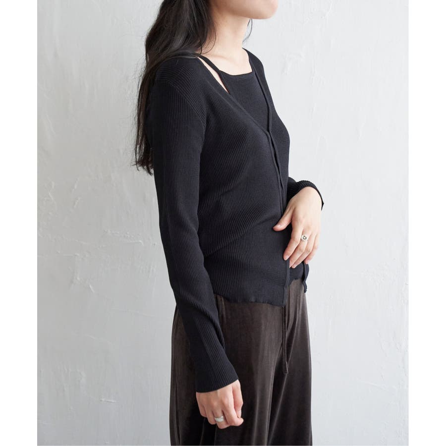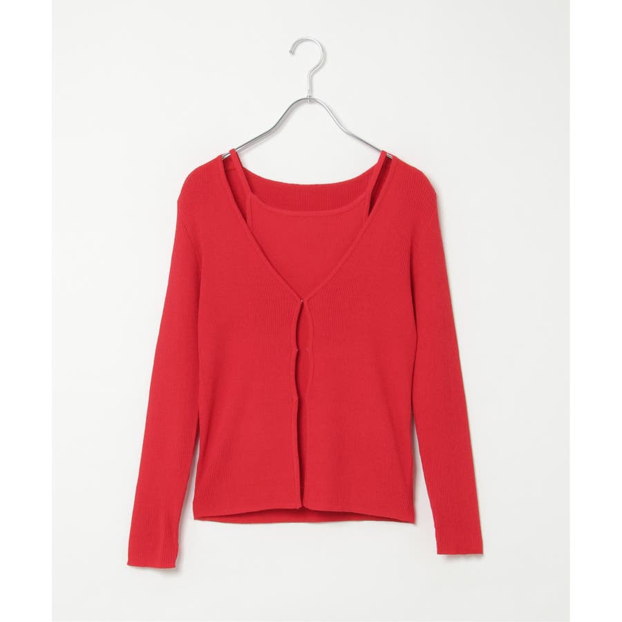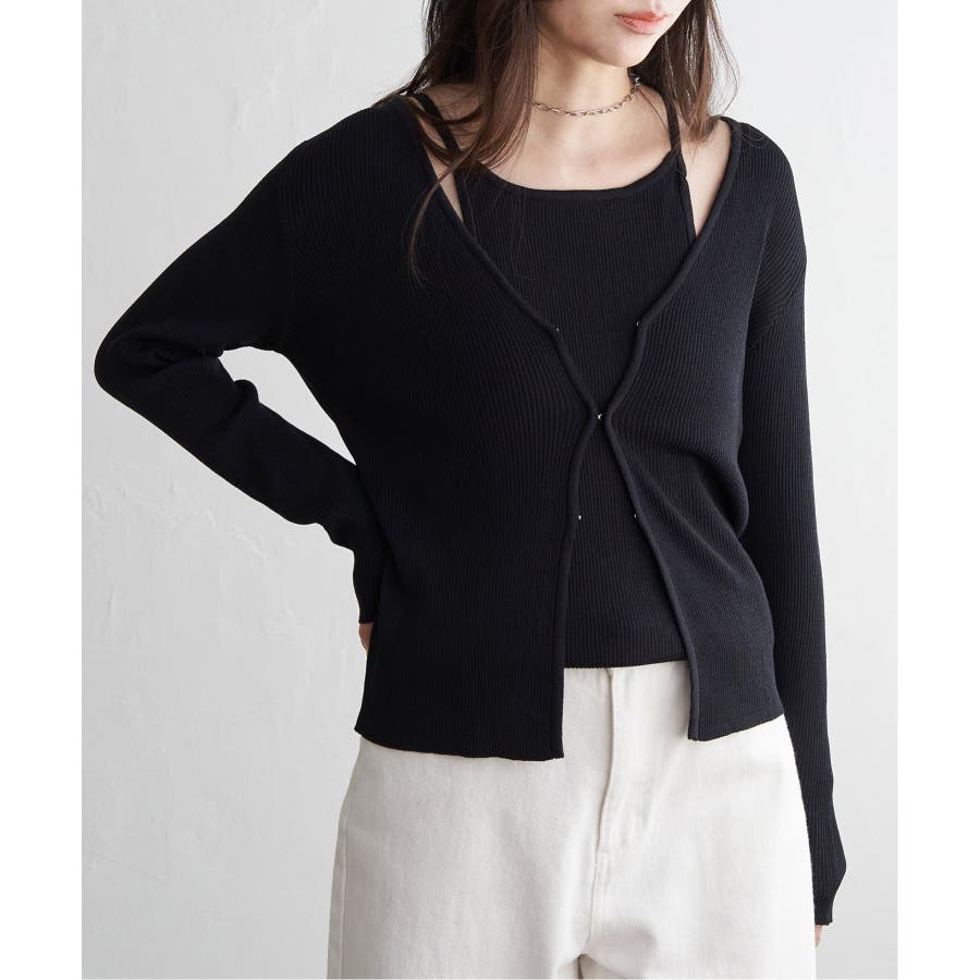 【2点セット】レーヨンポリネックデザインリブカーディガン
