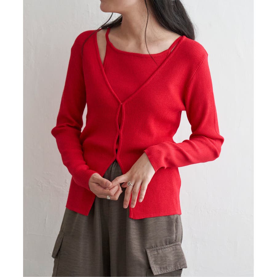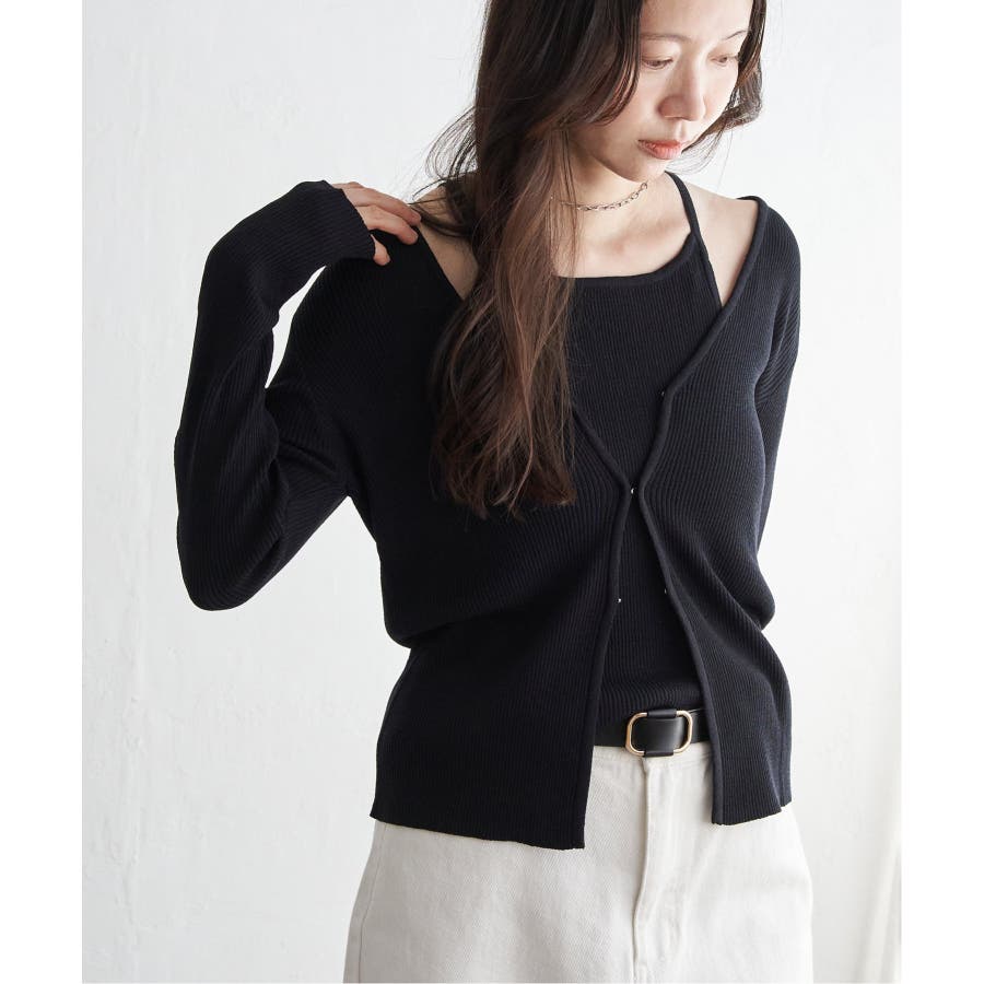 キャミソール+カーディガンのアンサンブルです。