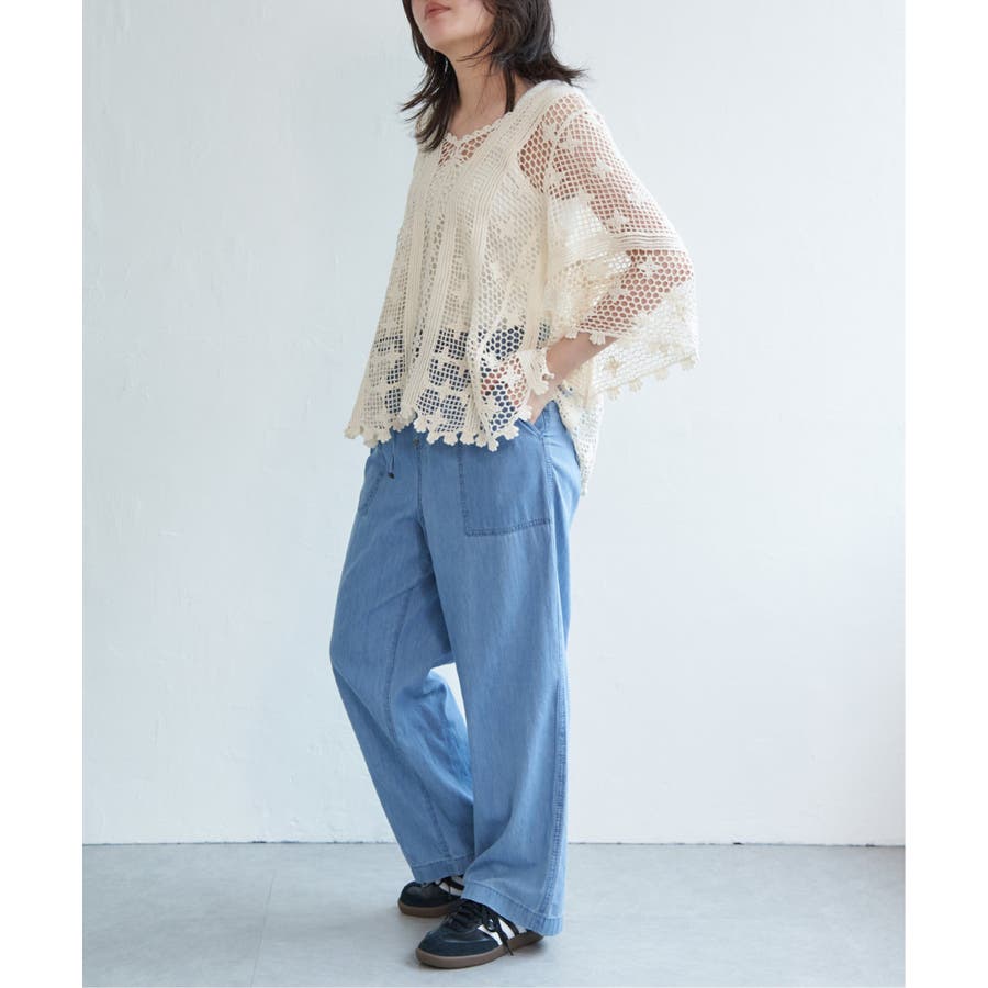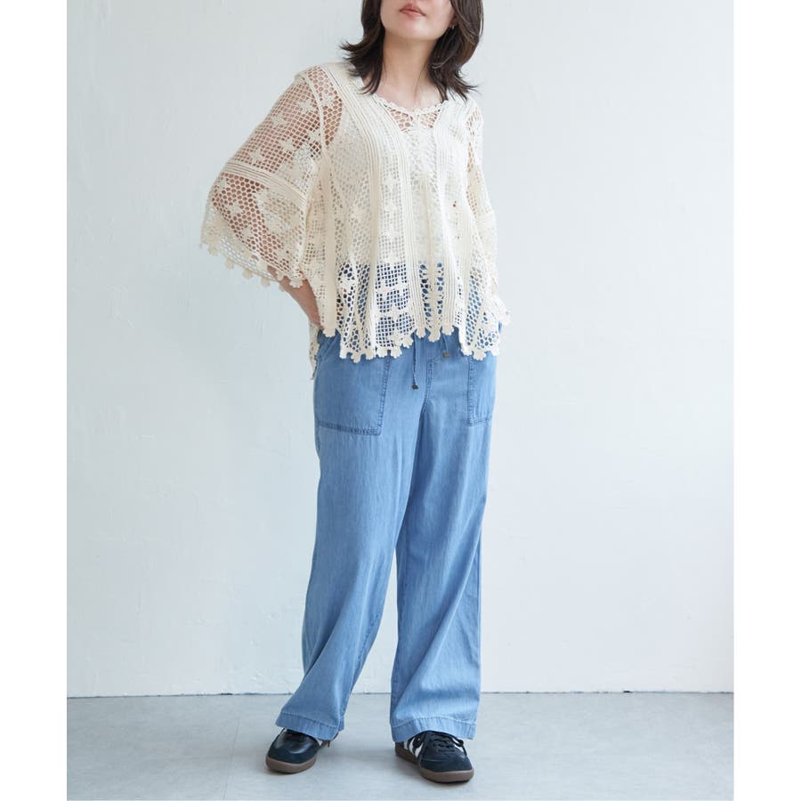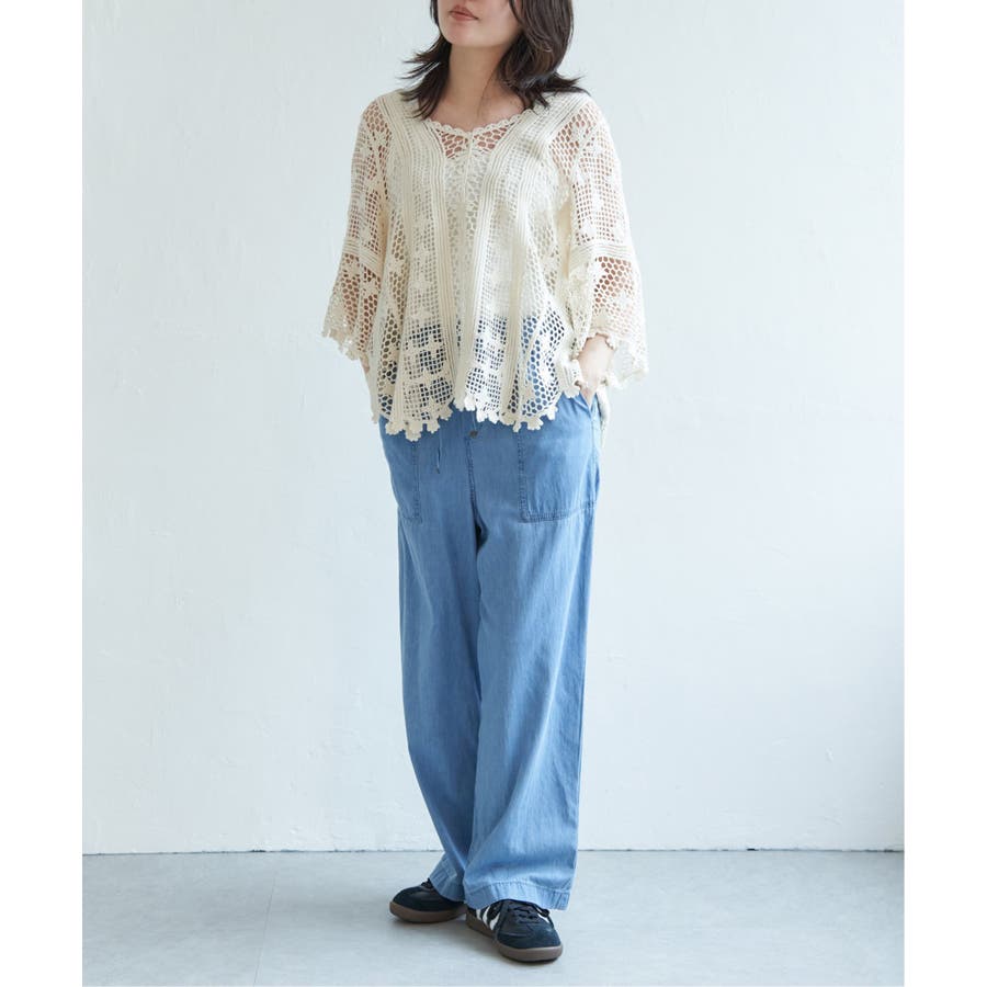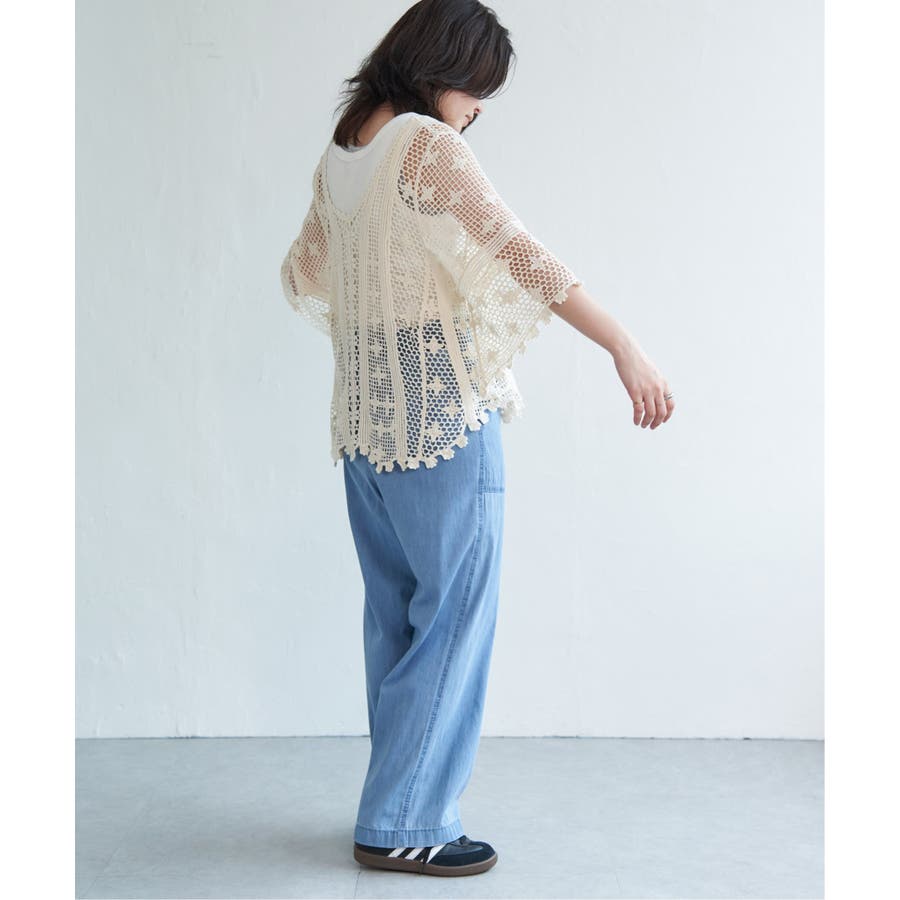 レースのような繊細な透け感が、コーディネートに涼しげな抜け感をプラスします。