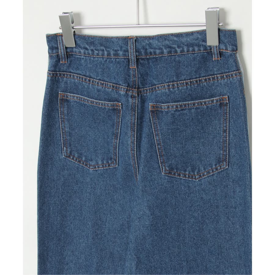 濃い色のデニムと切り替えることで、前から見た時の細見え効果も◎