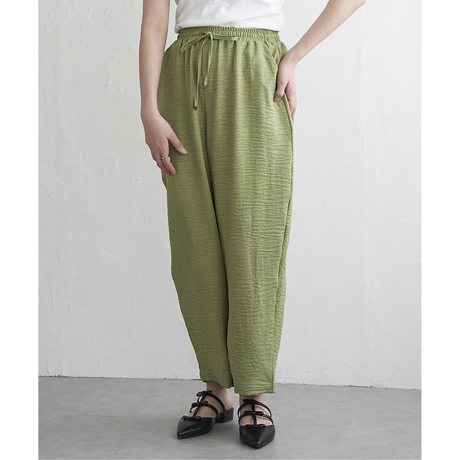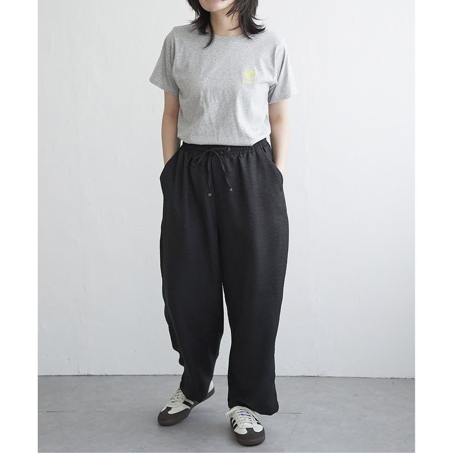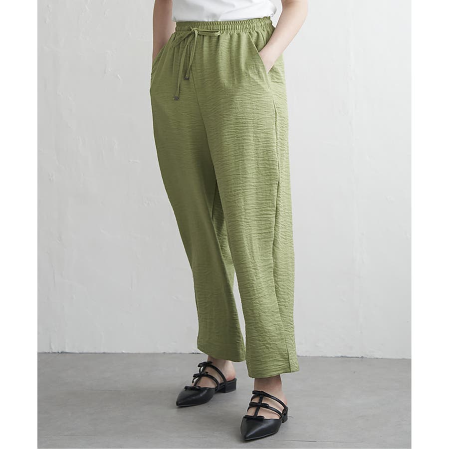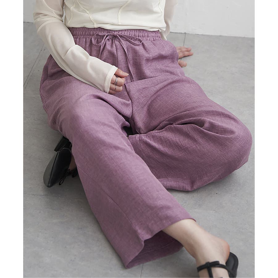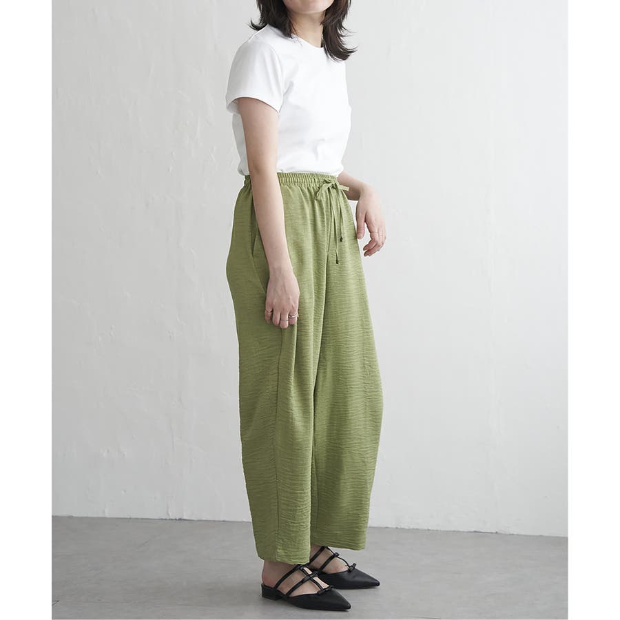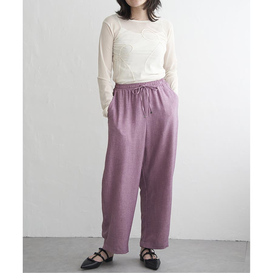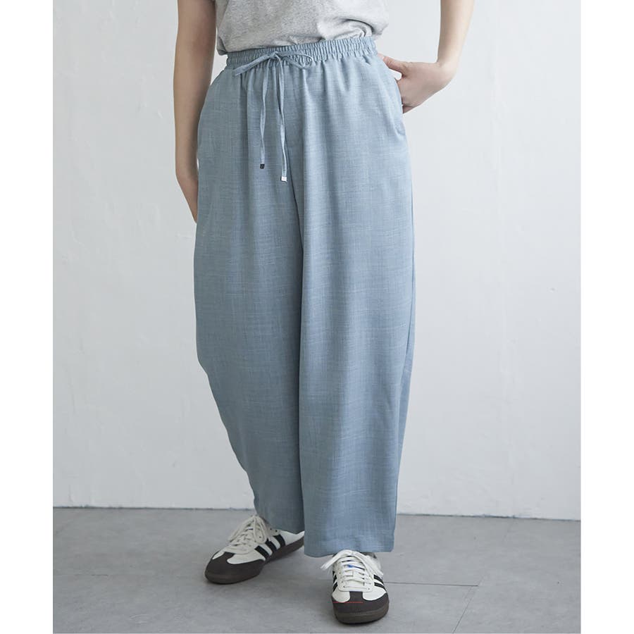 軽やかなリネンライク素材が春夏にぴったりで、ウエストゴム仕様だからストレスフリーな履き心地。