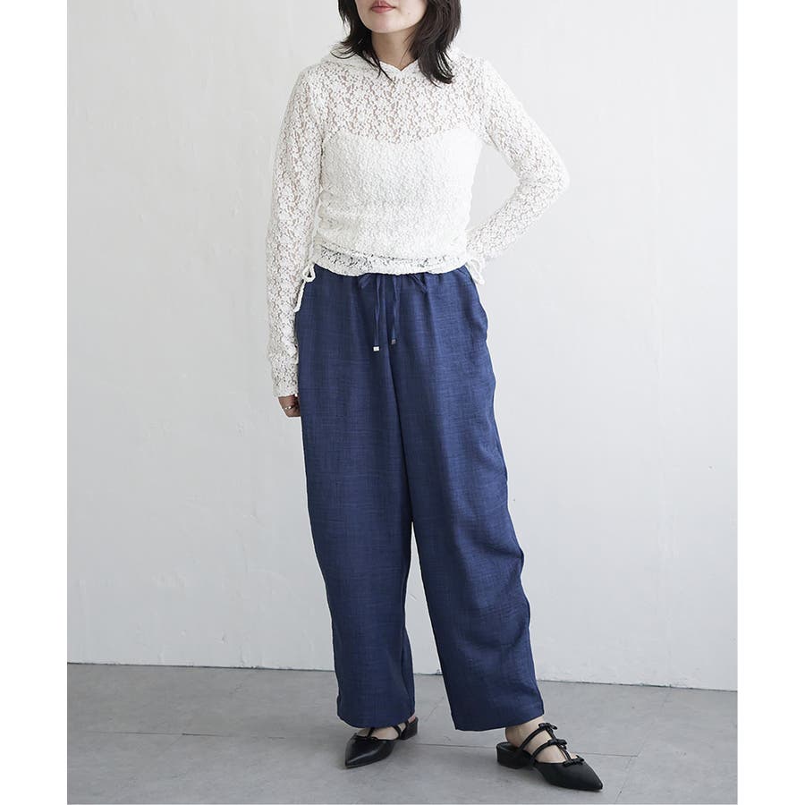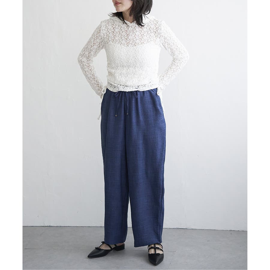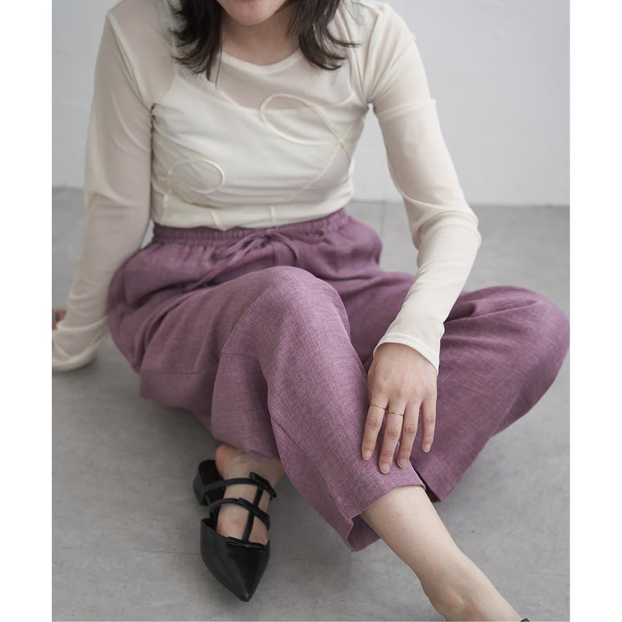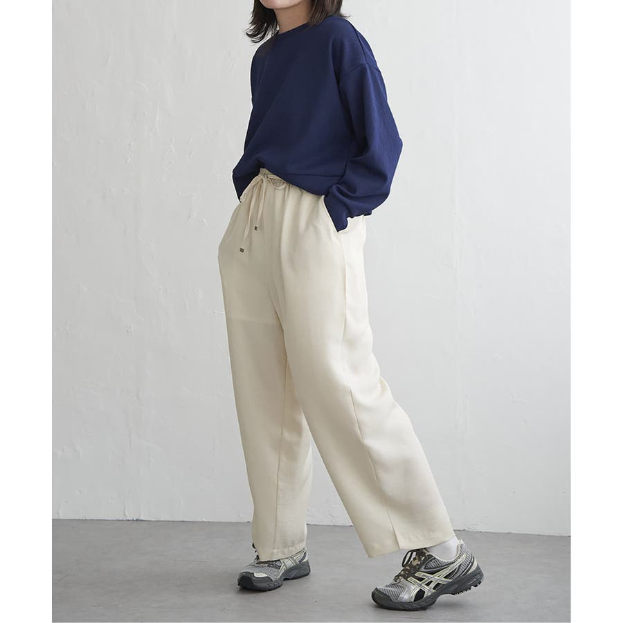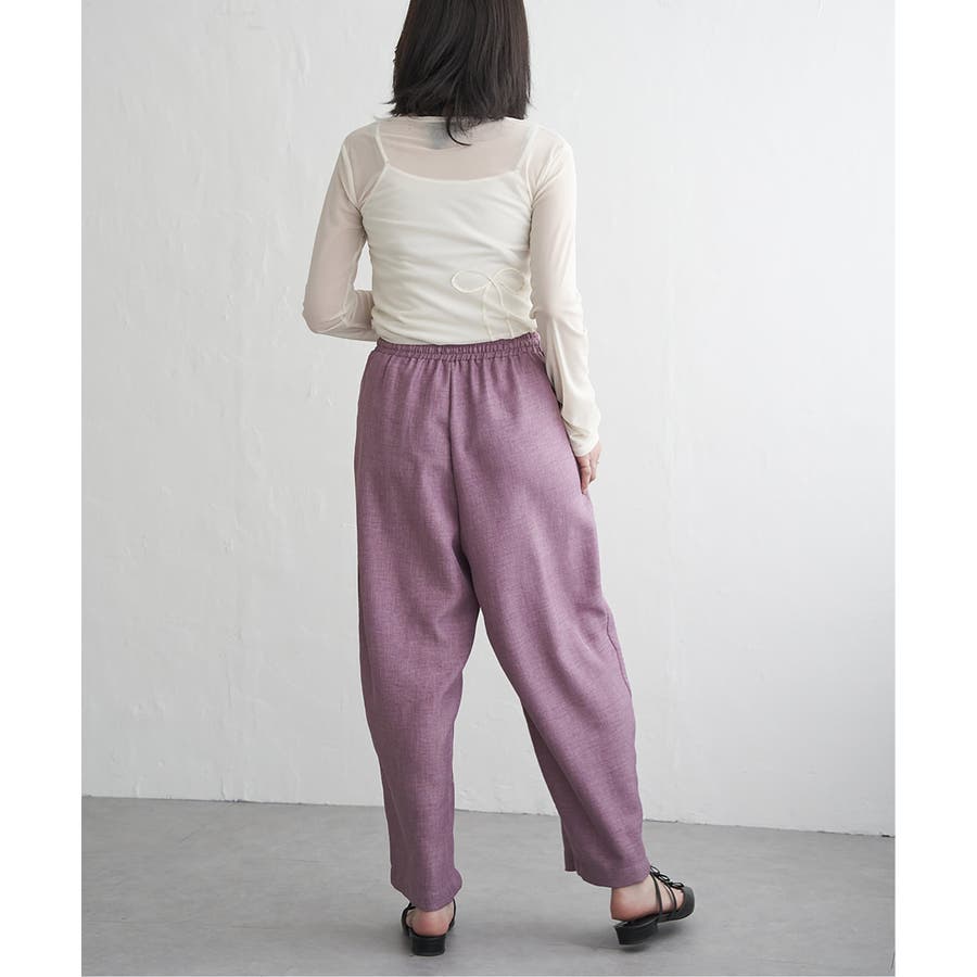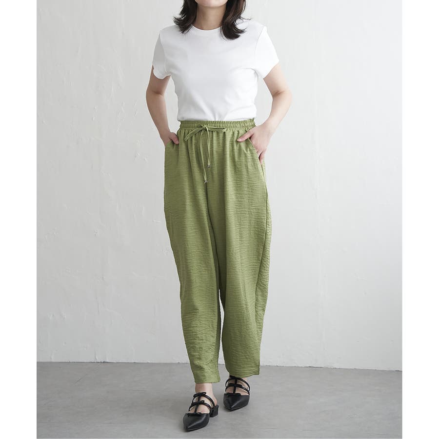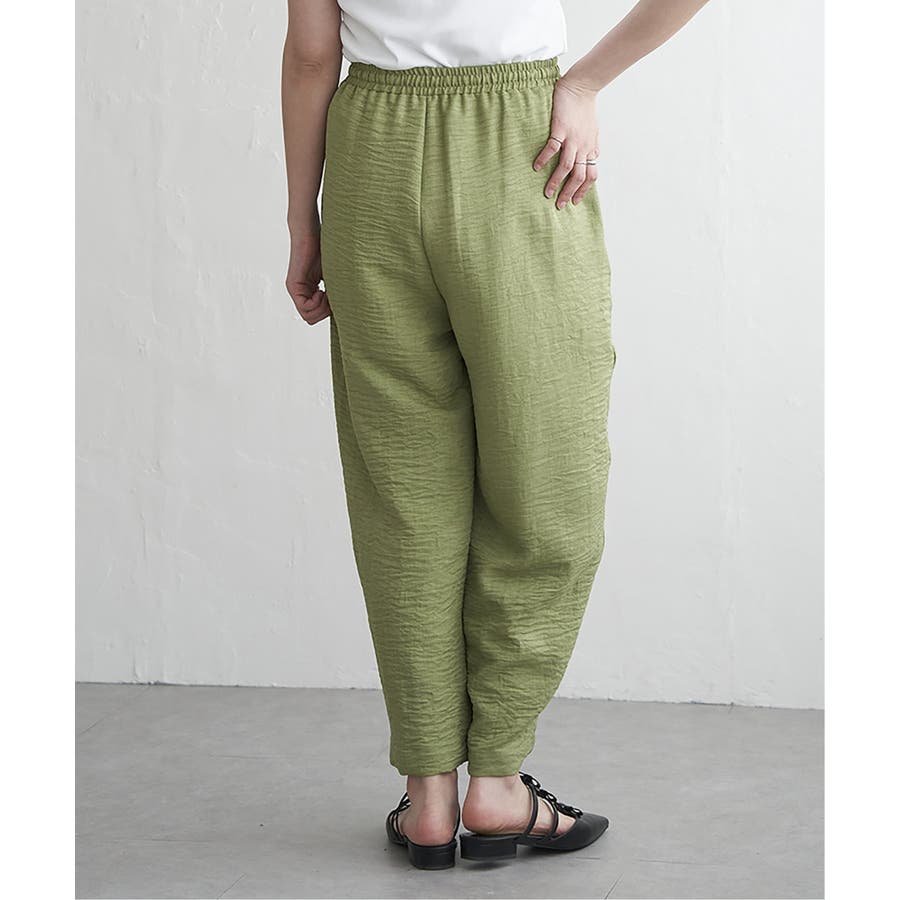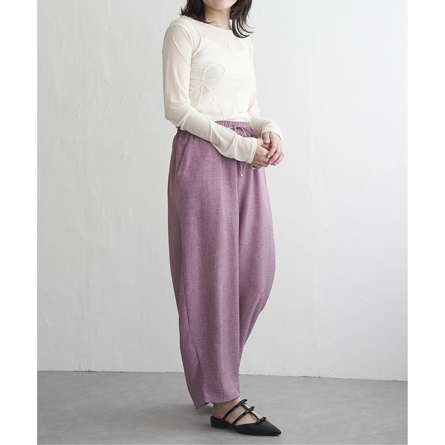 軽やかなリネンライク素材が春夏にぴったりで、ウエストゴム仕様だからストレスフリーな履き心地。