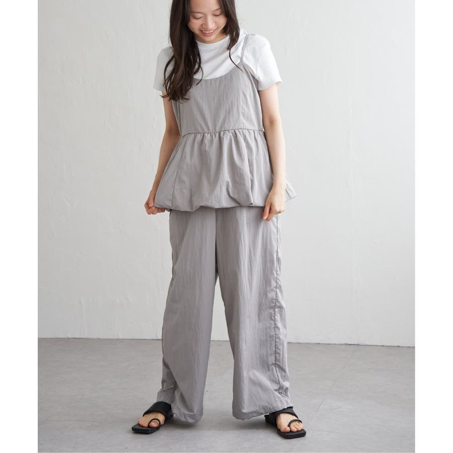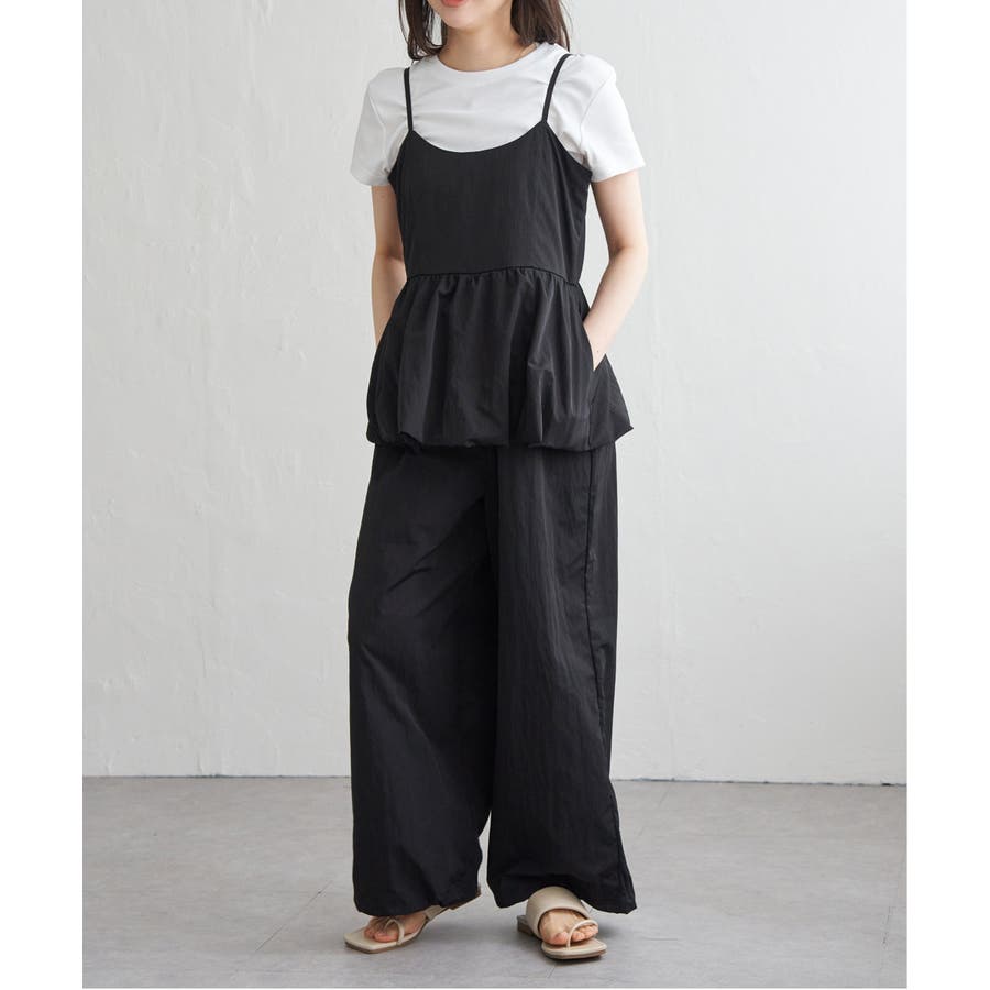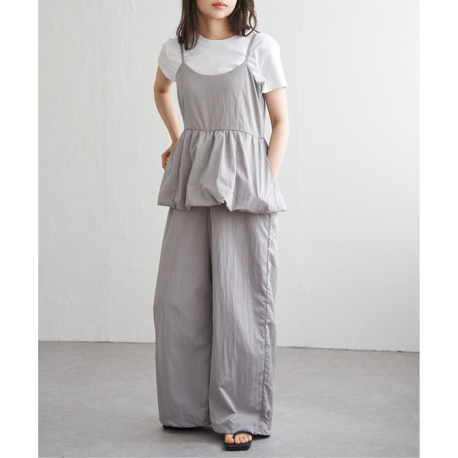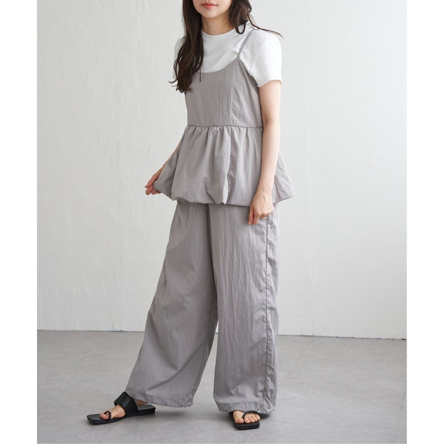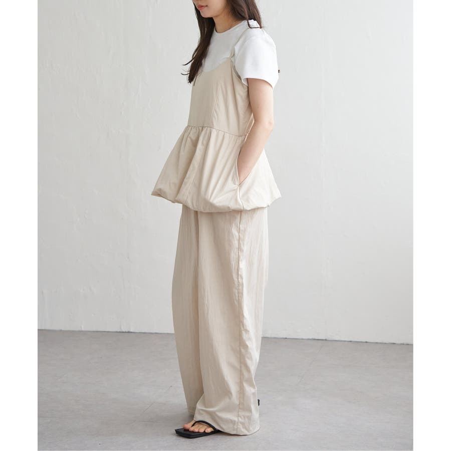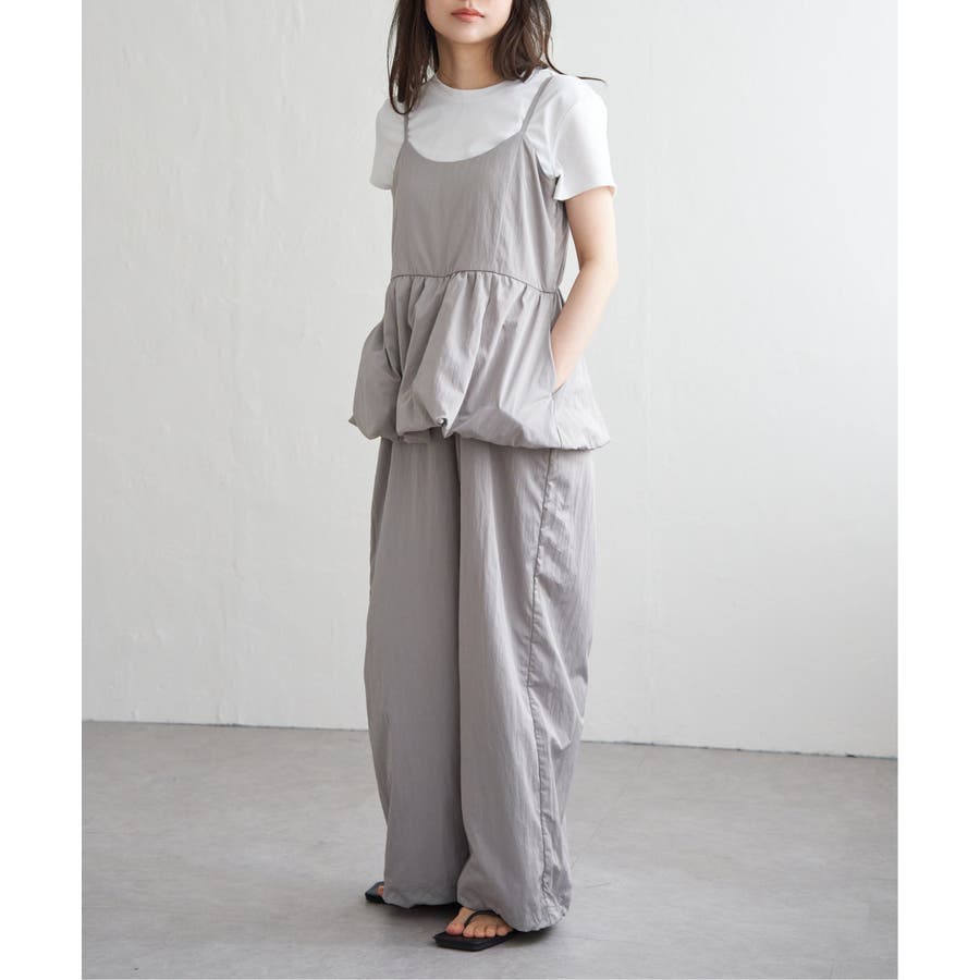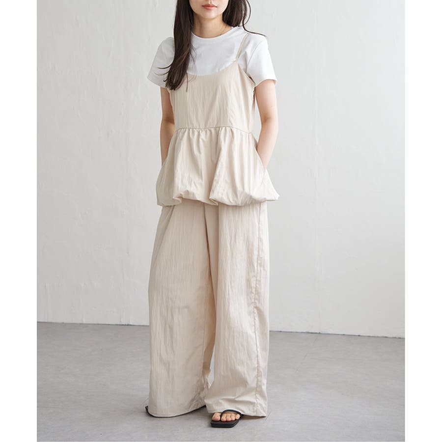 今年人気なキャミサロペットがコラボ商品で登場!!ふんわりとしたバルーンシルエットが特徴的。ウエスト切り替えとギャザーで立体感を出し、裾にかけて丸みのあるフォルムが女性らしい柔らかさと体型カバーを実現。華奢な肩紐が抜け感をプラスし、インナーとのレイヤードも楽しめるアイテムです。リラックス感のあるワイドパンツシルエットで、体のラインを拾わず着心地も◎パンツの裾はドロストでシルエット変化も可能です。
