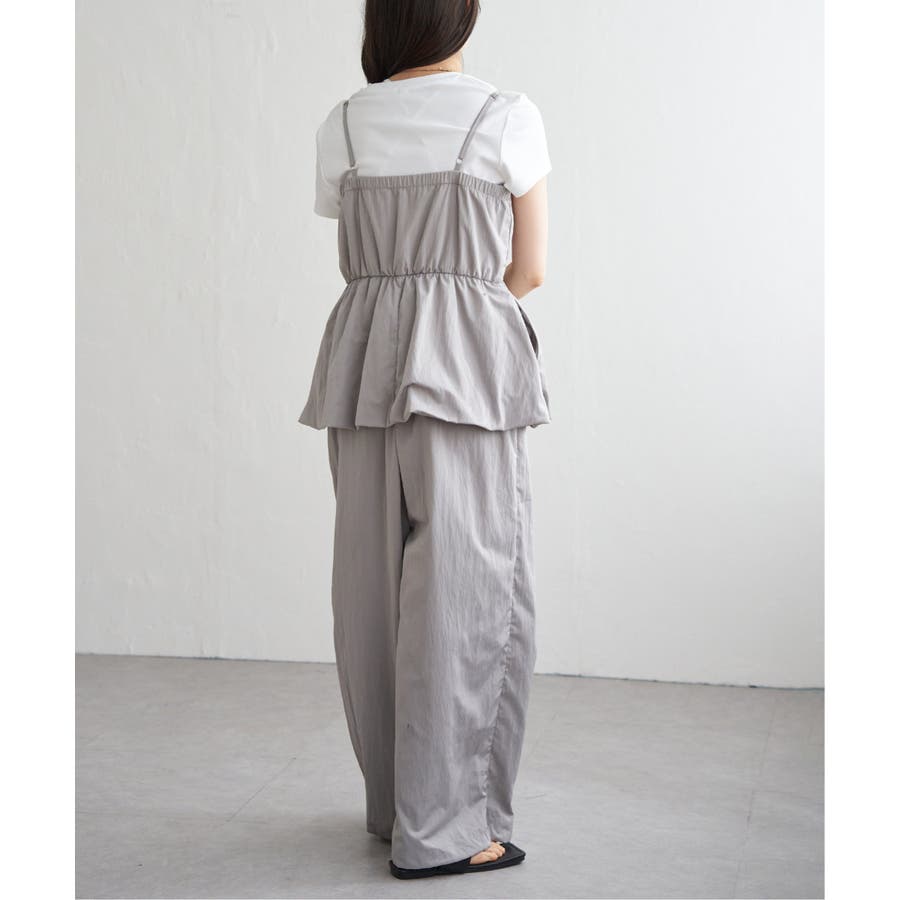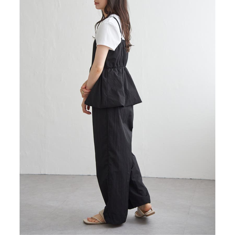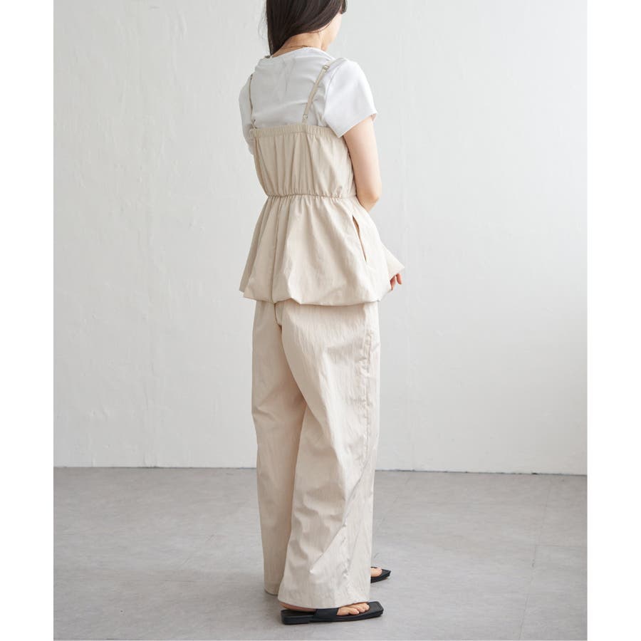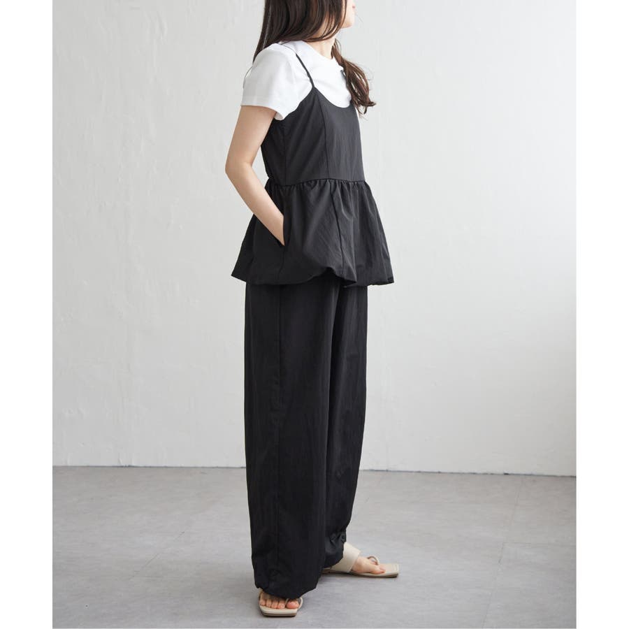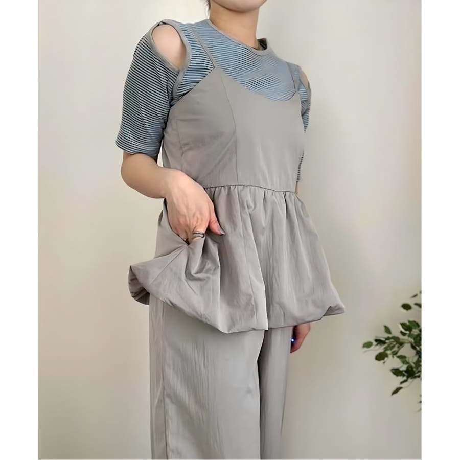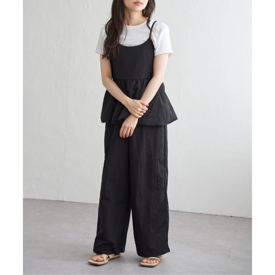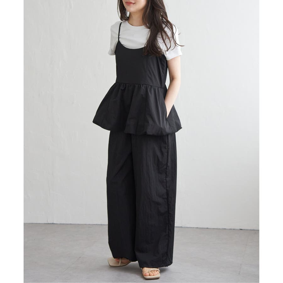 今年人気なキャミサロペットがコラボ商品で登場!!ふんわりとしたバルーンシルエットが特徴的。ウエスト切り替えとギャザーで立体感を出し、裾にかけて丸みのあるフォルムが女性らしい柔らかさと体型カバーを実現。華奢な肩紐が抜け感をプラスし、インナーとのレイヤードも楽しめるアイテムです。リラックス感のあるワイドパンツシルエットで、体のラインを拾わず着心地も◎パンツの裾はドロストでシルエット変化も可能です。