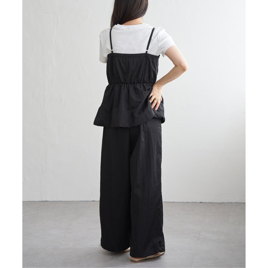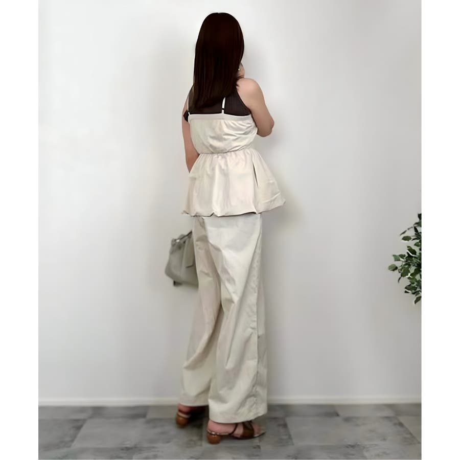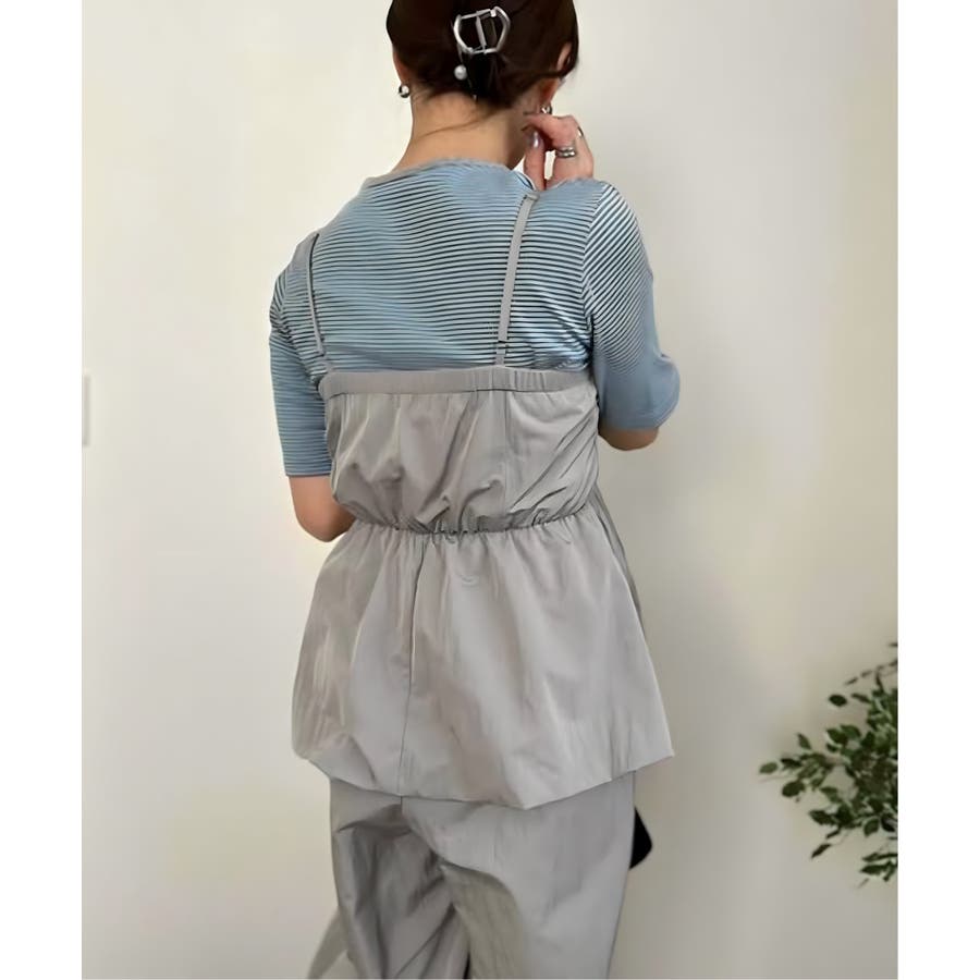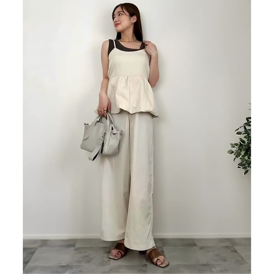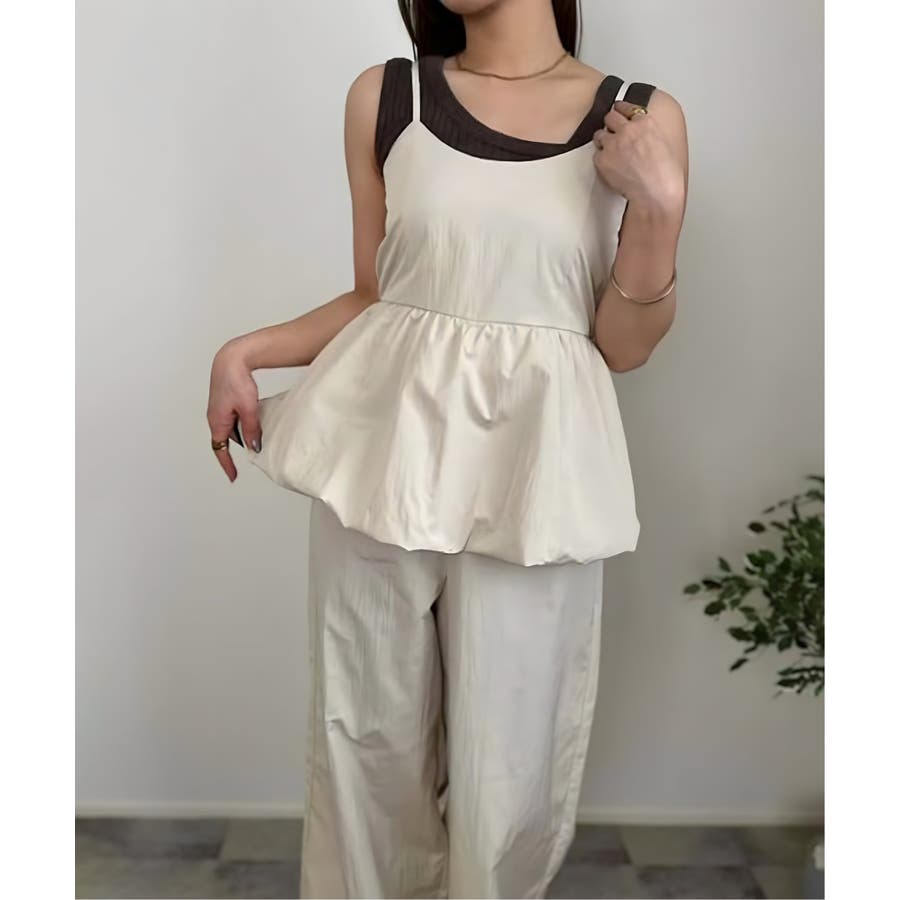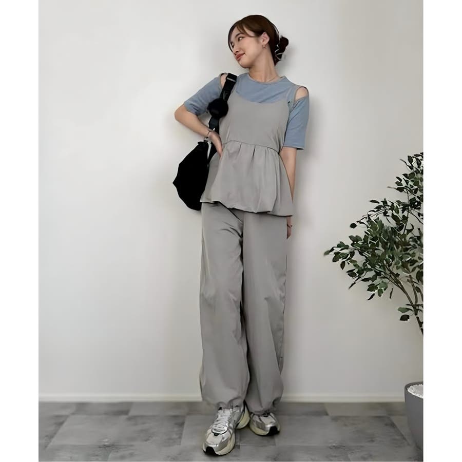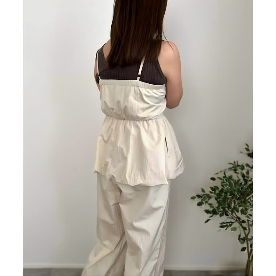 今年人気なキャミサロペットがコラボ商品で登場!!ふんわりとしたバルーンシルエットが特徴的。ウエスト切り替えとギャザーで立体感を出し、裾にかけて丸みのあるフォルムが女性らしい柔らかさと体型カバーを実現。華奢な肩紐が抜け感をプラスし、インナーとのレイヤードも楽しめるアイテムです。リラックス感のあるワイドパンツシルエットで、体のラインを拾わず着心地も◎パンツの裾はドロストでシルエット変化も可能です。