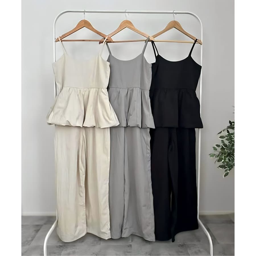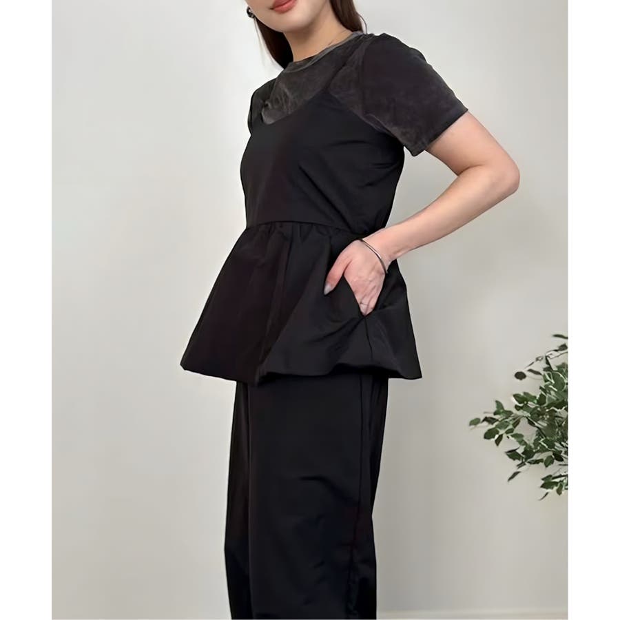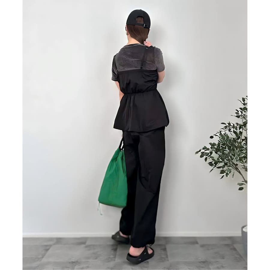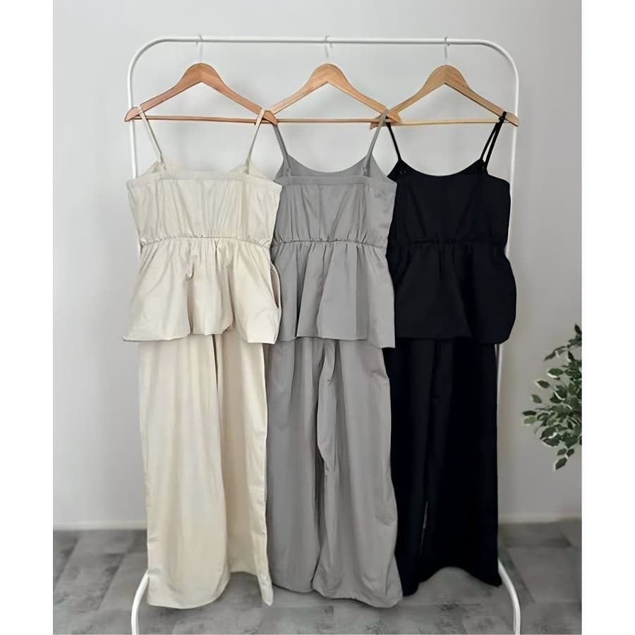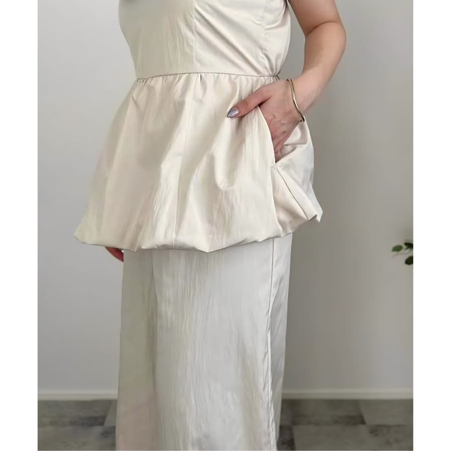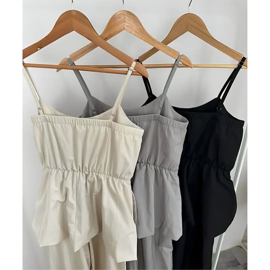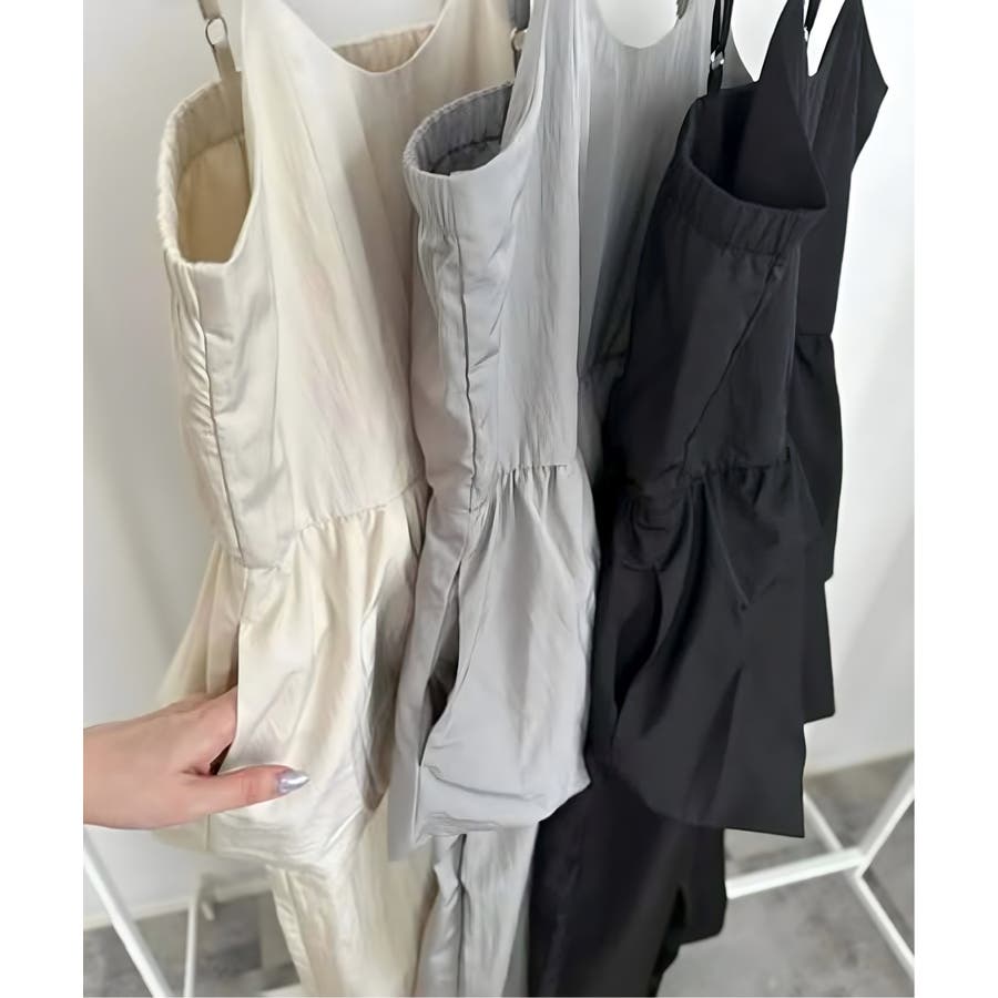 今年人気なキャミサロペットがコラボ商品で登場!!ふんわりとしたバルーンシルエットが特徴的。ウエスト切り替えとギャザーで立体感を出し、裾にかけて丸みのあるフォルムが女性らしい柔らかさと体型カバーを実現。華奢な肩紐が抜け感をプラスし、インナーとのレイヤードも楽しめるアイテムです。リラックス感のあるワイドパンツシルエットで、体のラインを拾わず着心地も◎パンツの裾はドロストでシルエット変化も可能です。