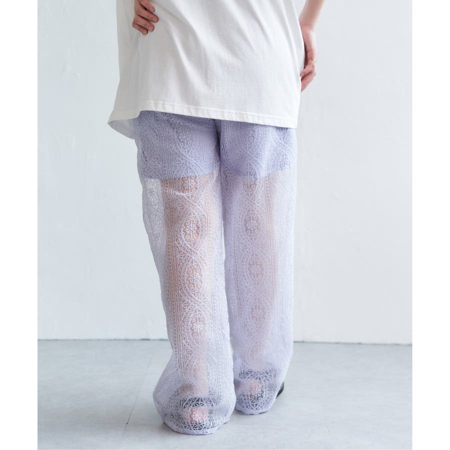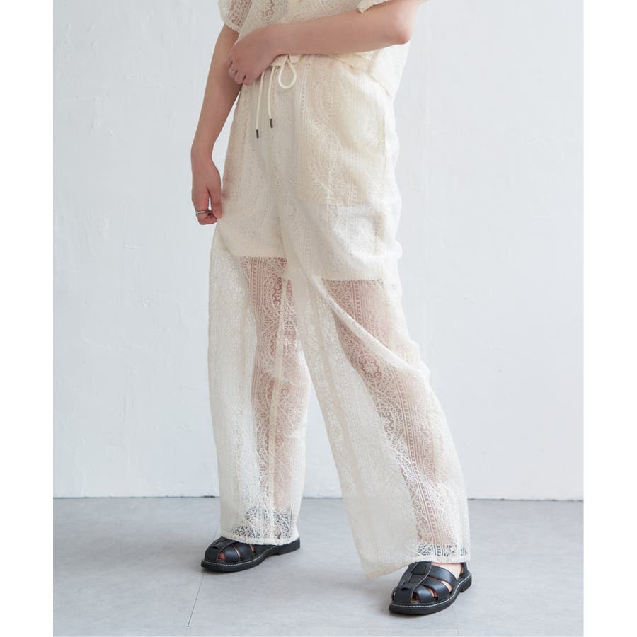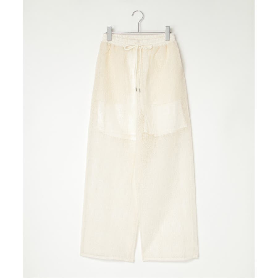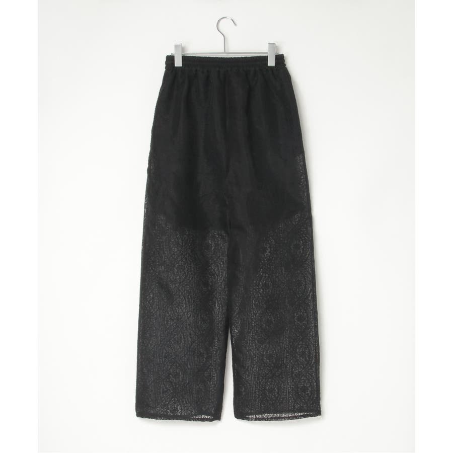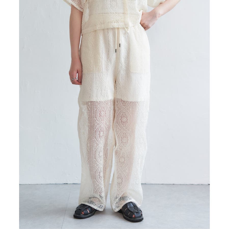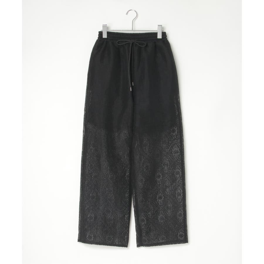 繊細な総レースが目を引く、ワイドシルエットのイージーパンツ。