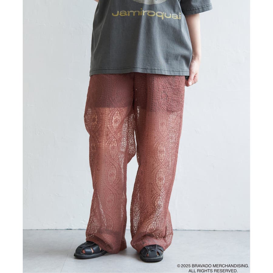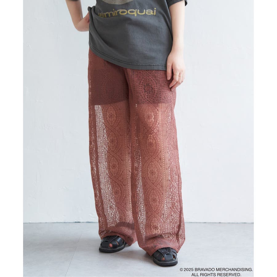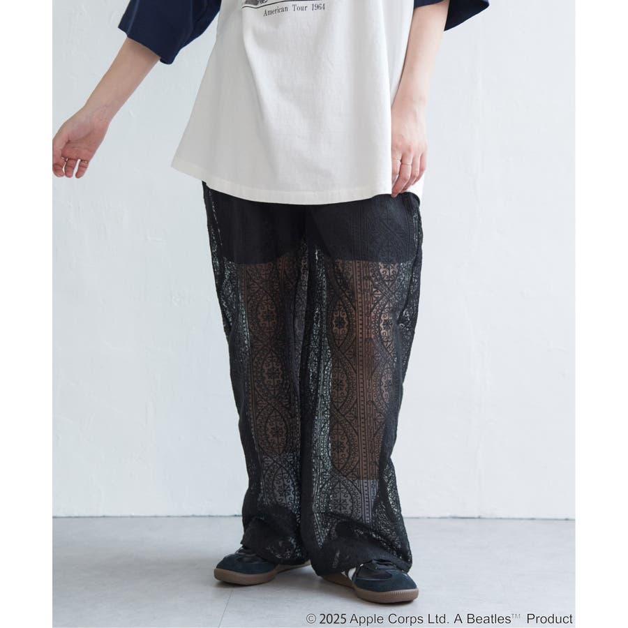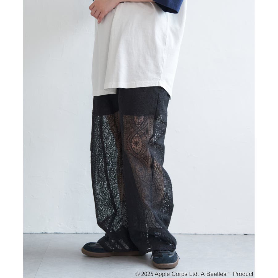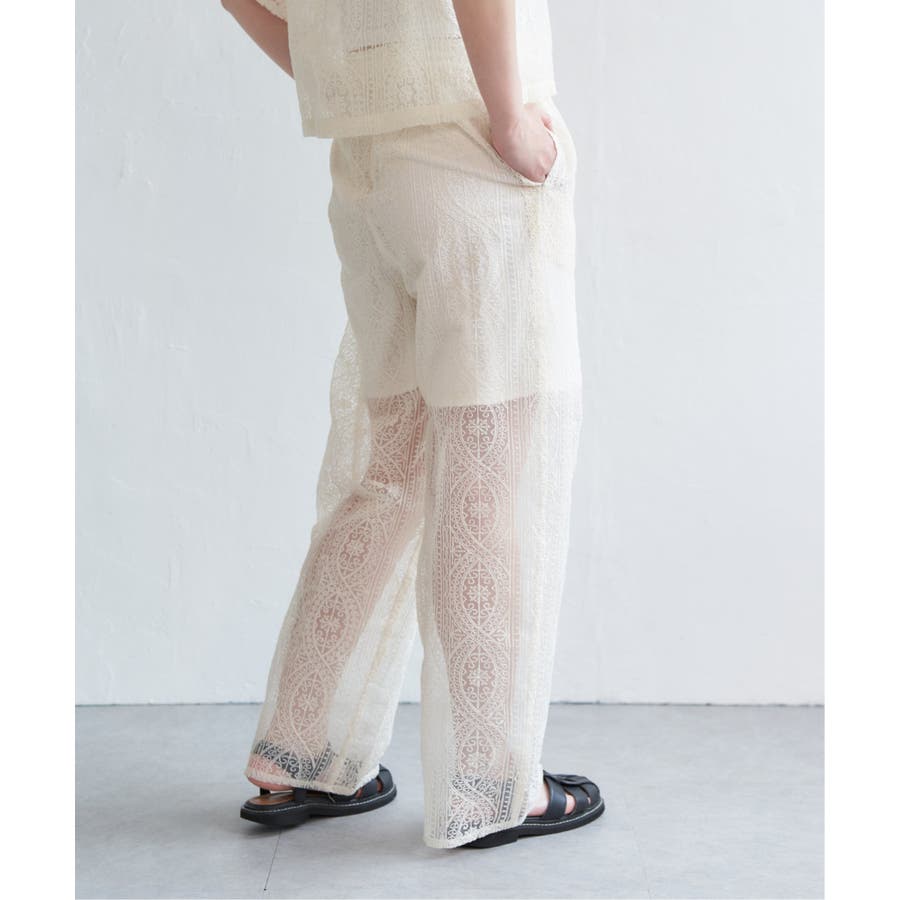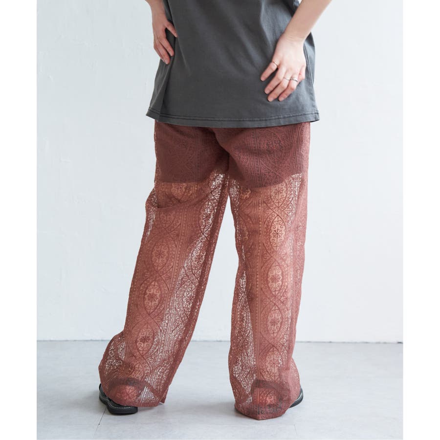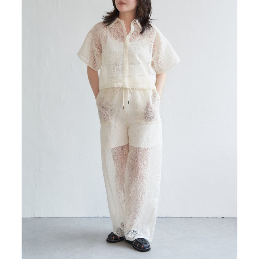 繊細な総レースが目を引く、ワイドシルエットのイージーパンツ。