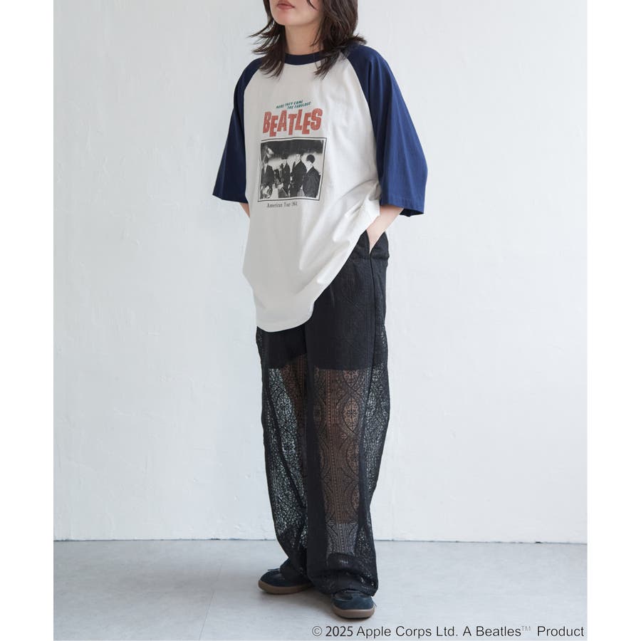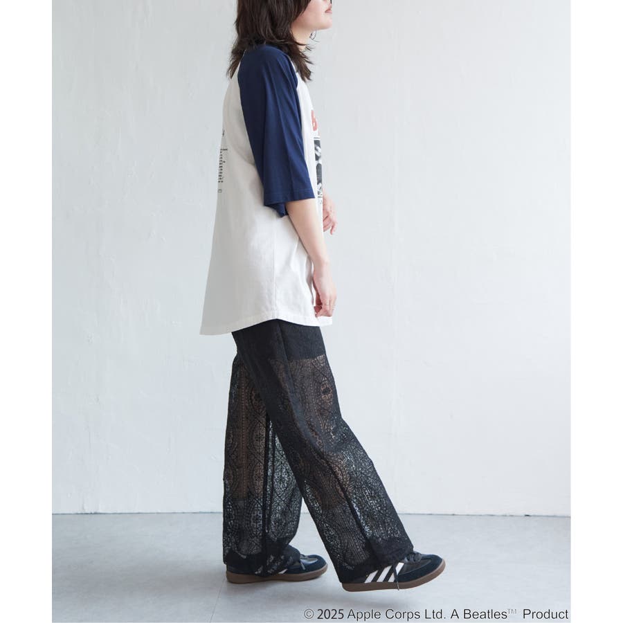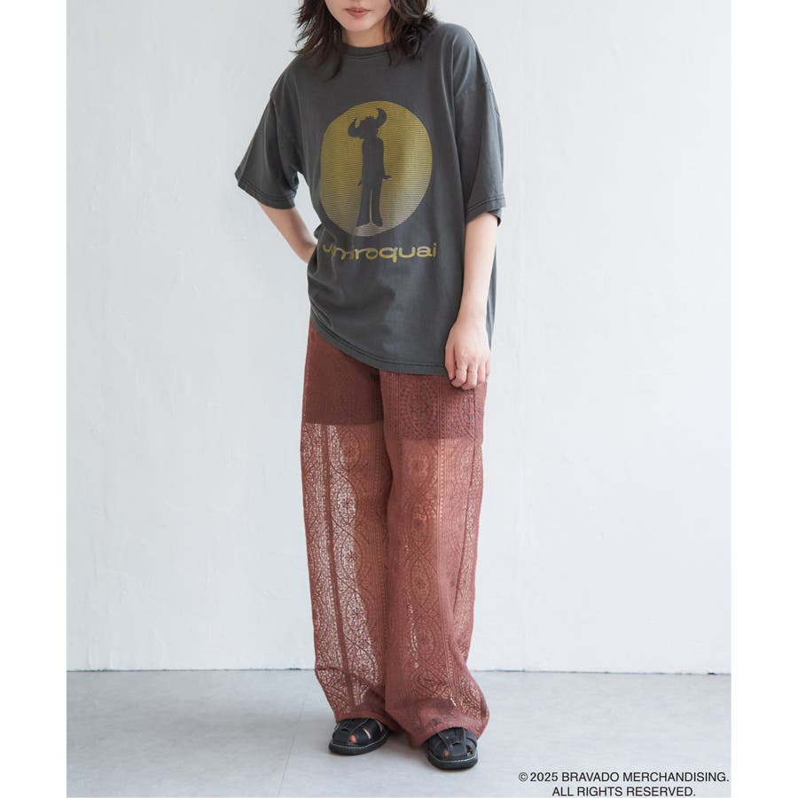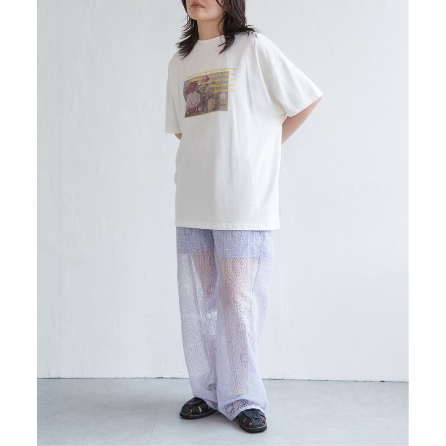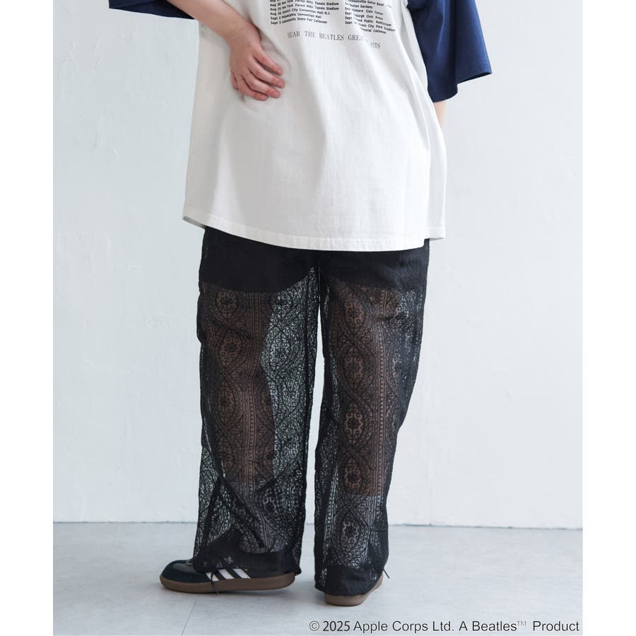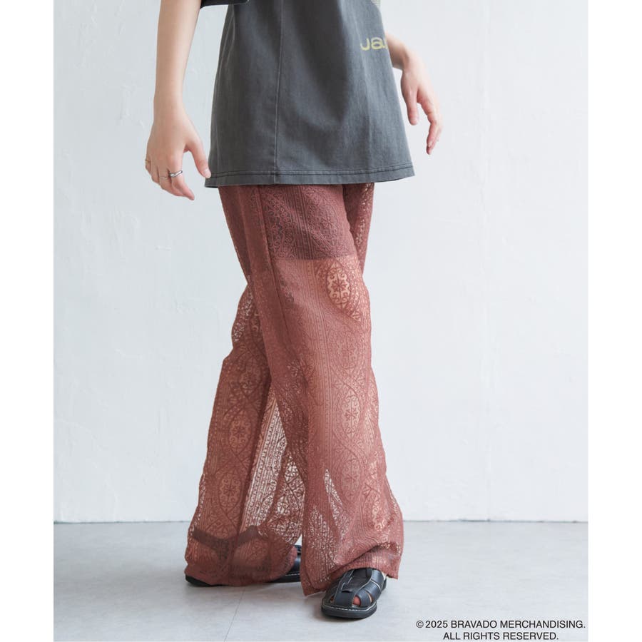 繊細な総レースが目を引く、ワイドシルエットのイージーパンツ。