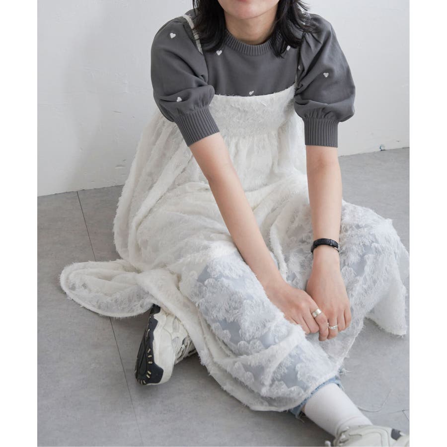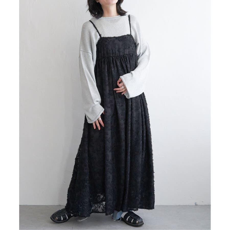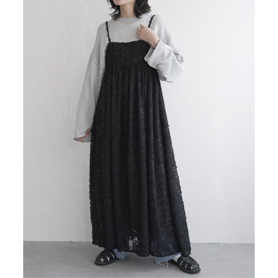 毛足感のあるフリンジが華やかなキャミワンピース。