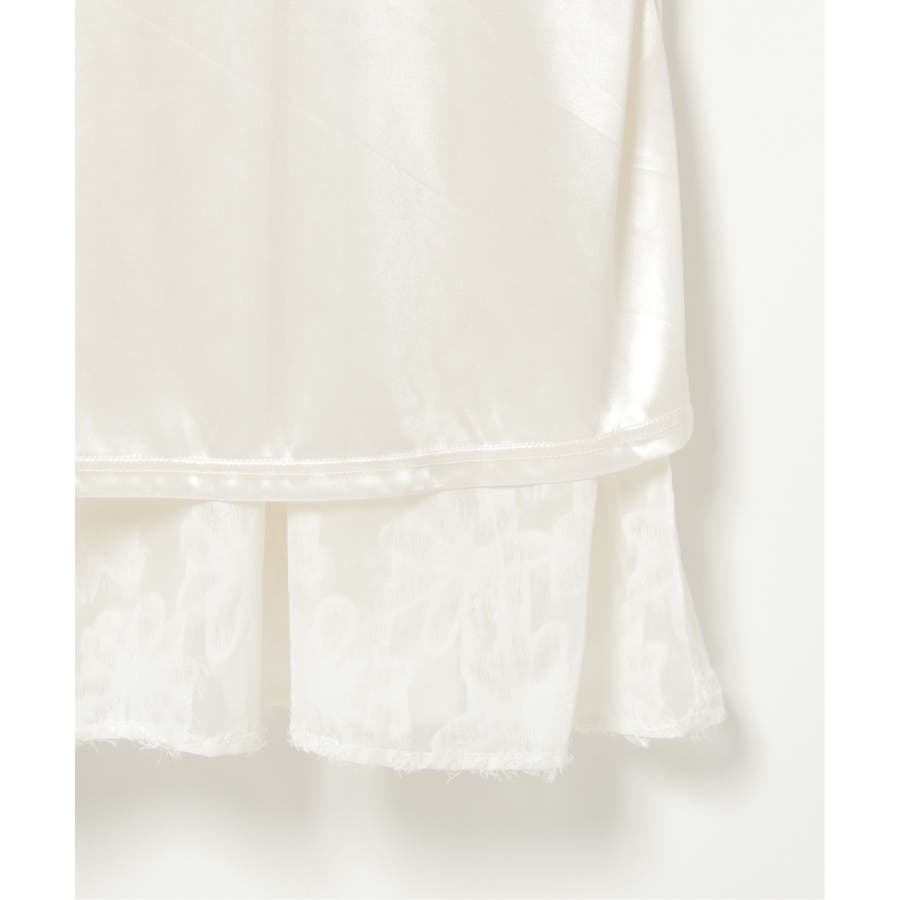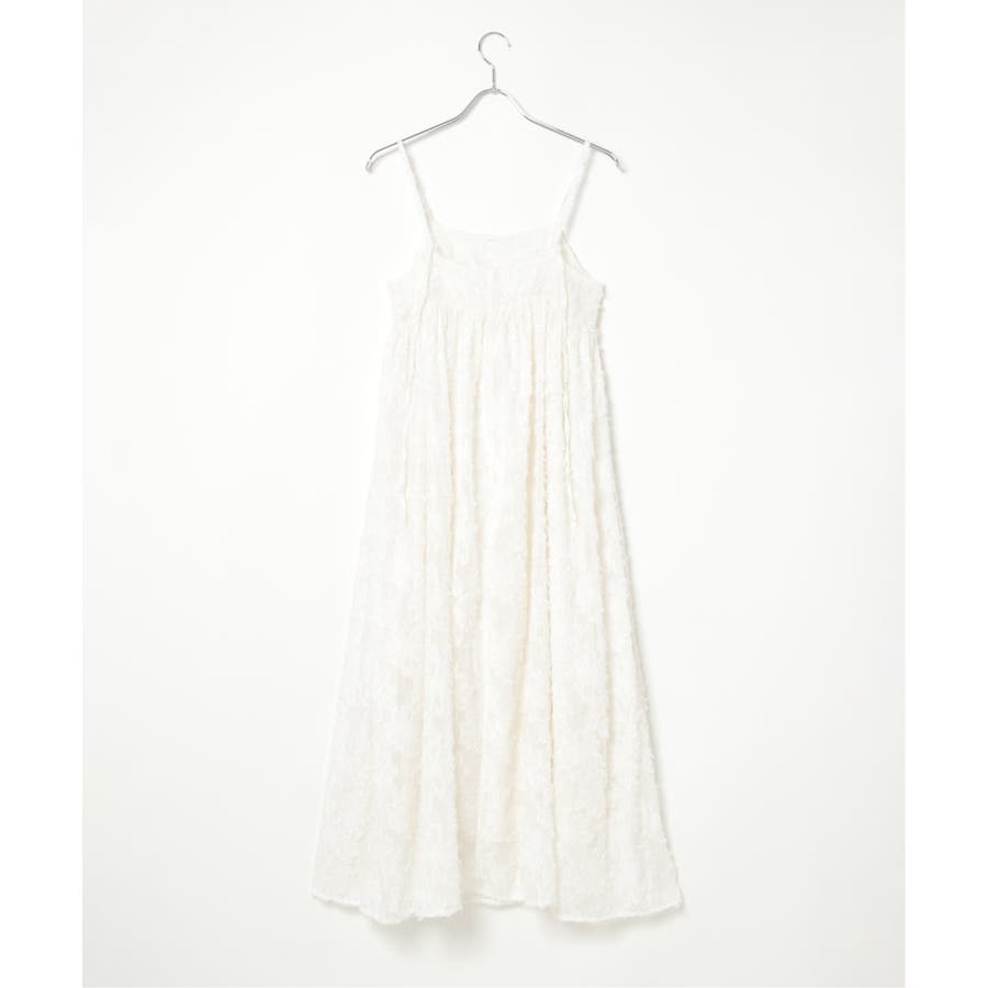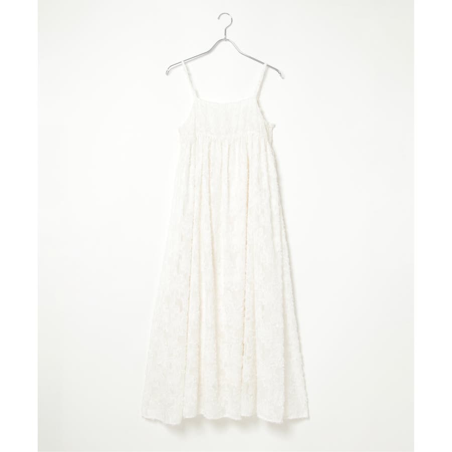 華奢なストラップと、胸下に切り替えを入れたフレアシルエットが女性らしいデザイン。