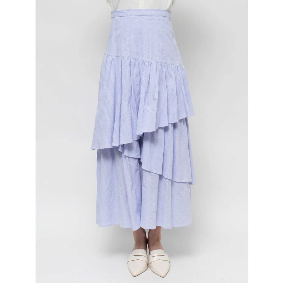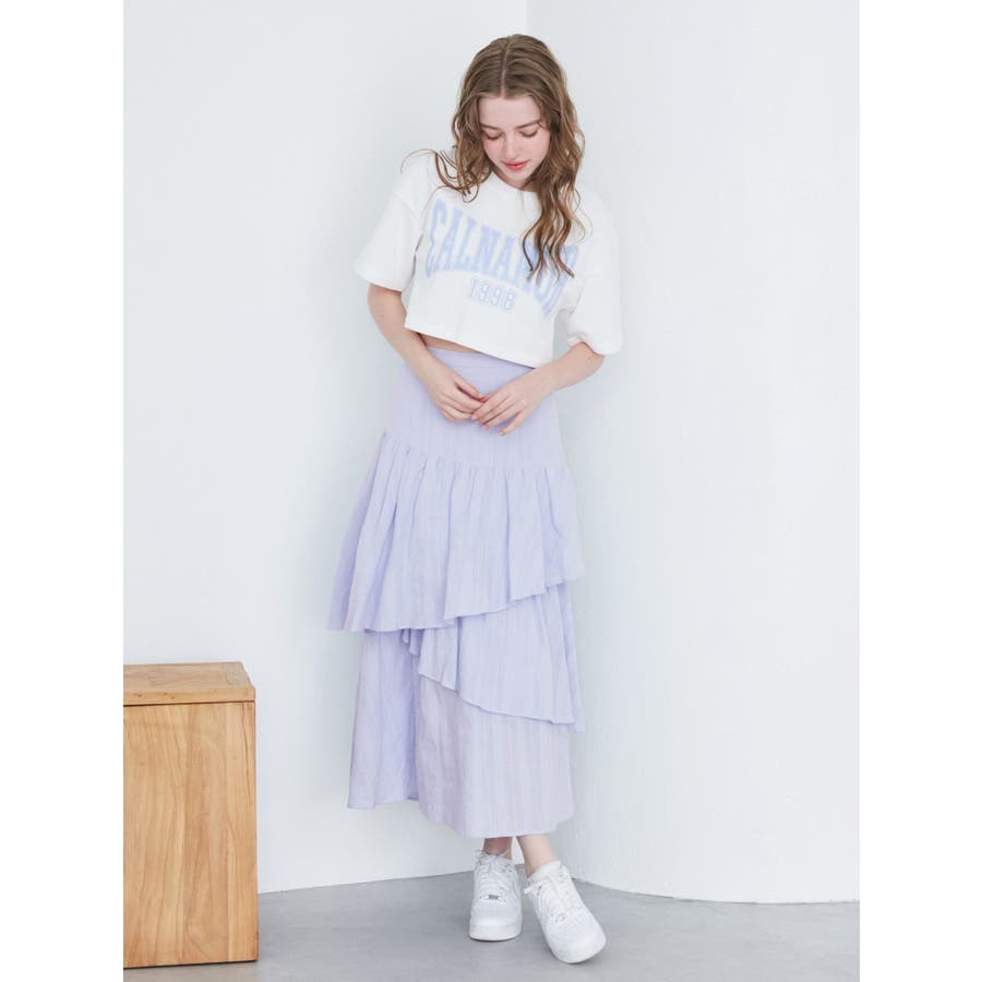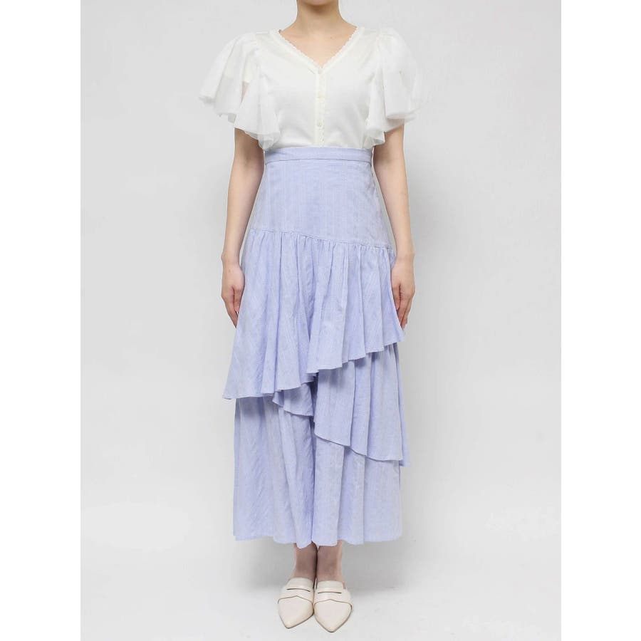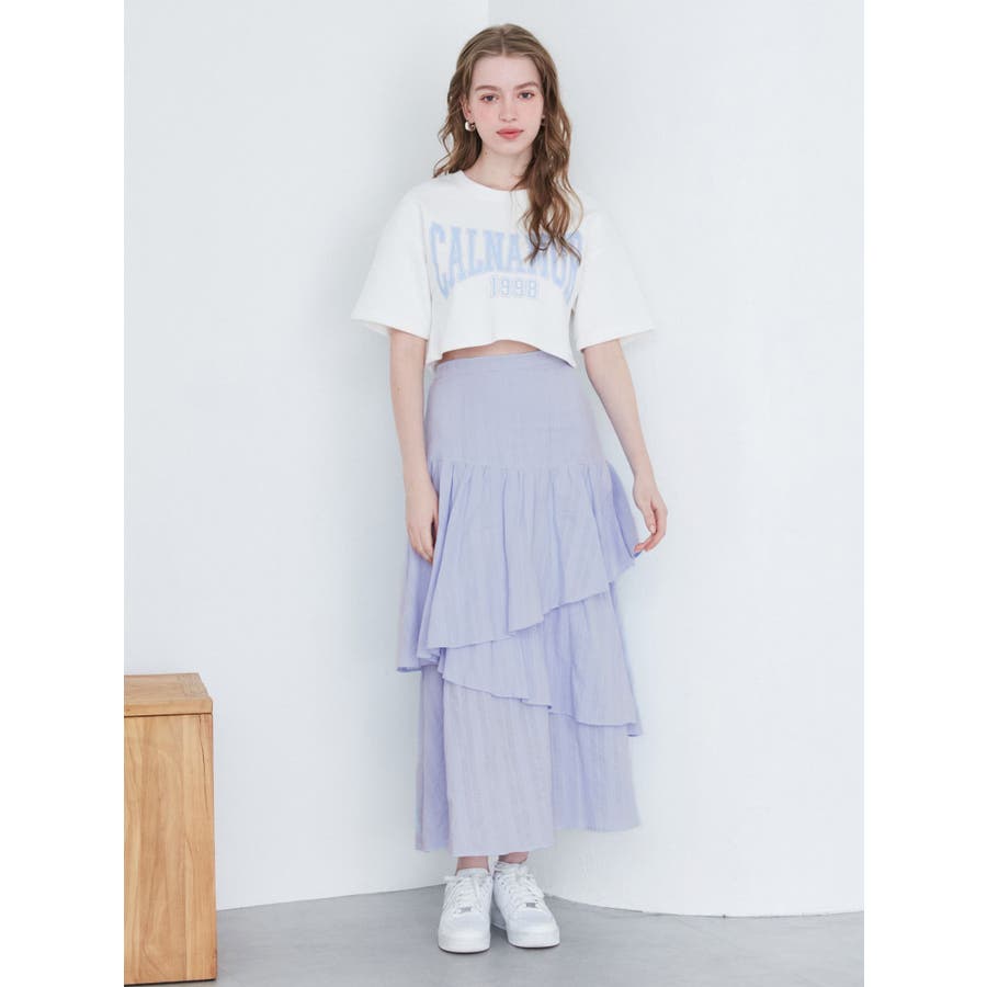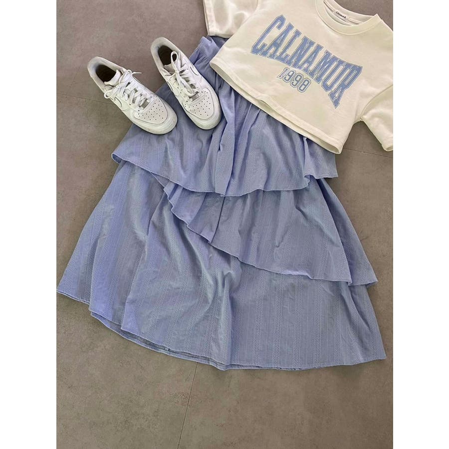 【アイスブルー】LACE LIKE TIERED SKIRT/レースライクティアードスカート