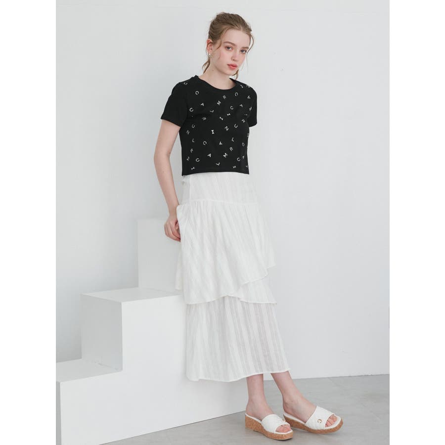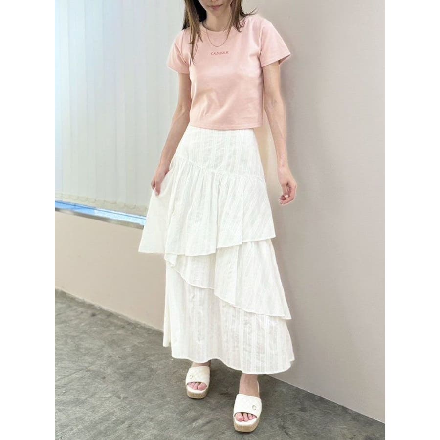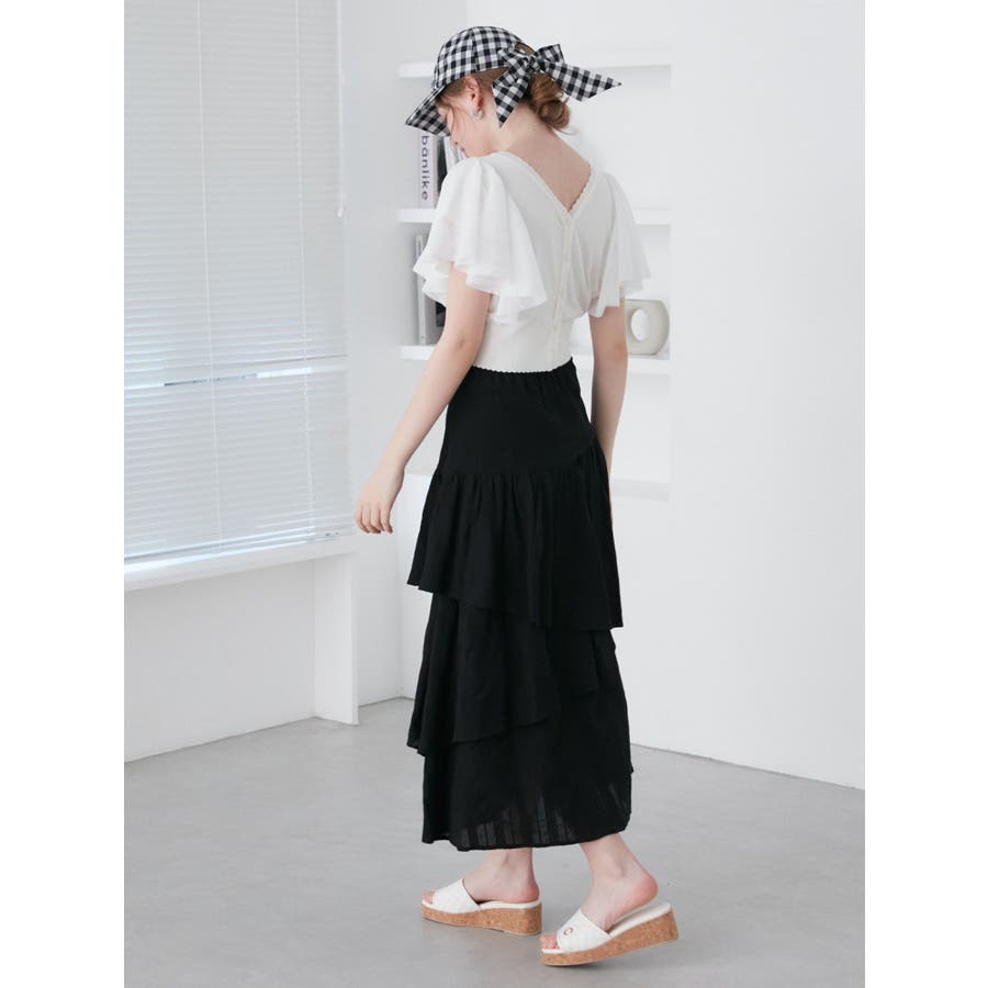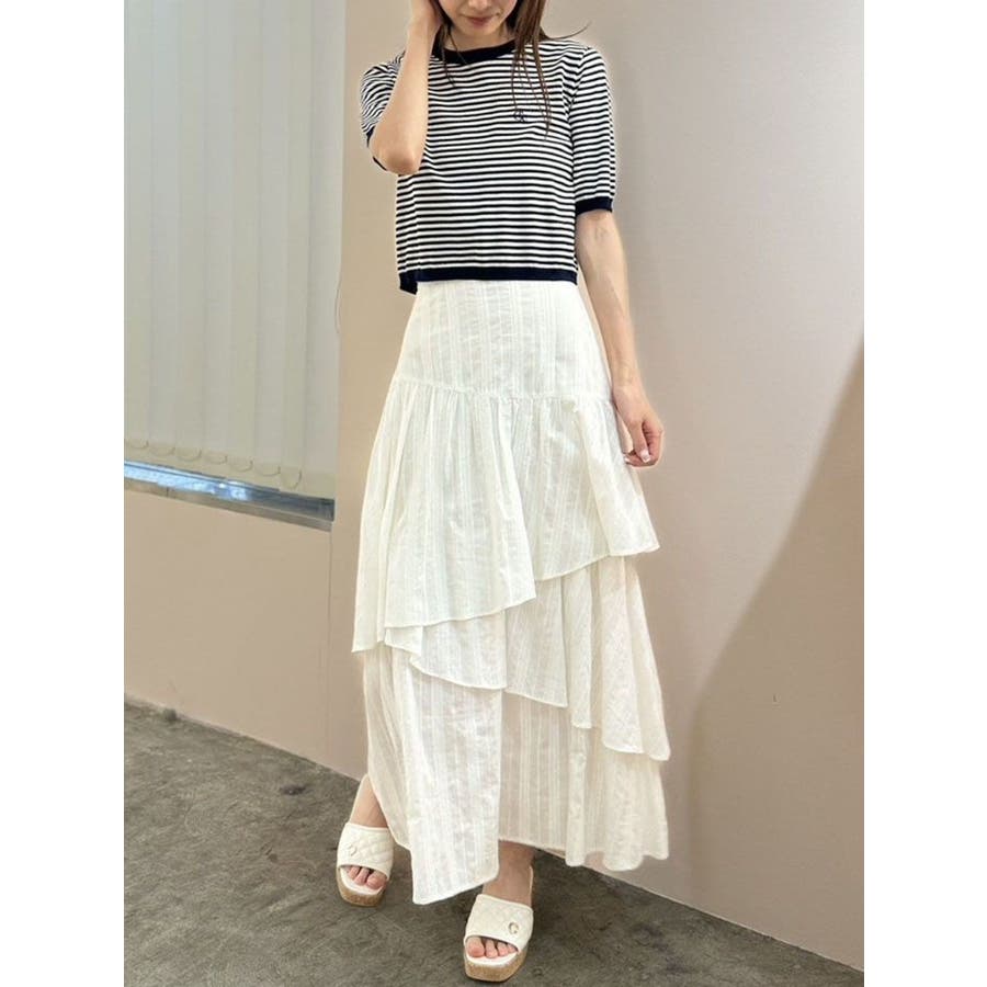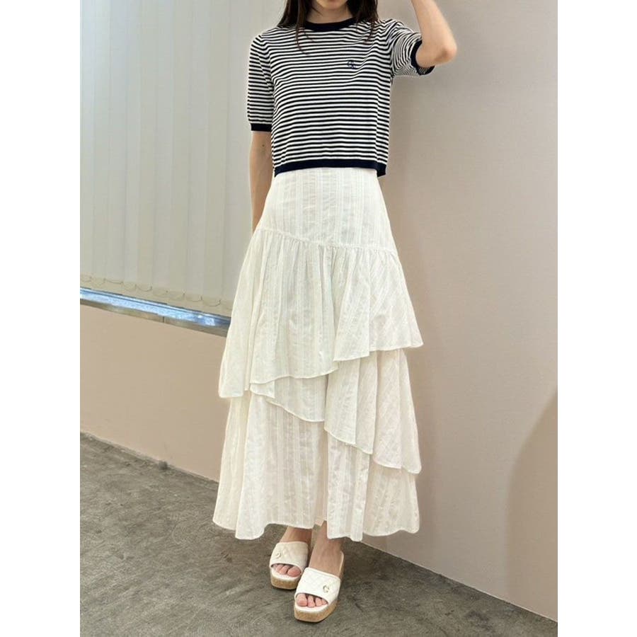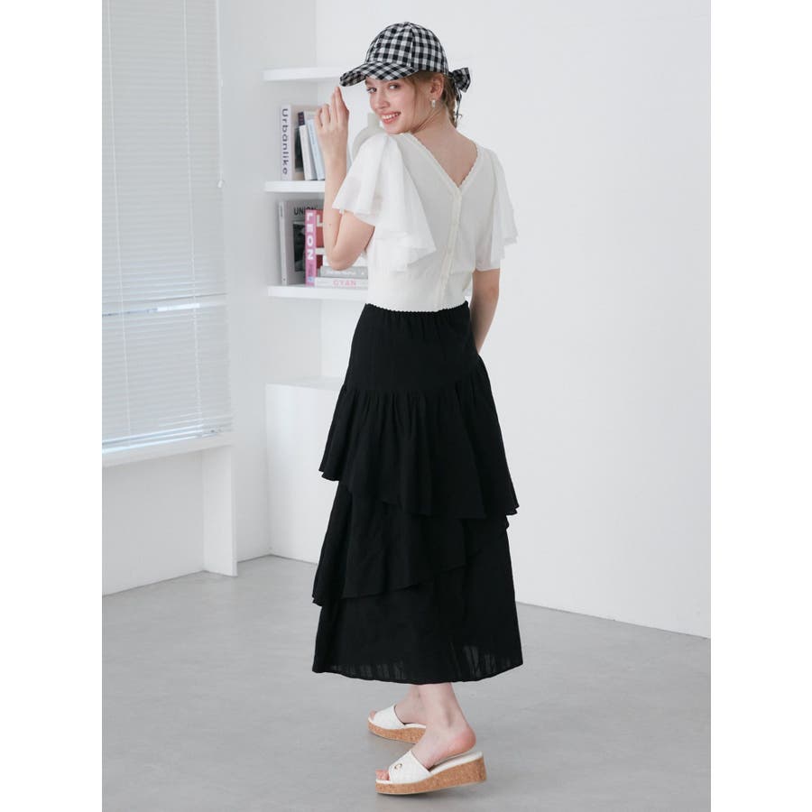 【アイスブルー】LACE LIKE TIERED SKIRT/レースライクティアードスカート
