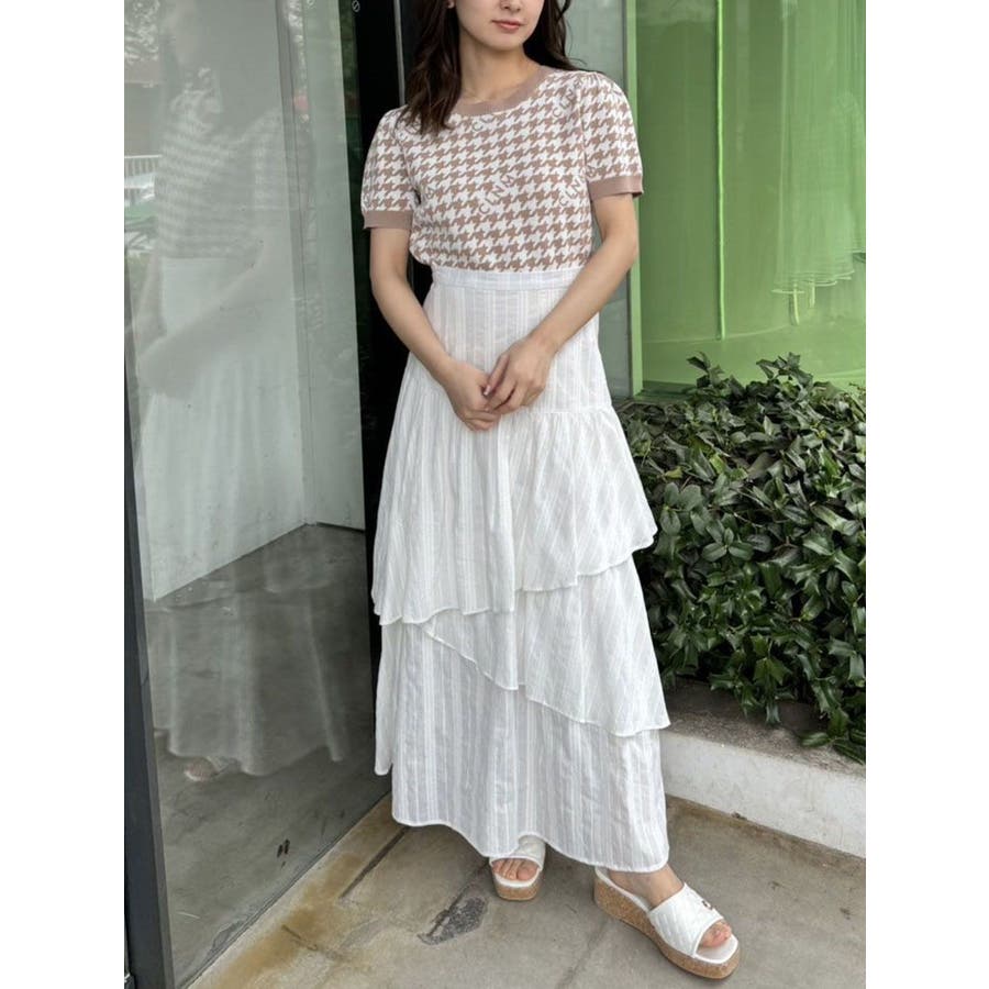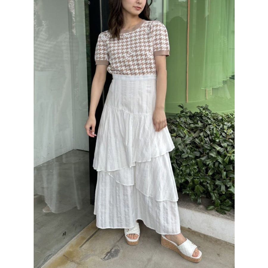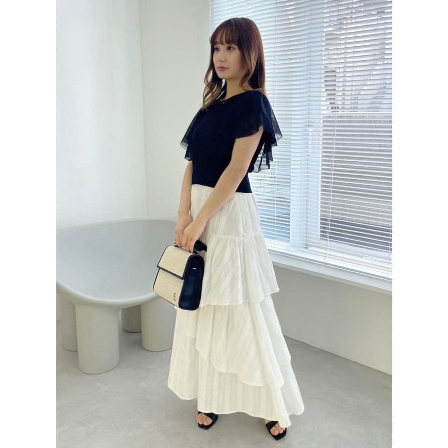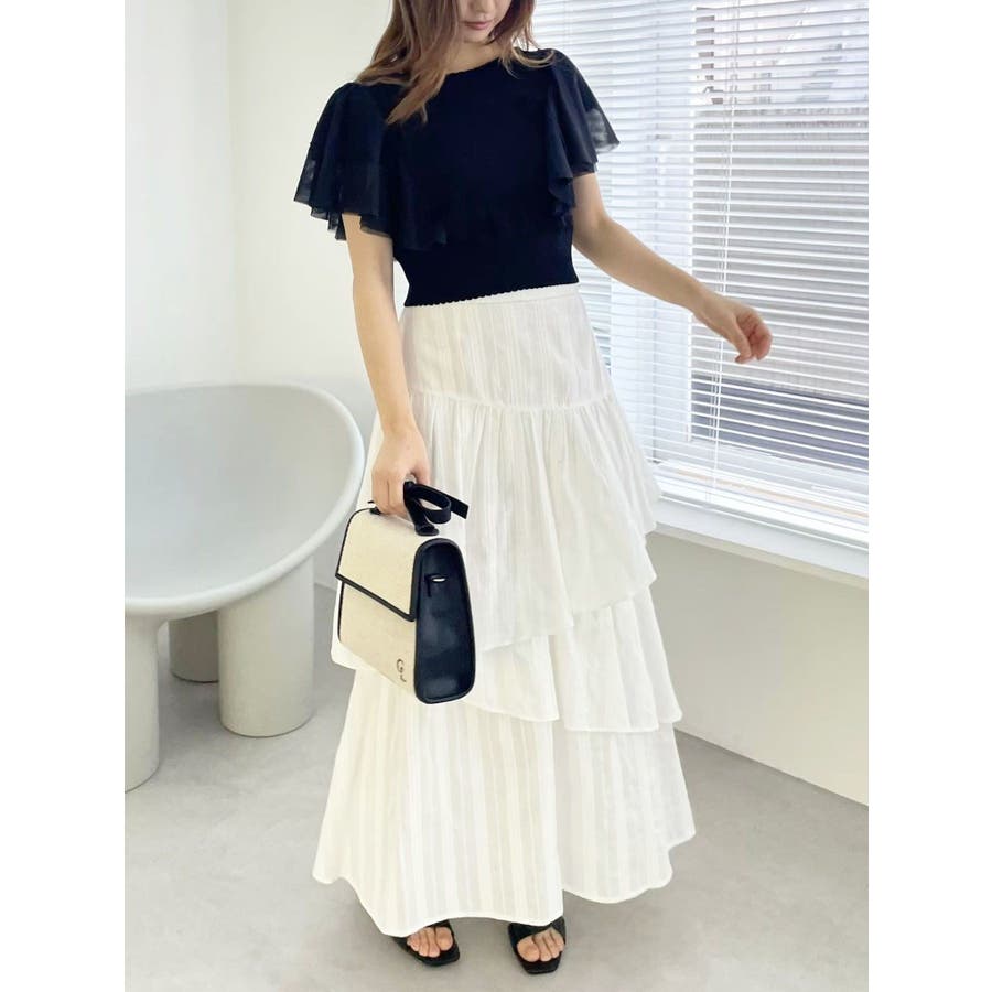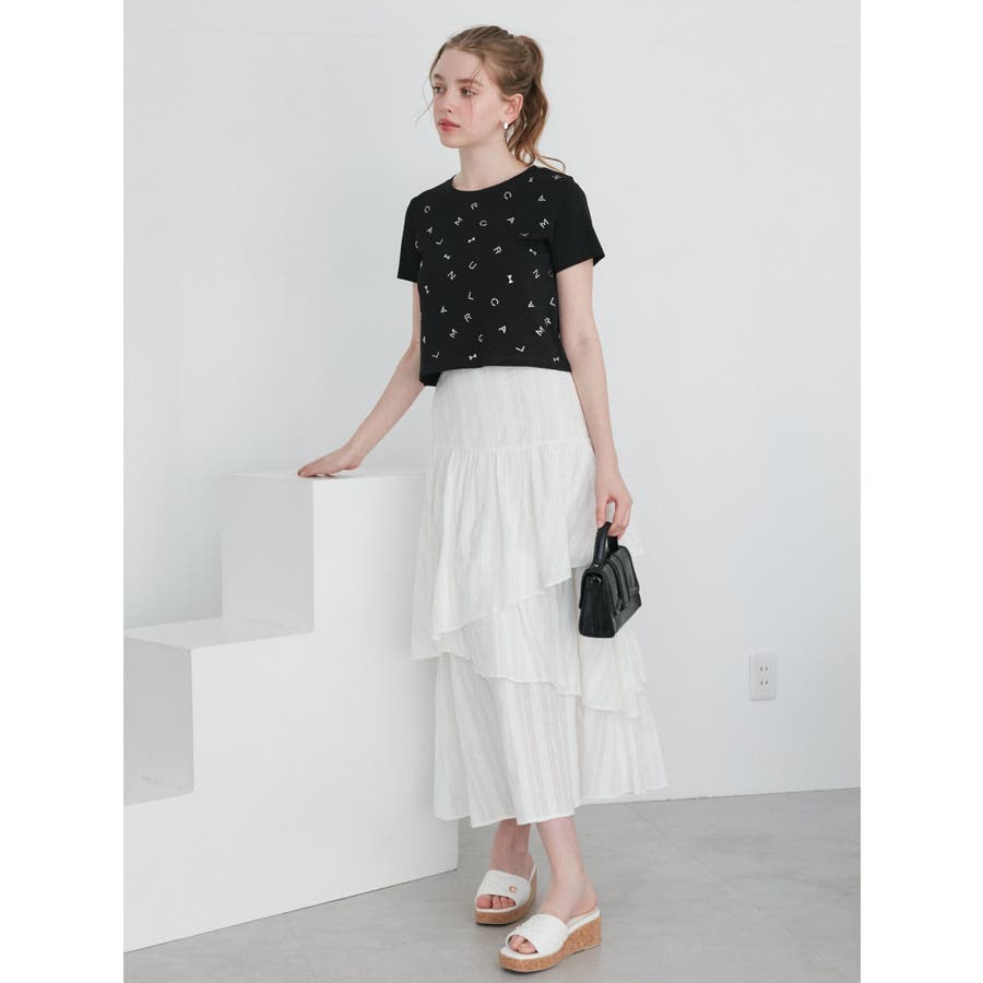 【アイスブルー】LACE LIKE TIERED SKIRT/レースライクティアードスカート