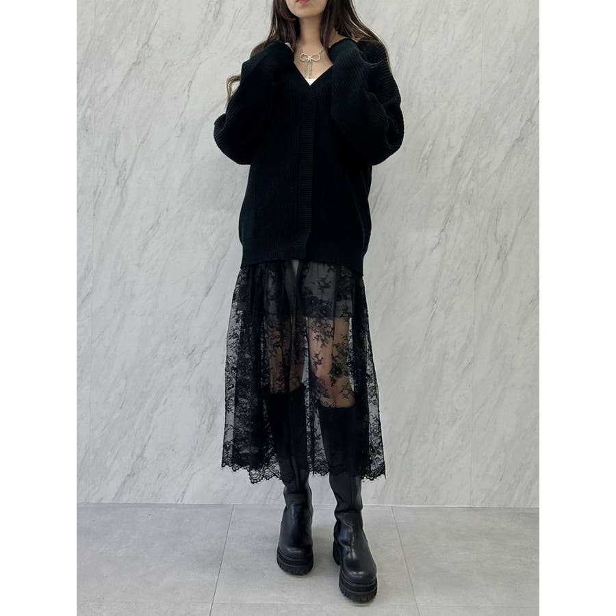LACE×KNIT LONG CD/レース×ニットロングカーディガン