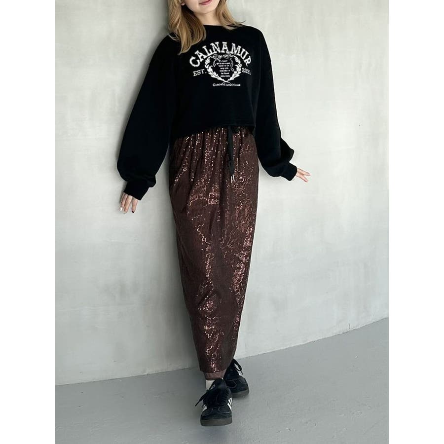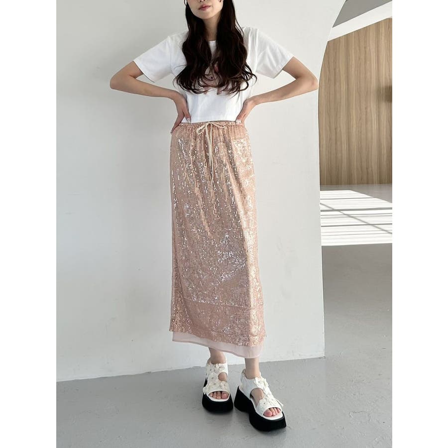 SPANGLE DRAWSTRINGS SK/スパンコールドロストスカート