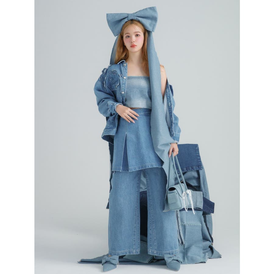 DENIM TUCK MINI SK/デニムタックミニスカート