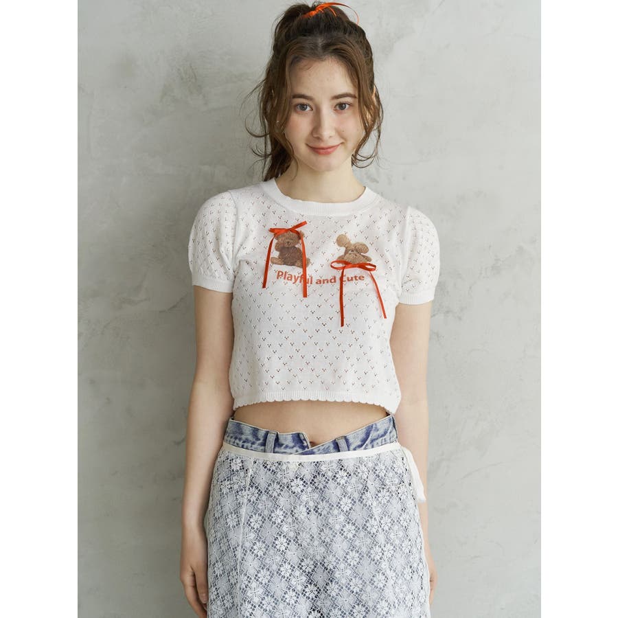 BEAR PRINT RIBBON KNIT /ベアプリントリボンニット