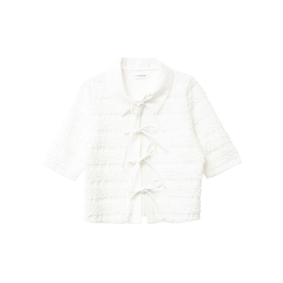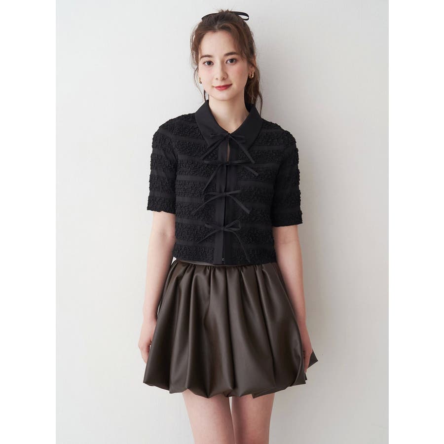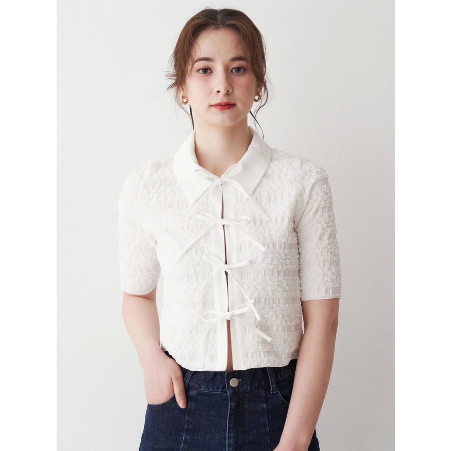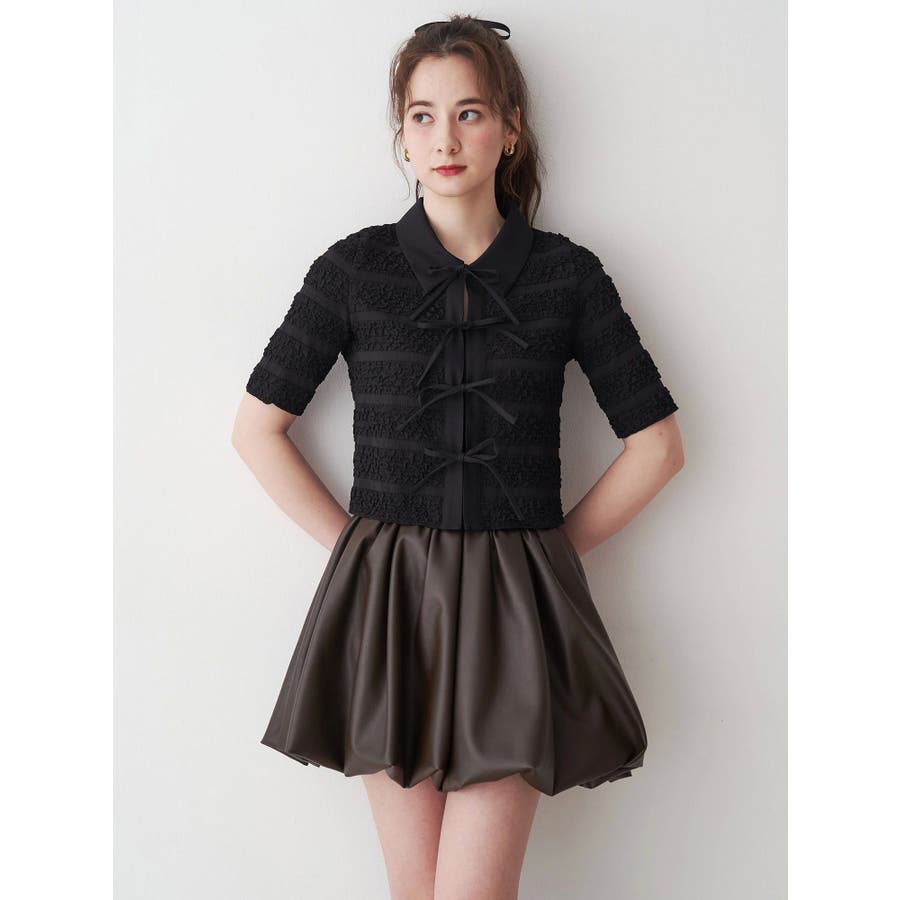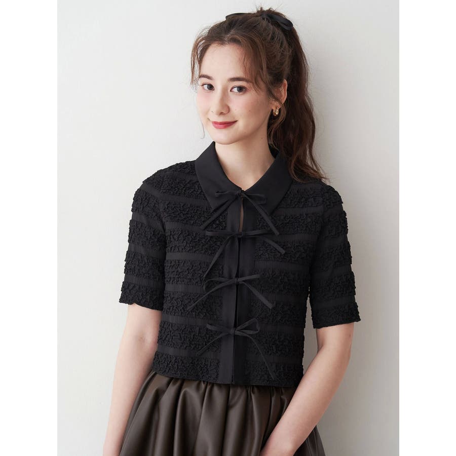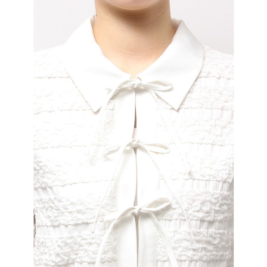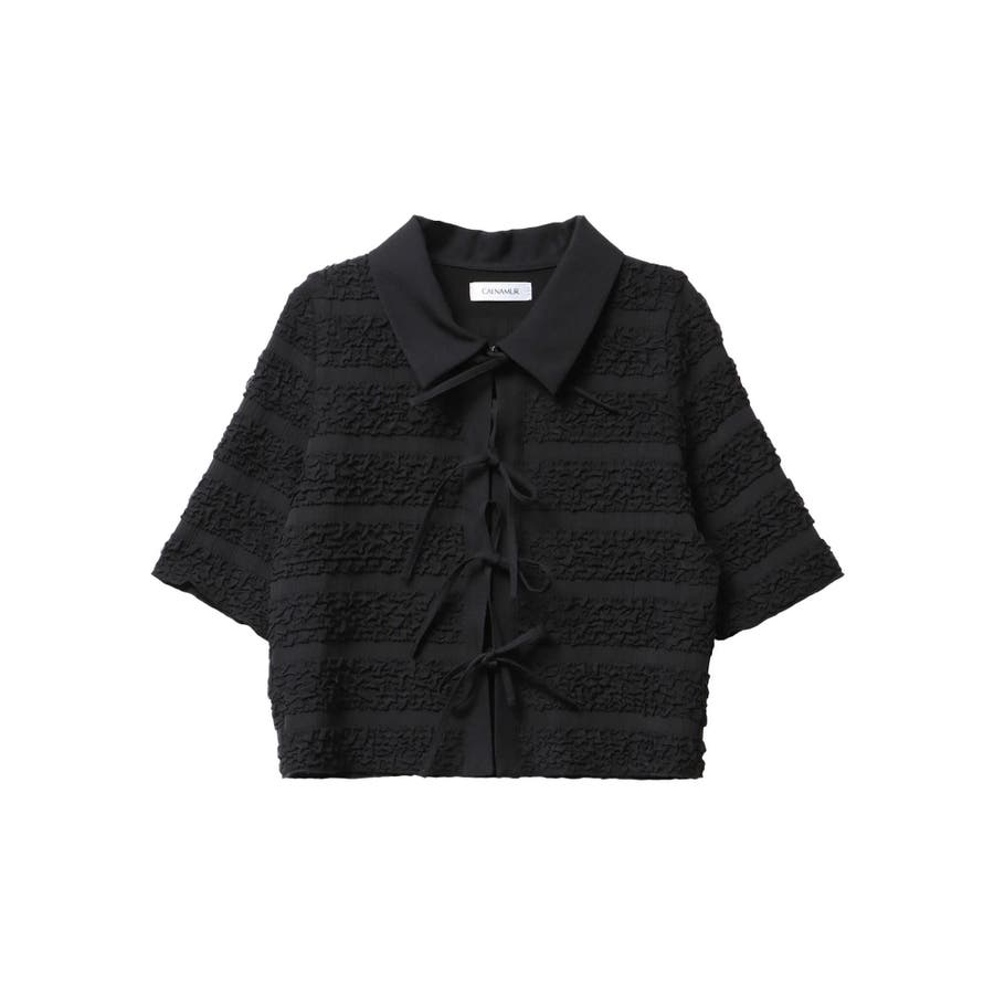 シャツカラーギャザーリボンカットソー
