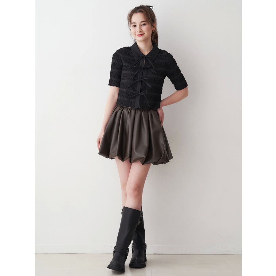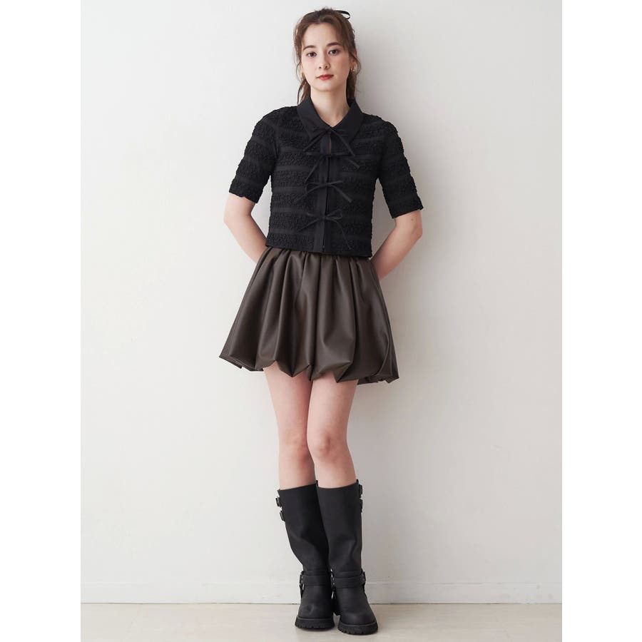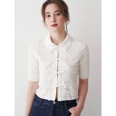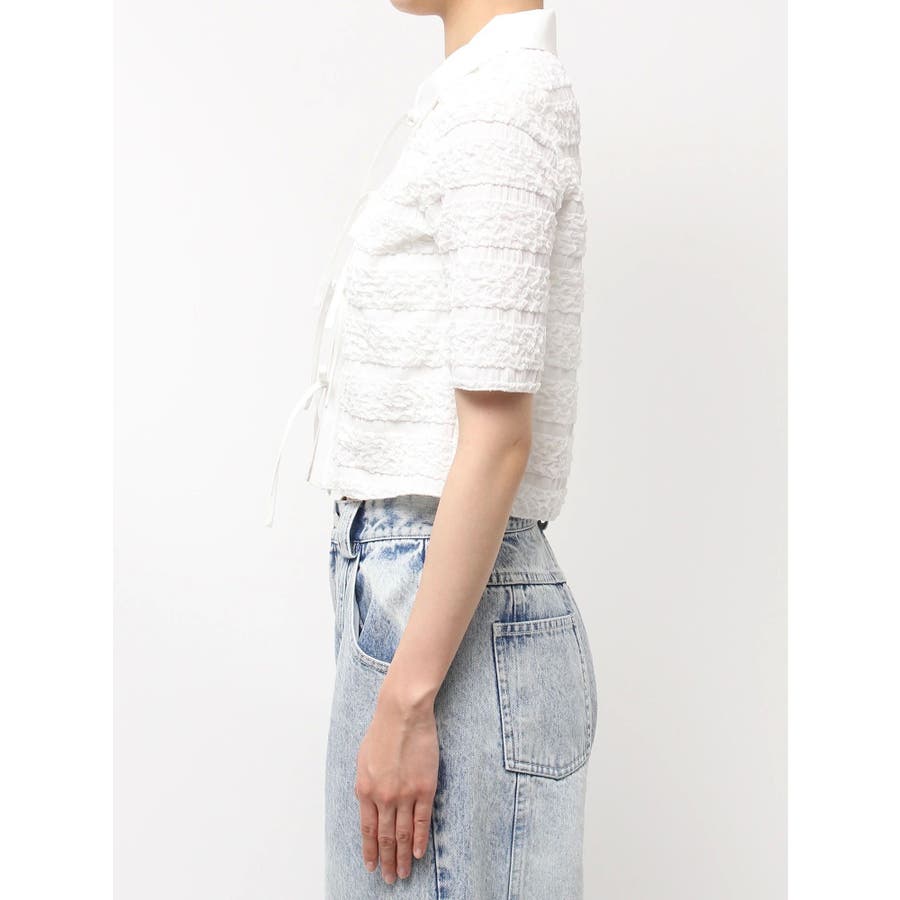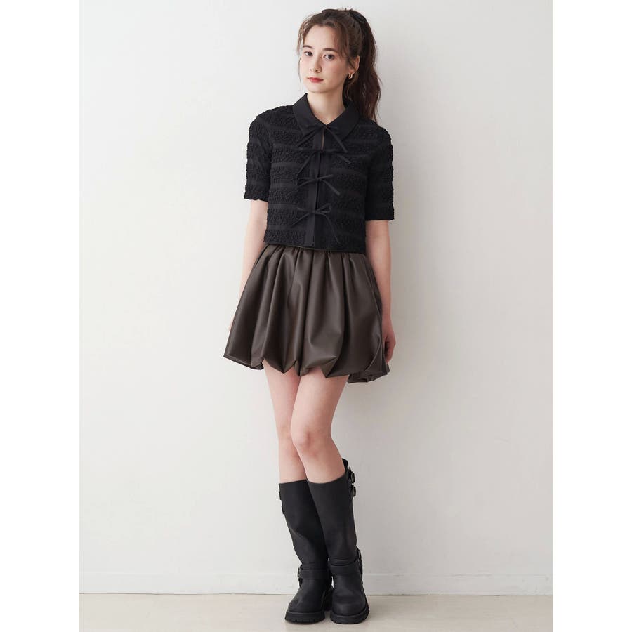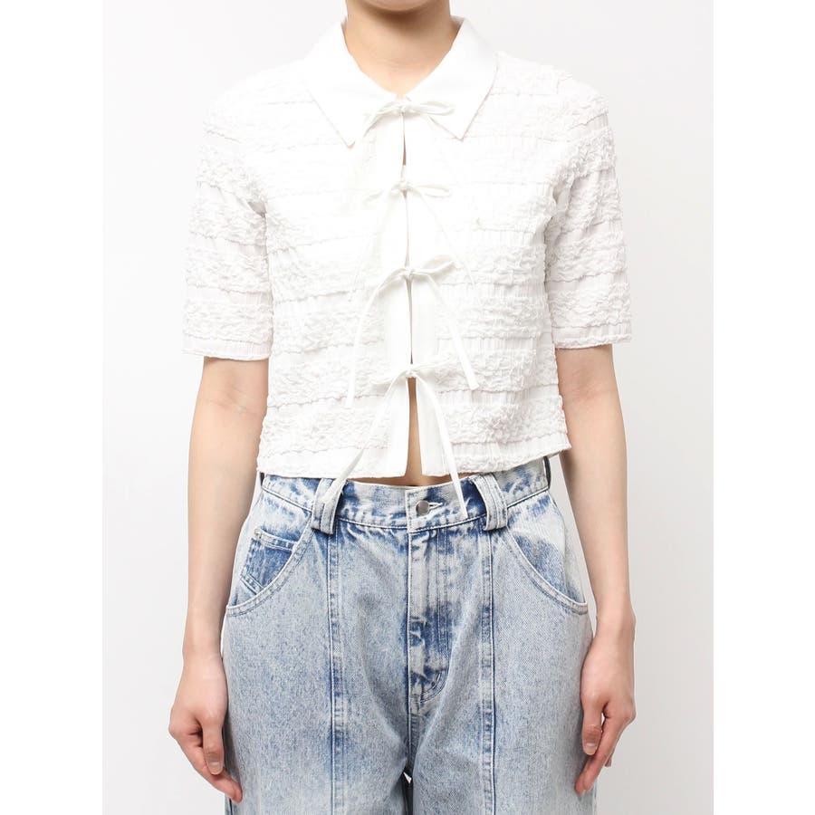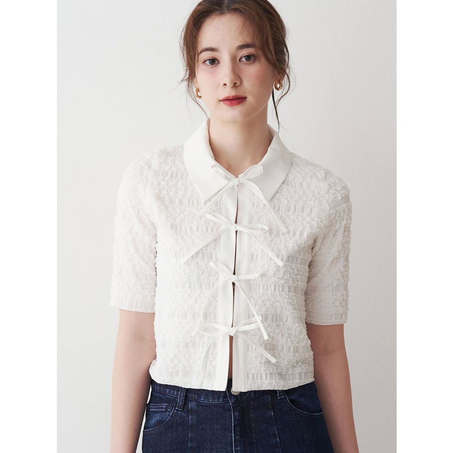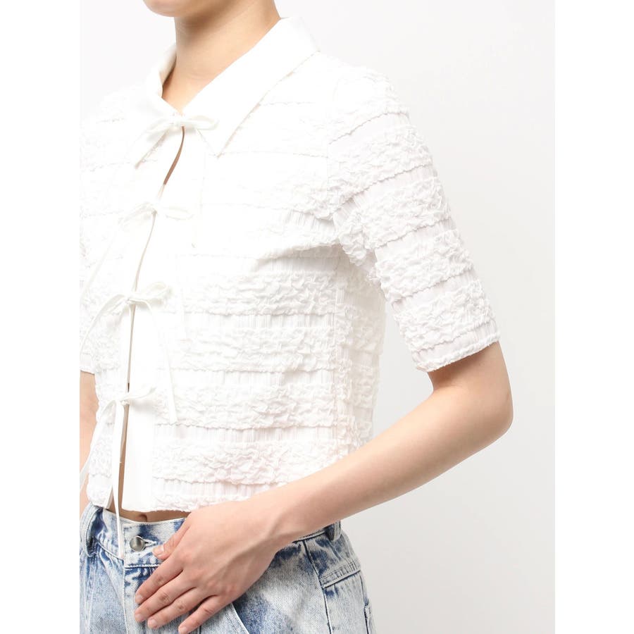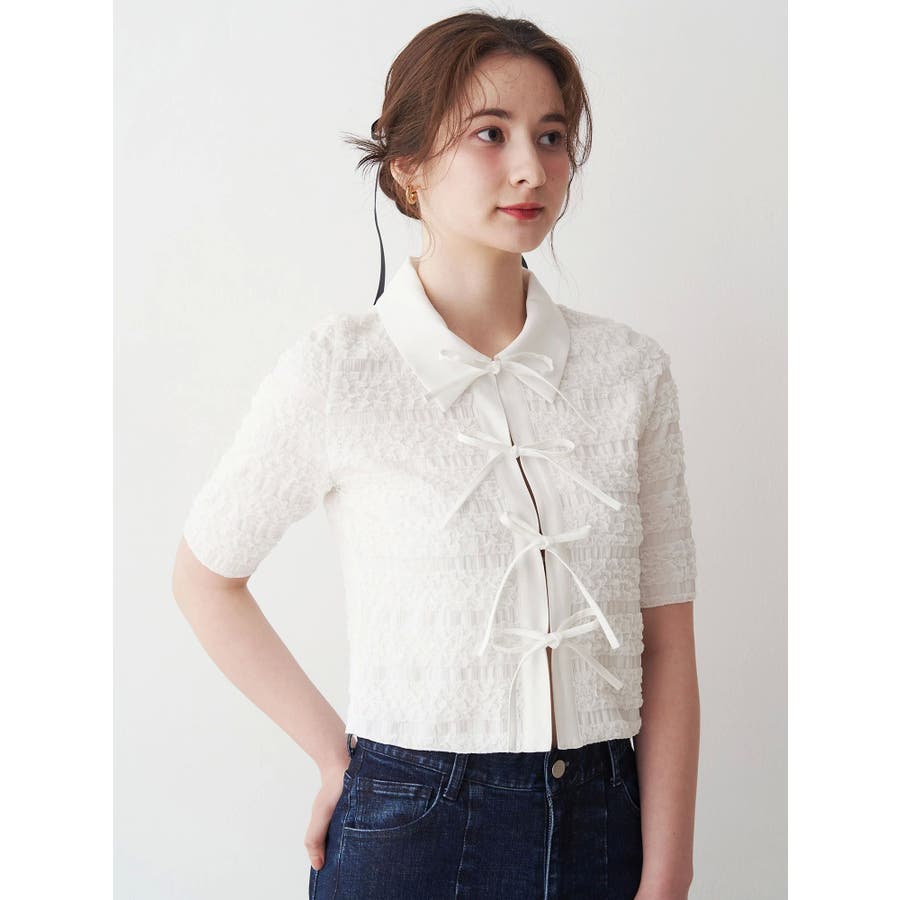 シャツカラーギャザーリボンカットソー