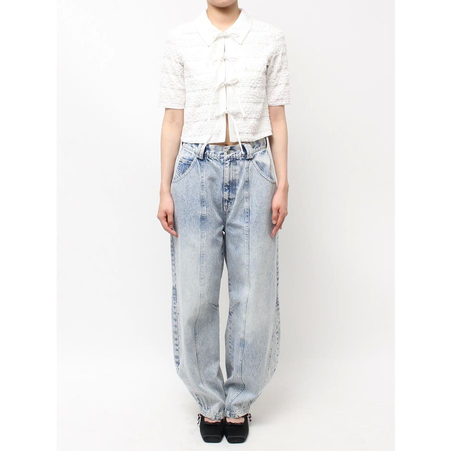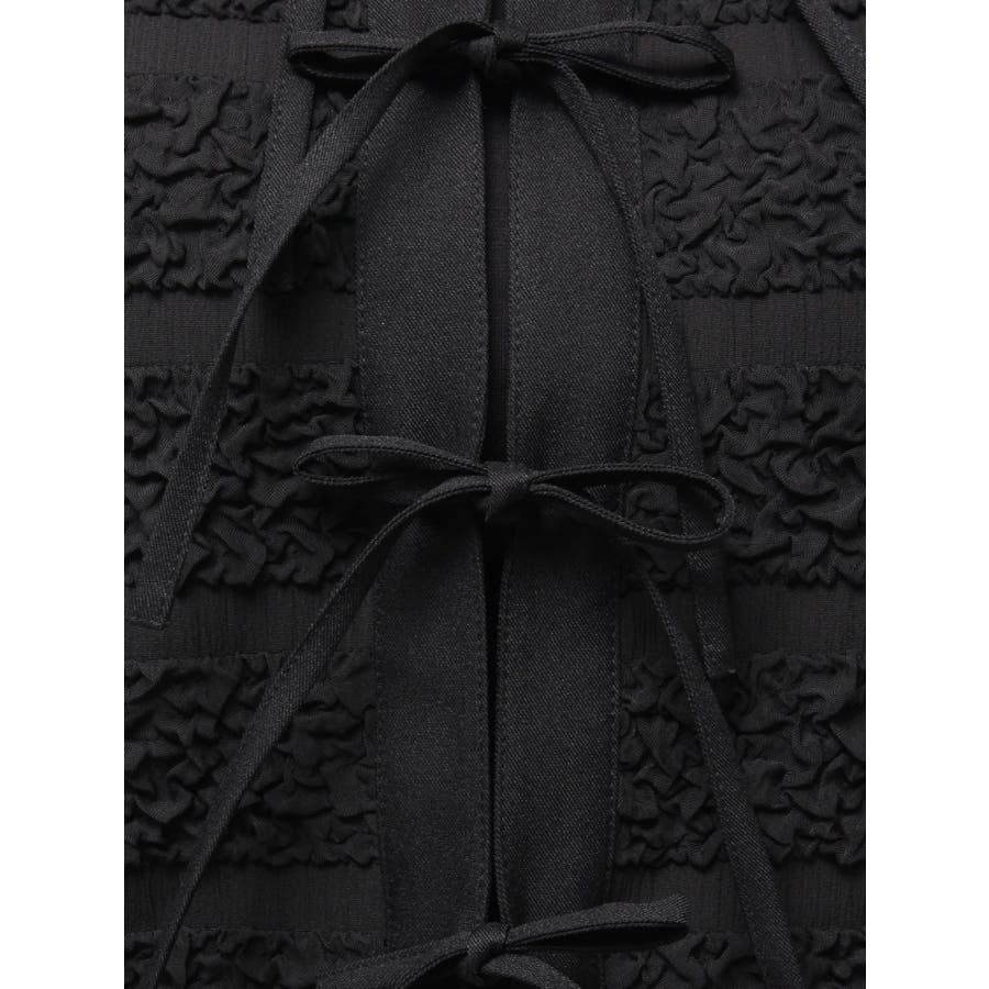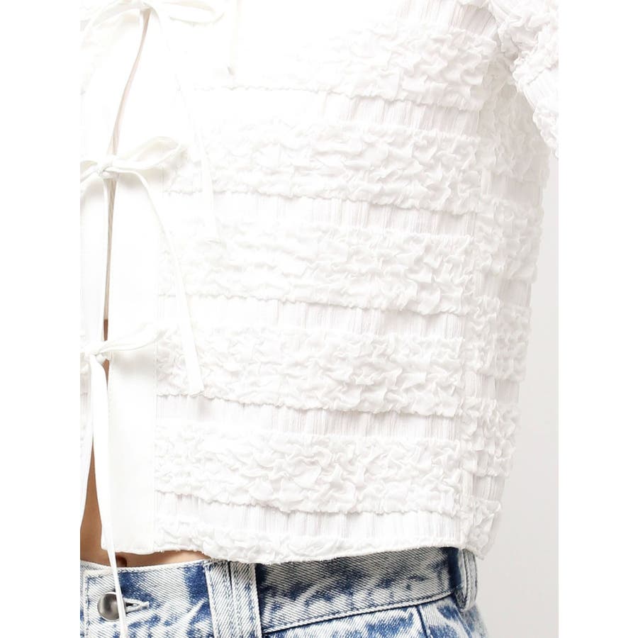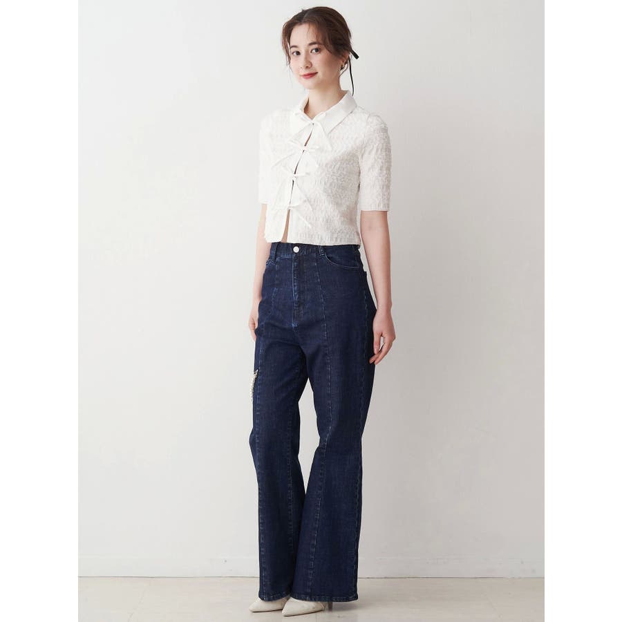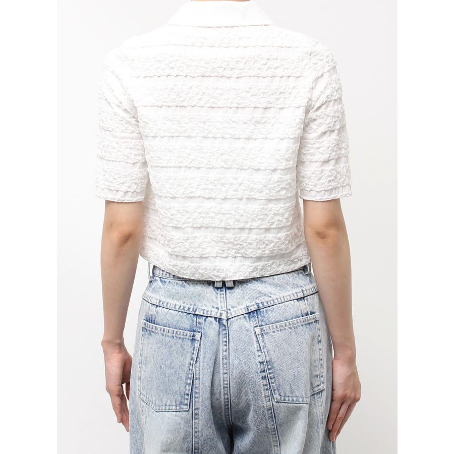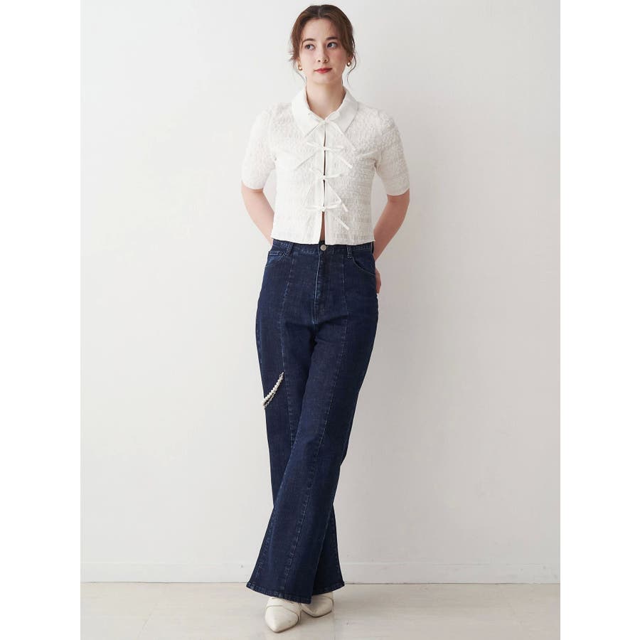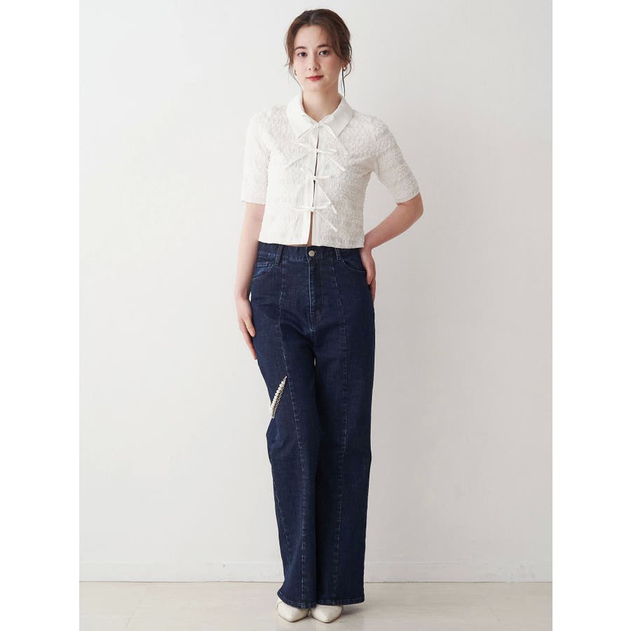 シャツカラーギャザーリボンカットソー