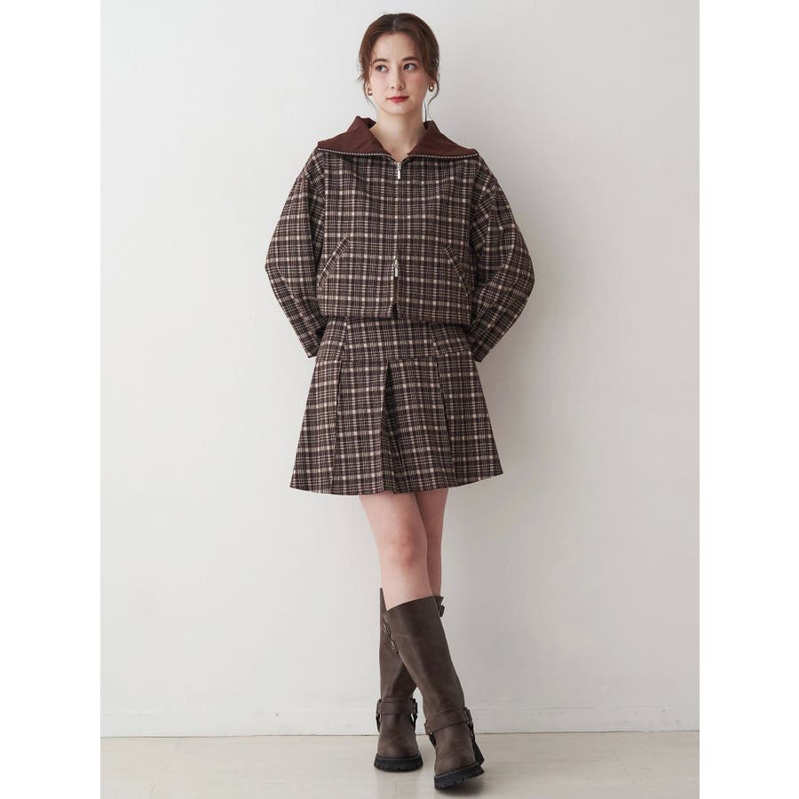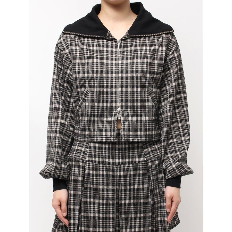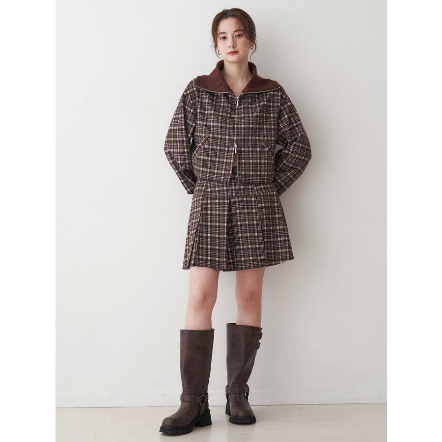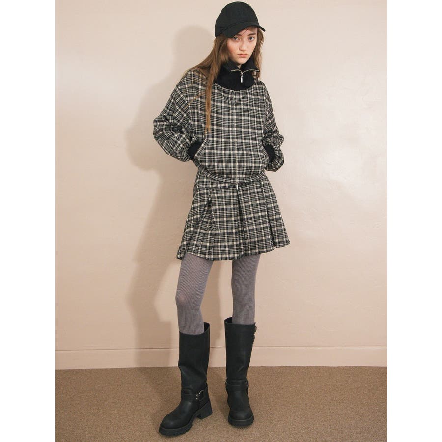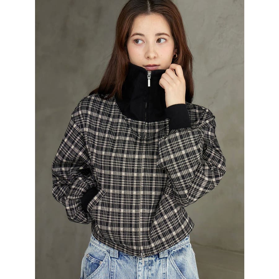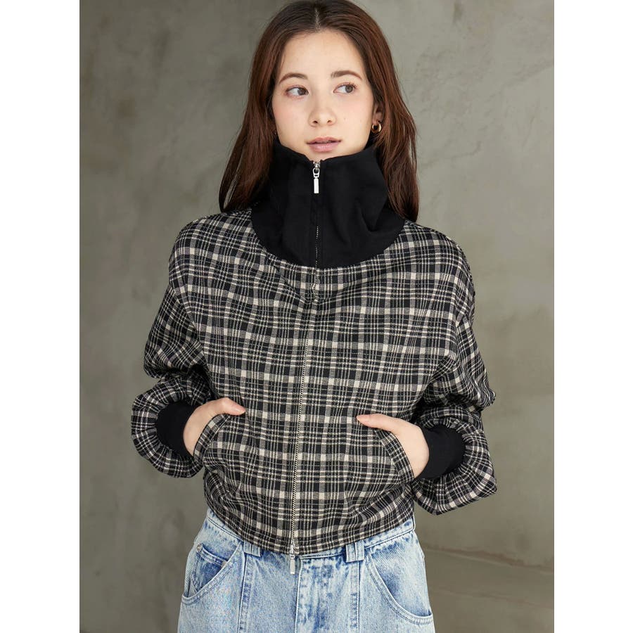 チェックニットソーブルゾン