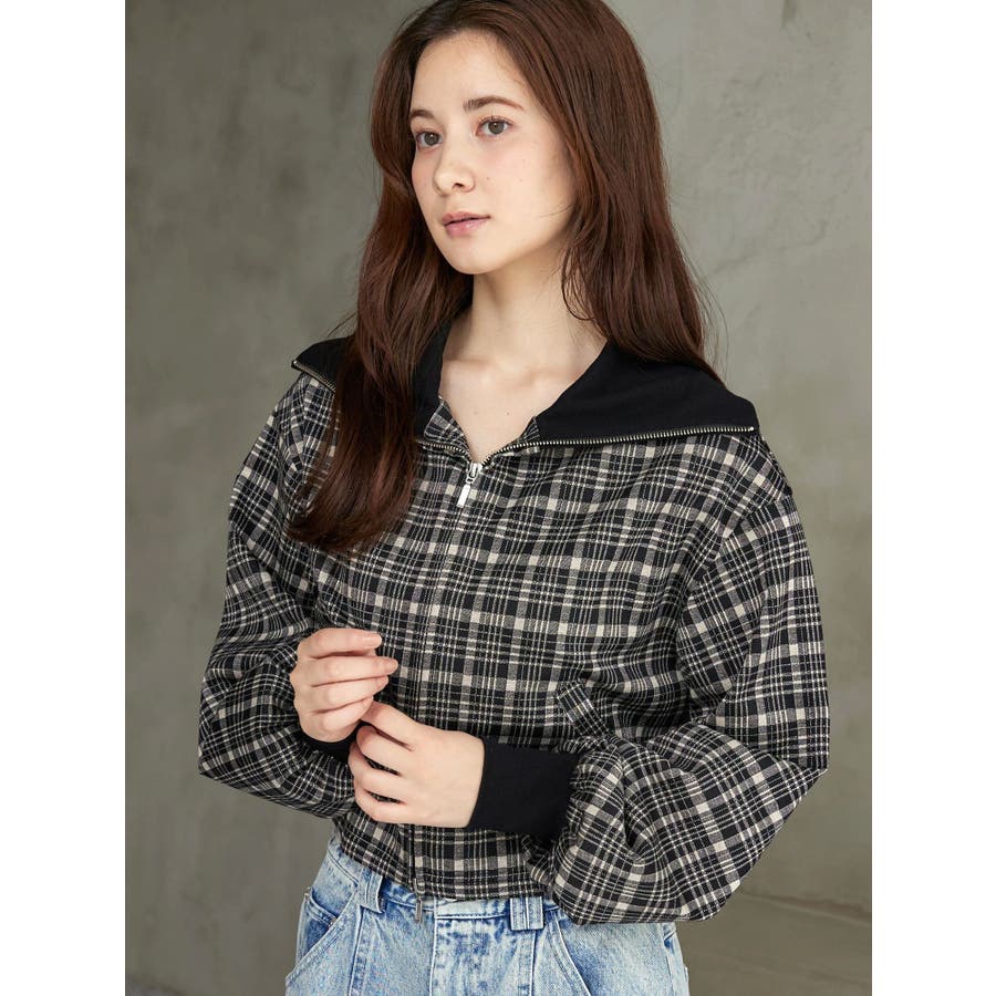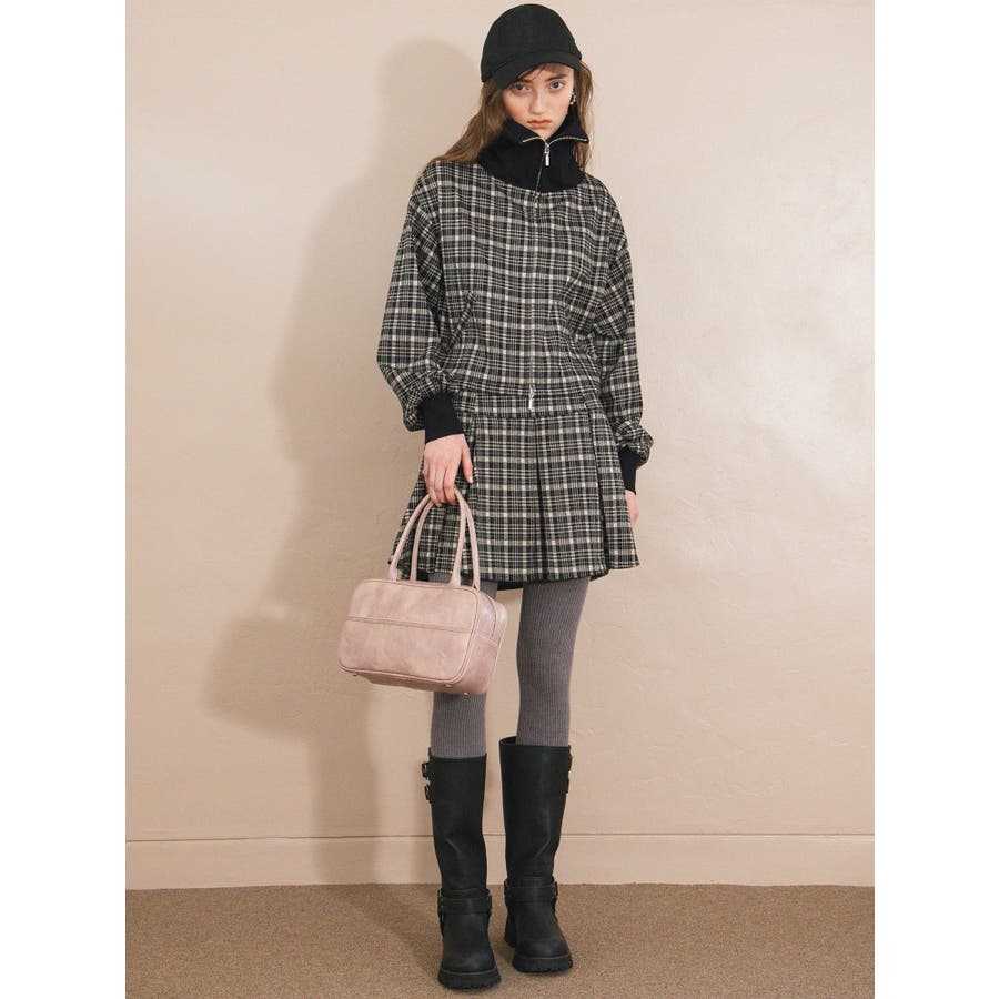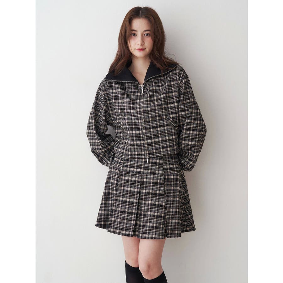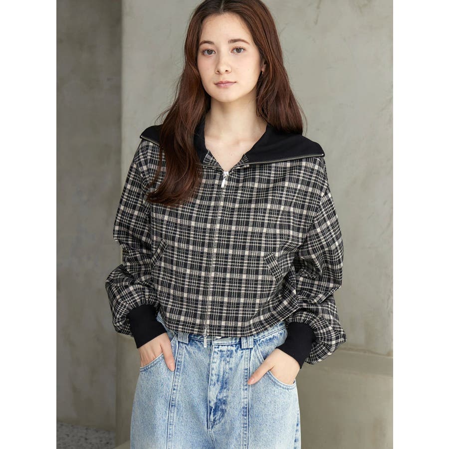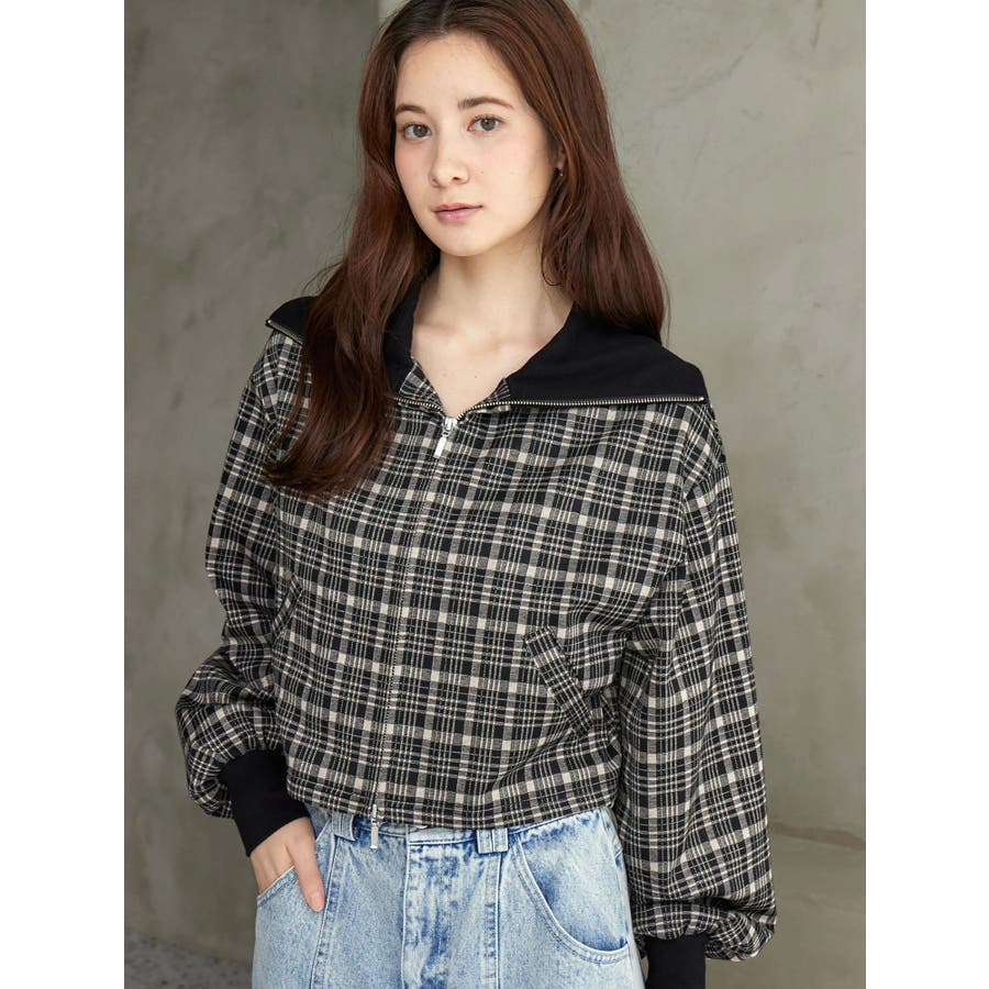チェックニットソーブルゾン
