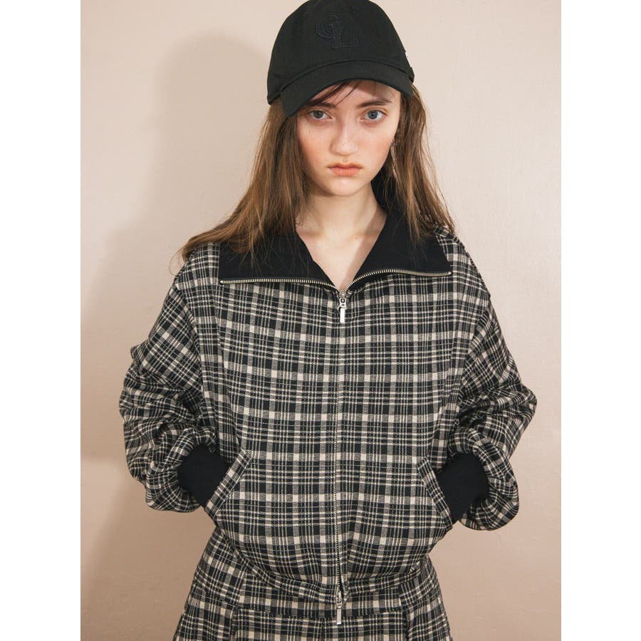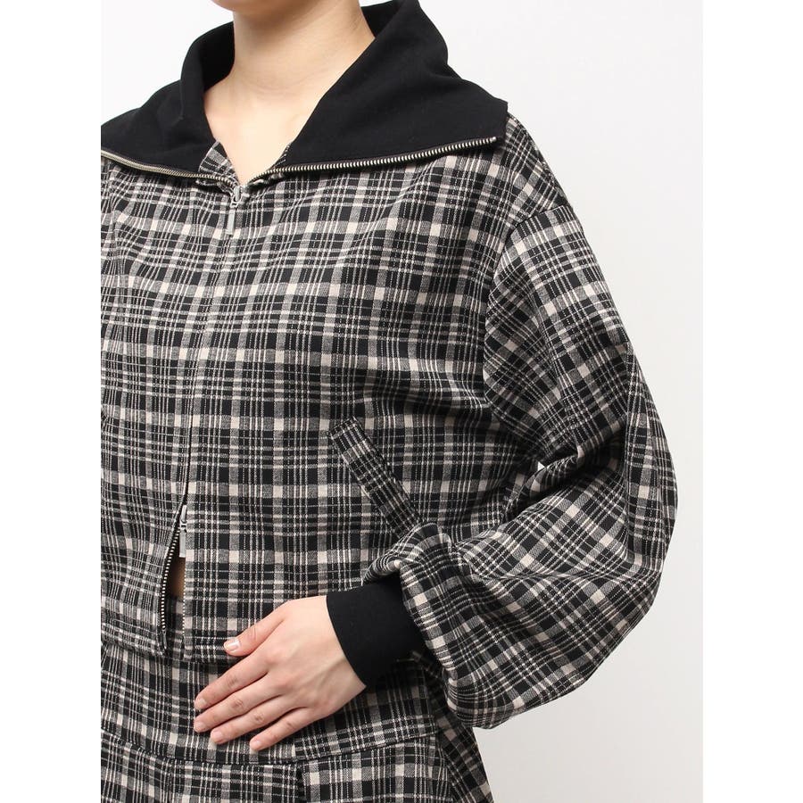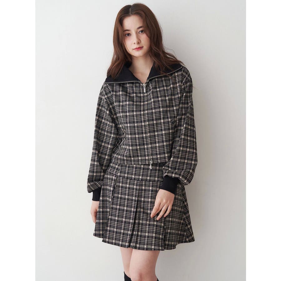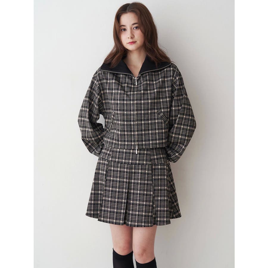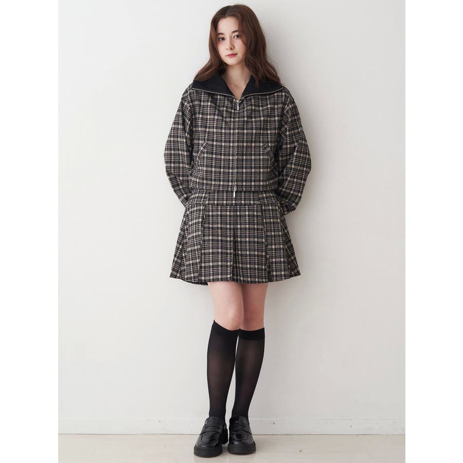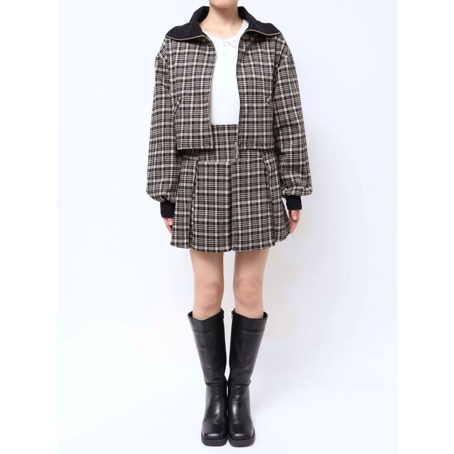 チェックニットソーブルゾン