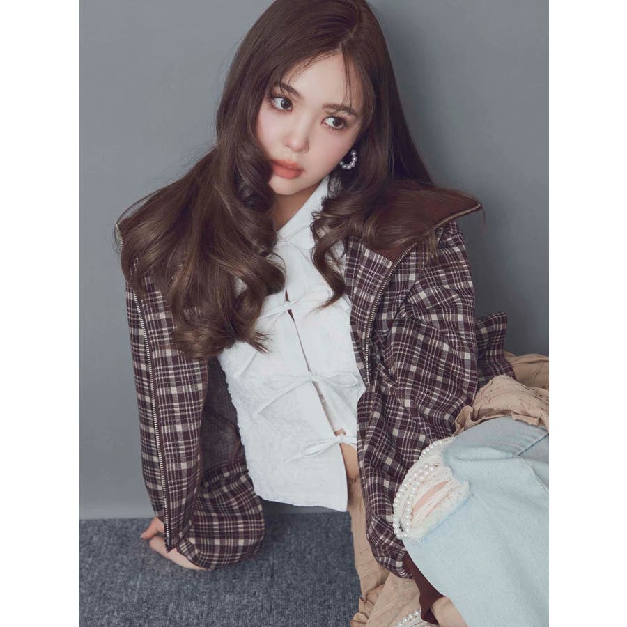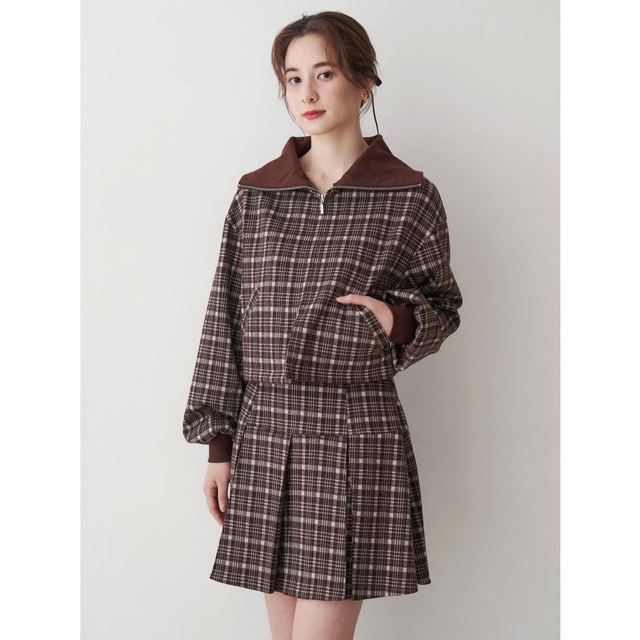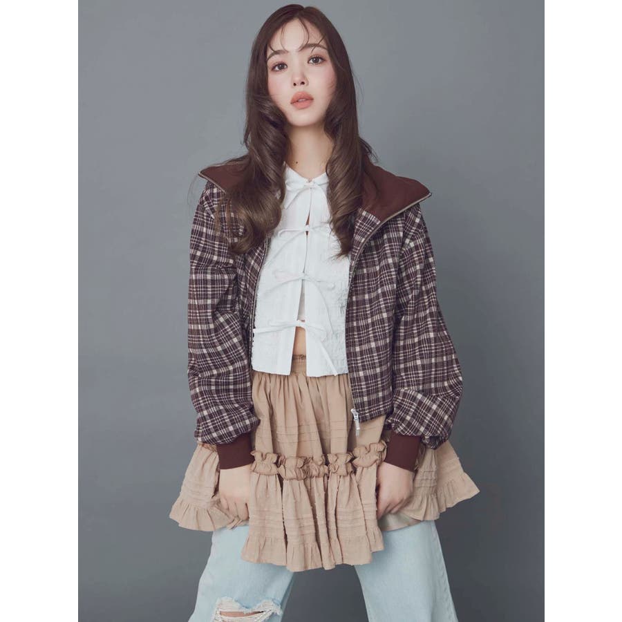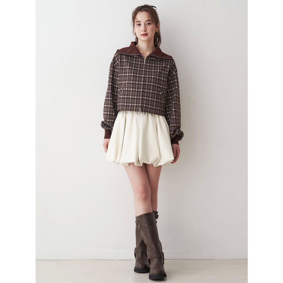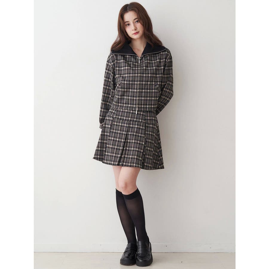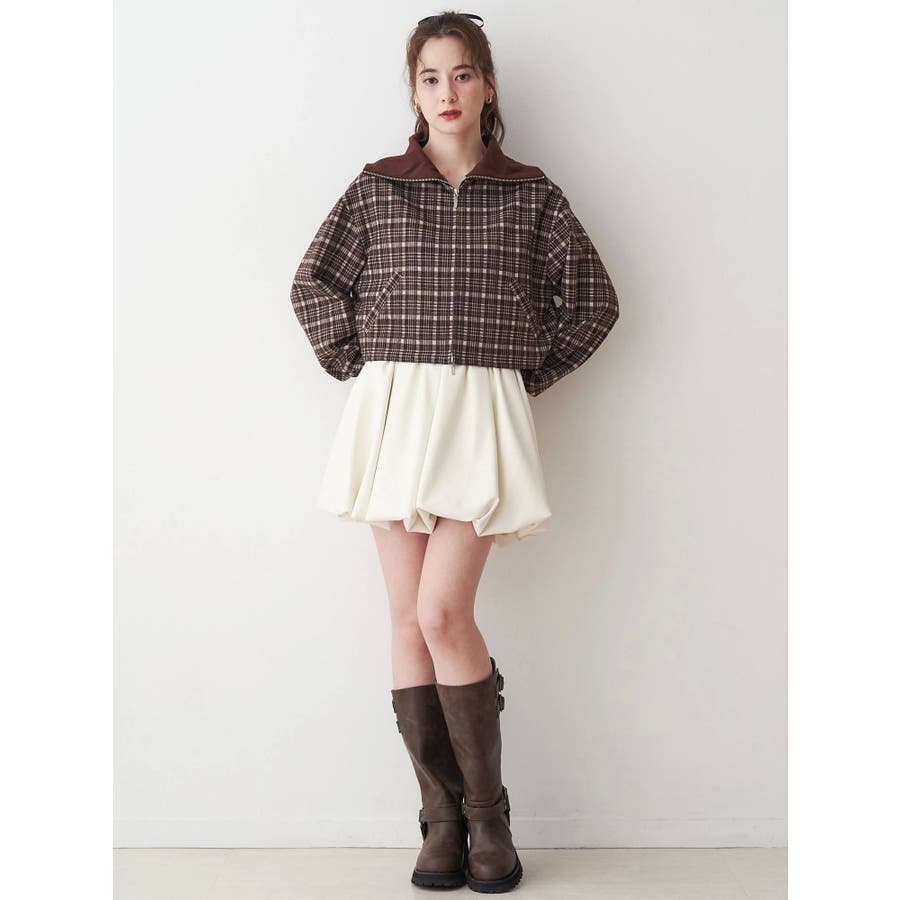 チェックニットソーブルゾン