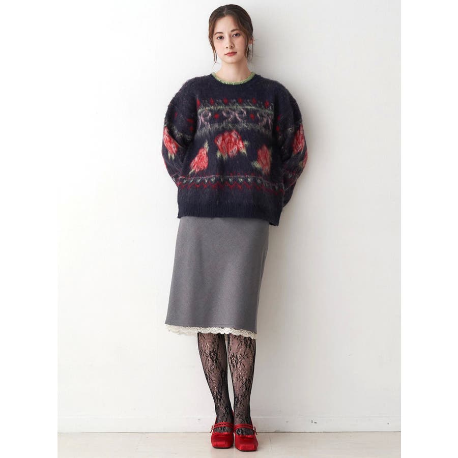 | 素材 | [グレー]表地:ポリエステル67% レーヨン32% ポリウレタン1% 裏地:ポリエステル100% レース:ナイロン100%[ダークブラウン/ライトミックス]表地:ポリエステル83% レーヨン15% ポリウレタン2% 裏地:ポリエステル100% レース:ナイロン100% |