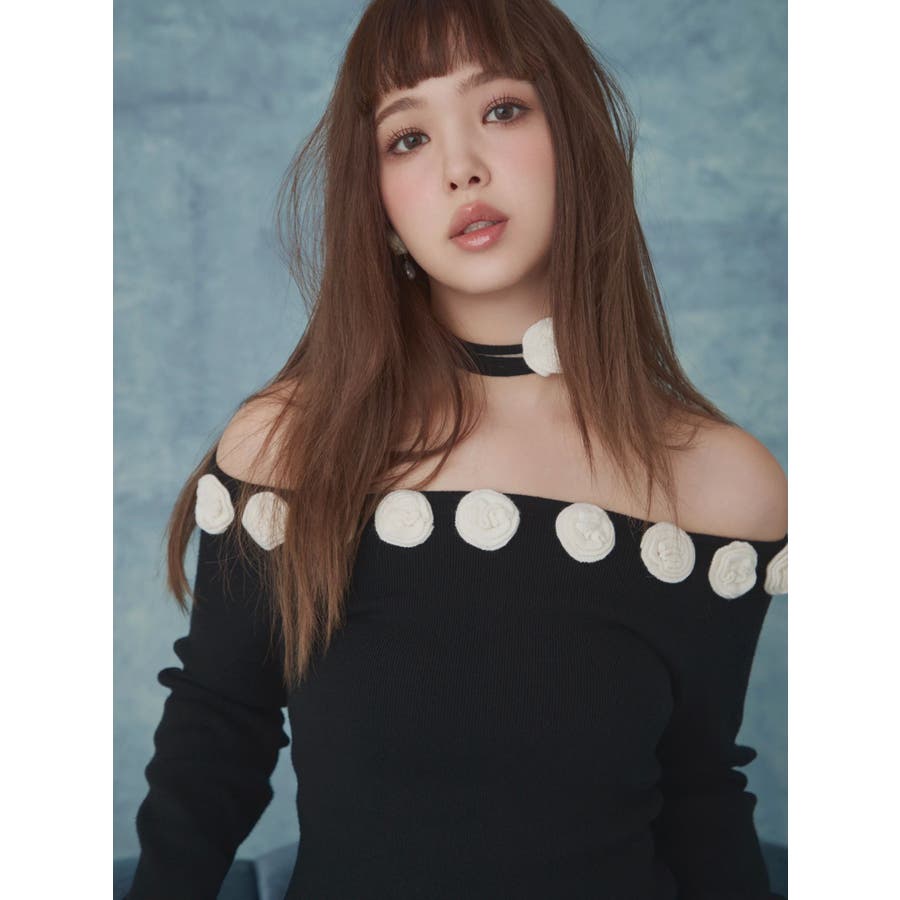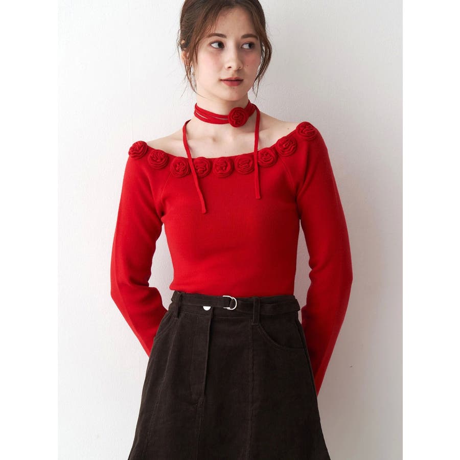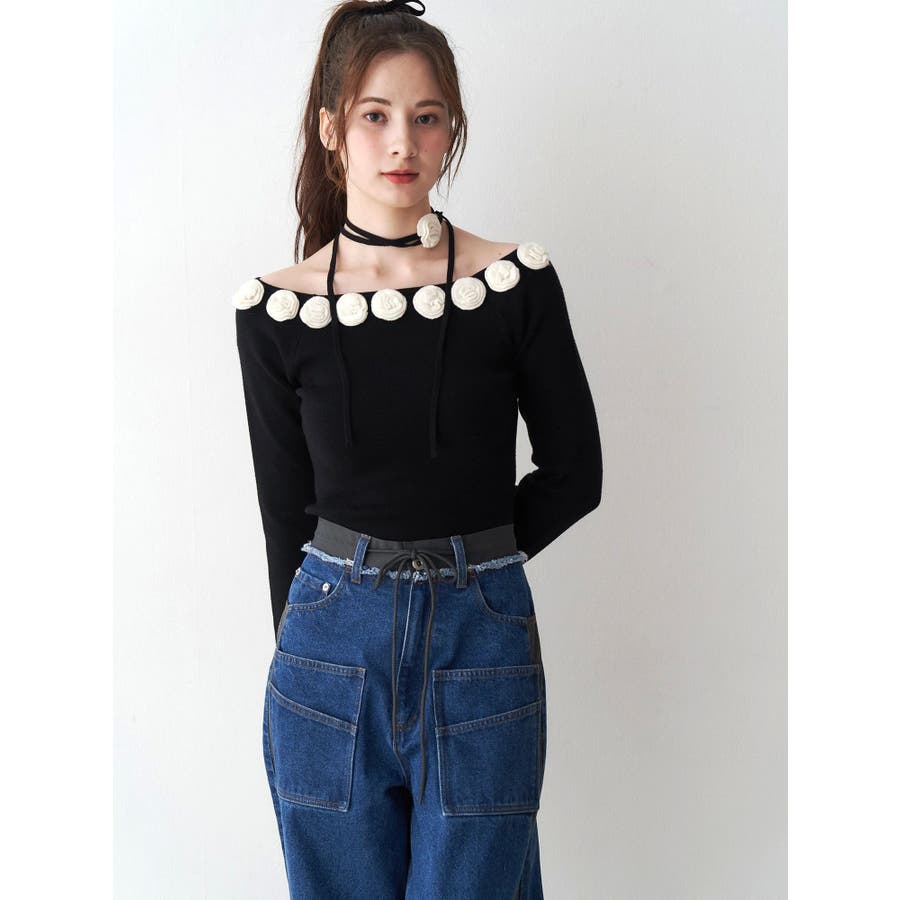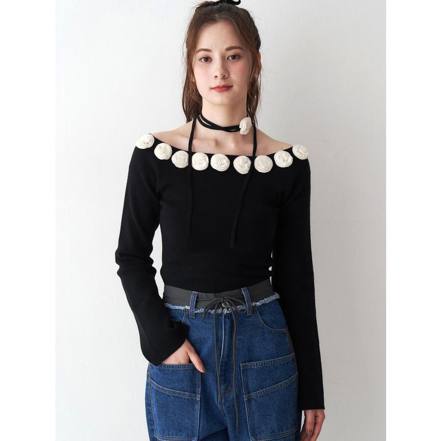 3Dローズチョーカー付きニット