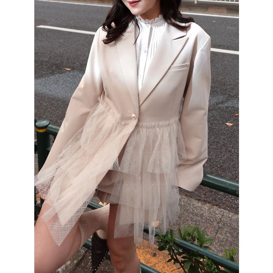 | 素材 | 表地:ポリエステル79% レーヨン15% ポリウレタン6% 裏地:ポリエステル100% 別布:ポリエステル100% |