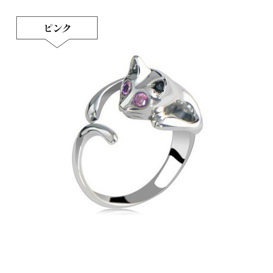 指に猫がぐるっと巻き付いた個性的なデザインの指輪です。