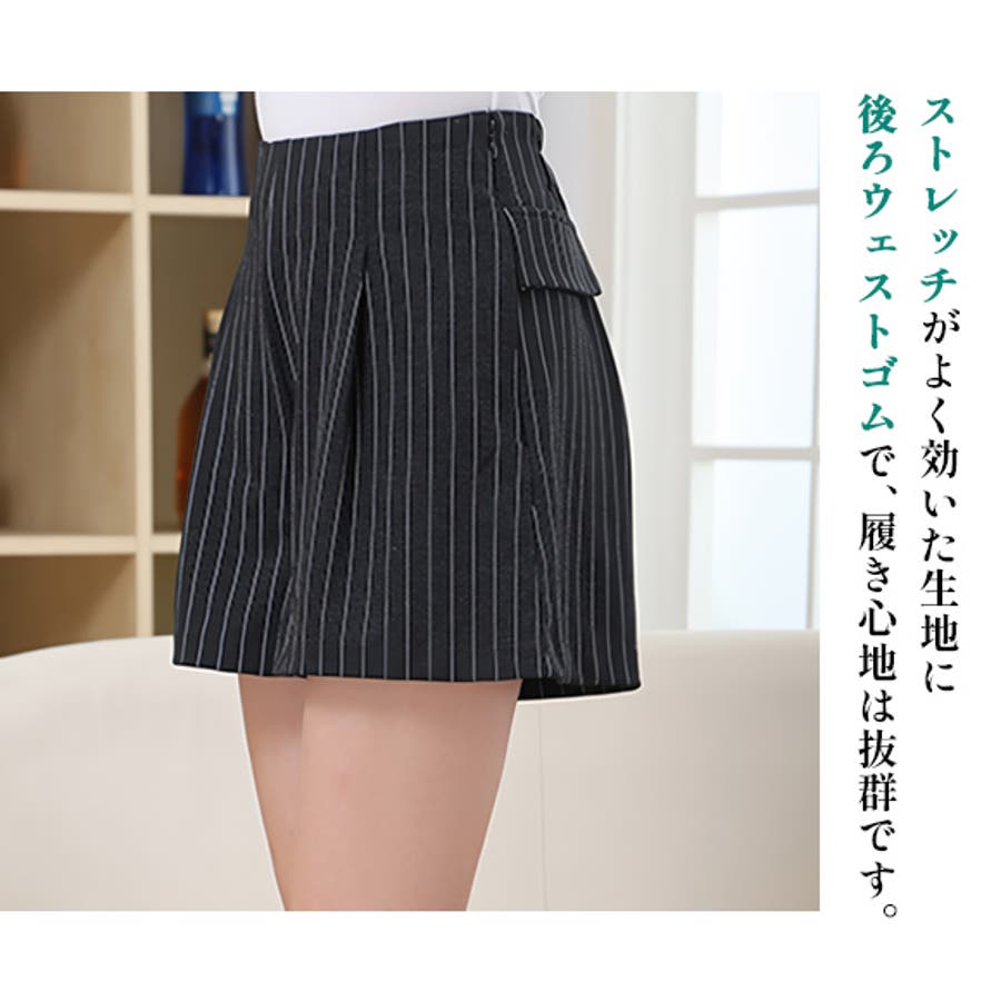 キュロット感のあるフレアなシルエットは、女性らしさと美脚を実現します。