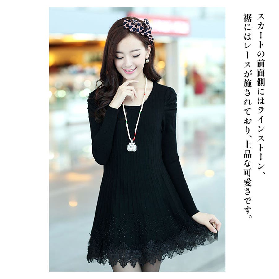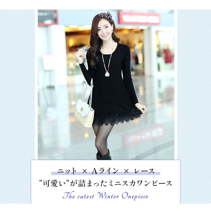 スカート裾のレース&ラインストーンが上品でフェミニン可愛い。