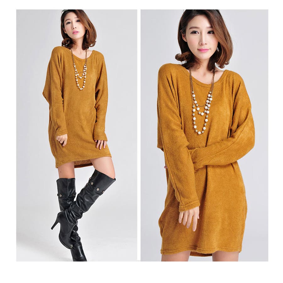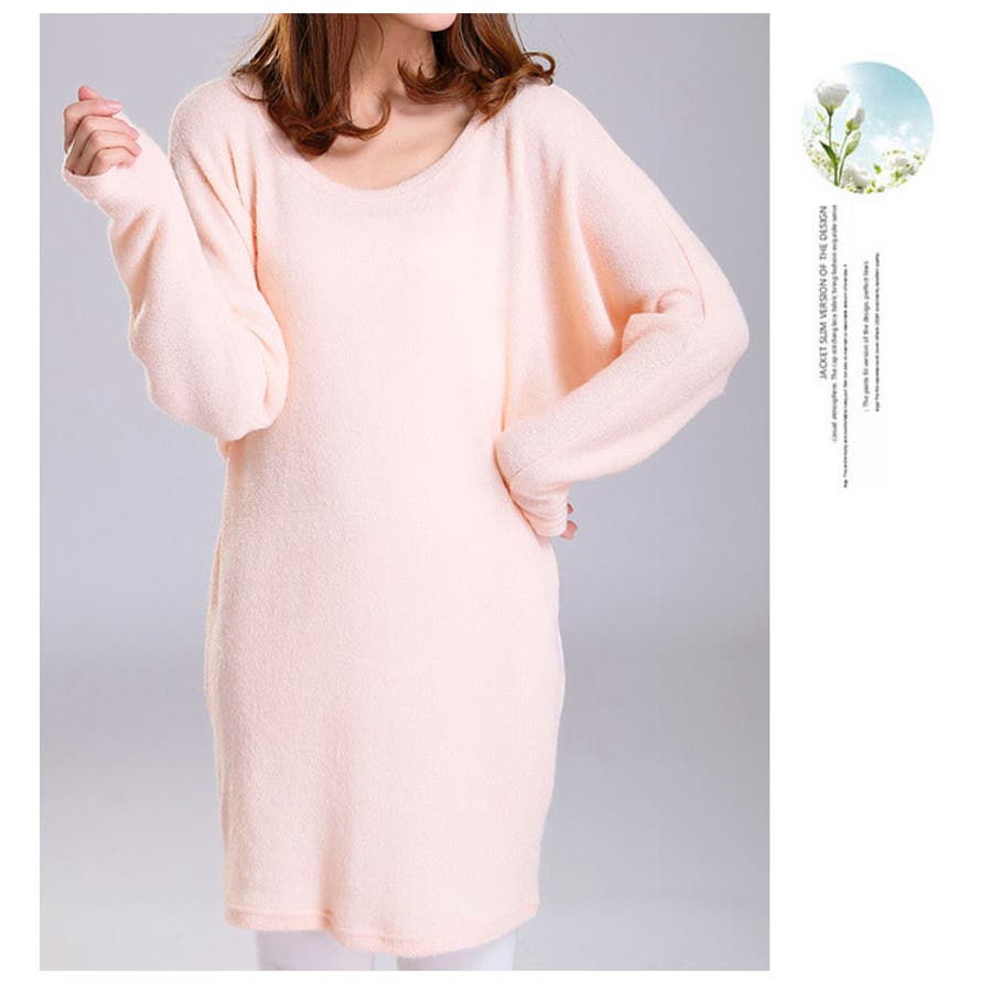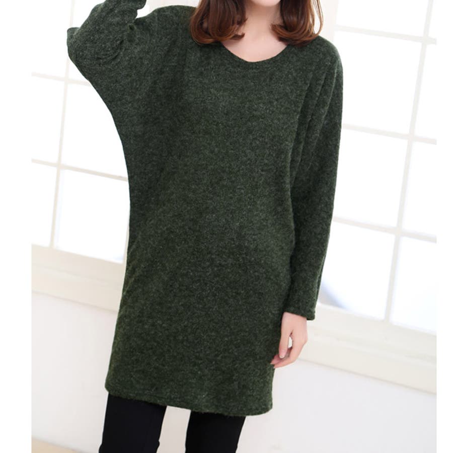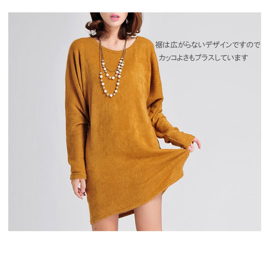 ニットワンピース 秋冬 ドルマン Uネック レディース チュニック169001