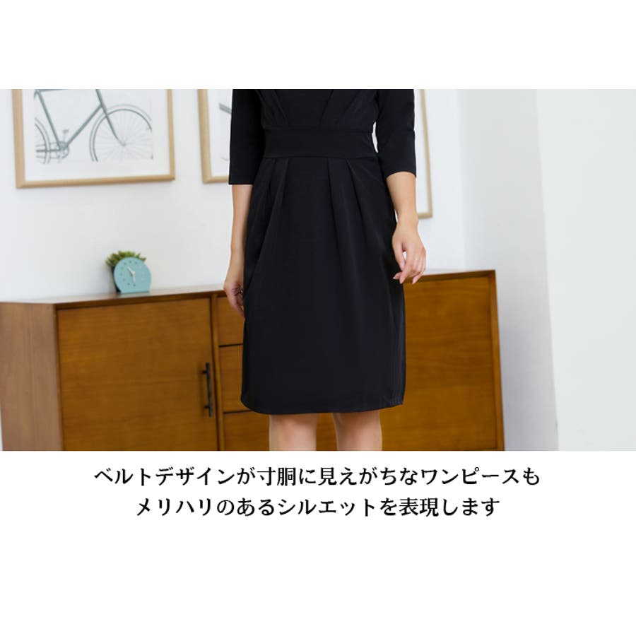 ベルトデザインが寸胴に見えがちなワンピースもメリハリのあるシルエットを表現します