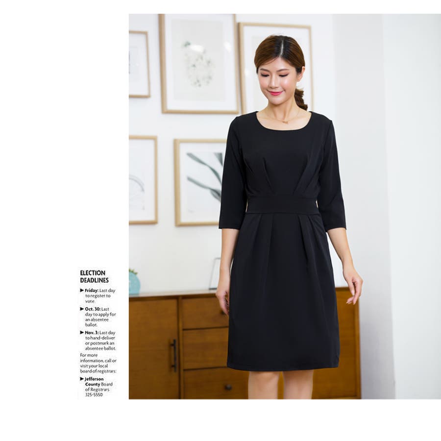 上品なひざ下丈でシックにまとまるのも魅力的です