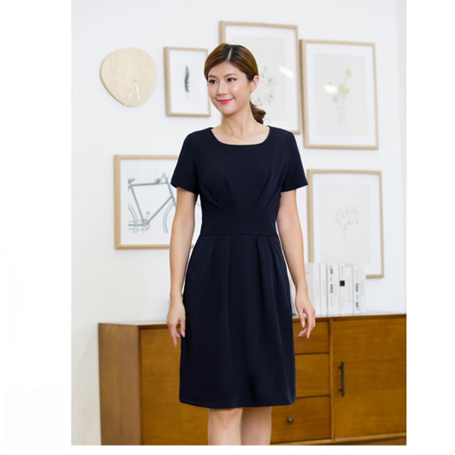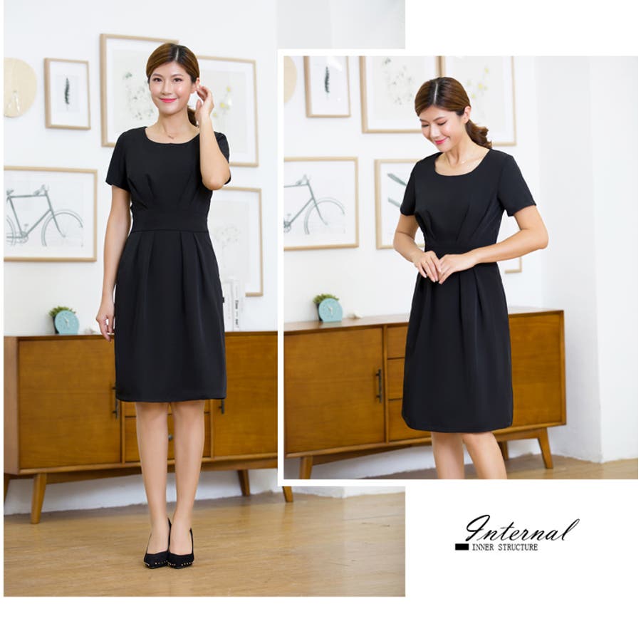 ハリのある質感と立体的に魅せるフロントタックが愛らしいフェミニンワンピース