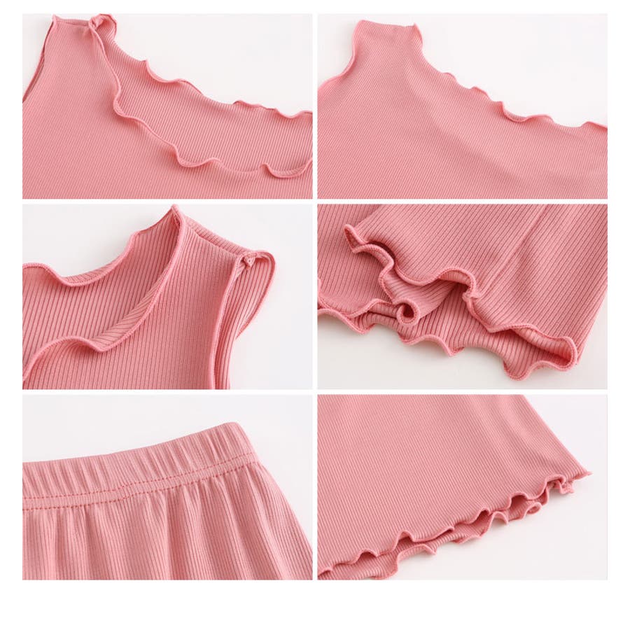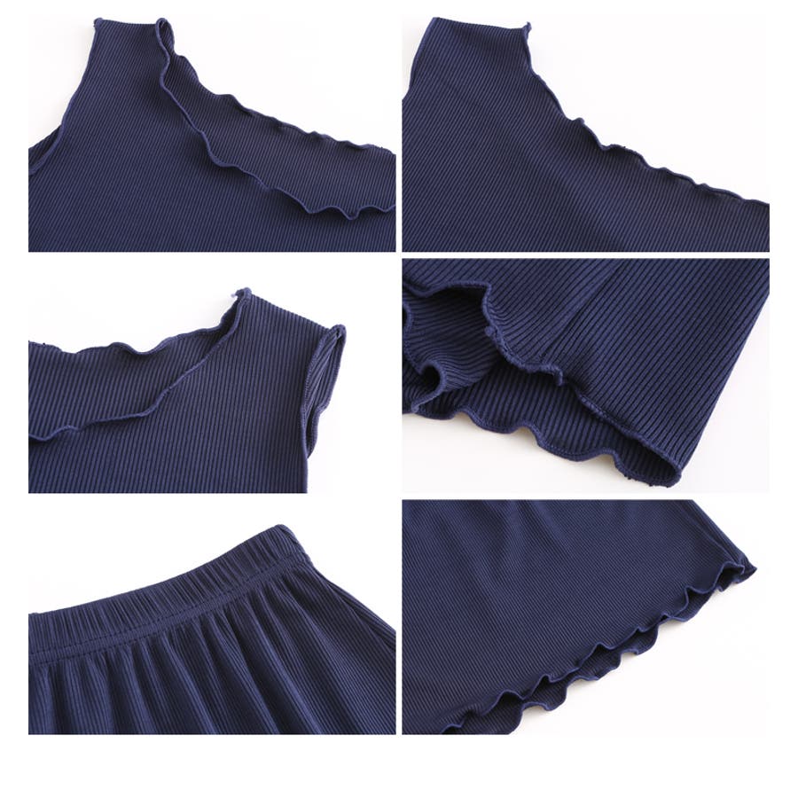 腕をすっきりと細く魅せてくれるノースリーブのセットアップです