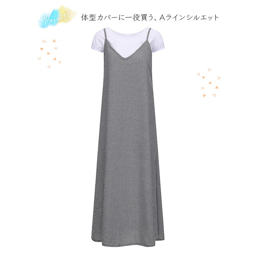 Aラインのワンピースなので、これ1枚で体型カバーも。