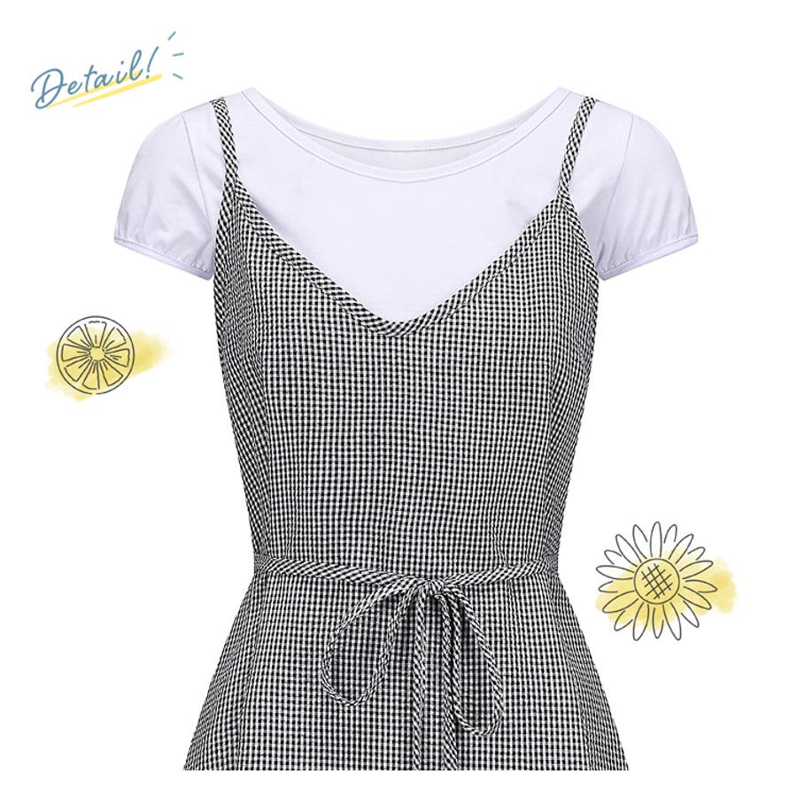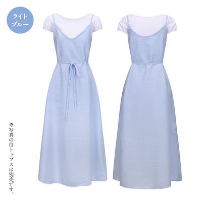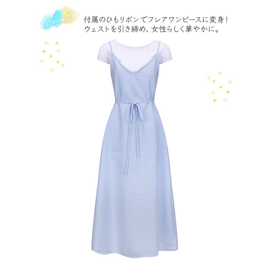 付属のひもリボンでウェストを引き締めれば、フレアワンピースに変身。