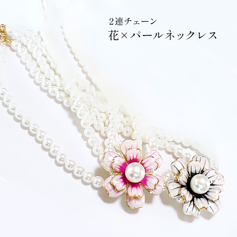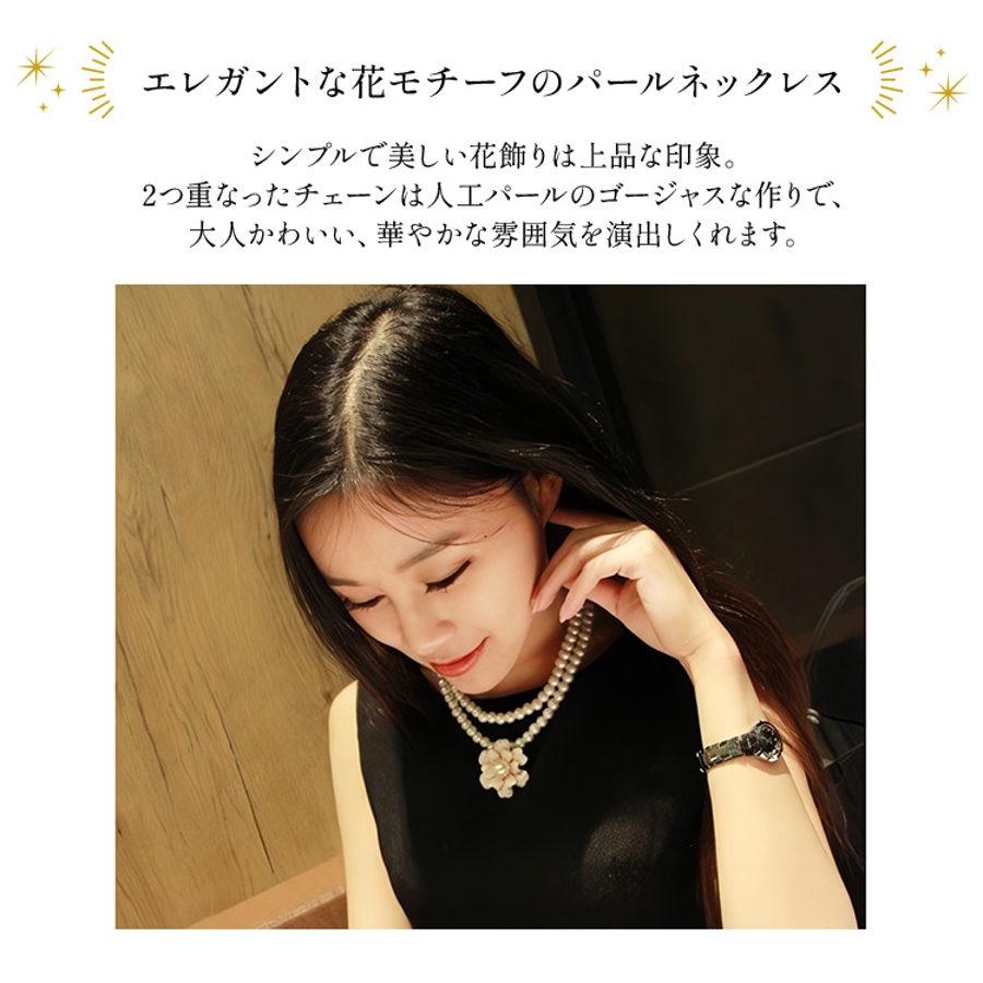 チェーンが2つ重なっており、人工パールのゴージャスな作りで、