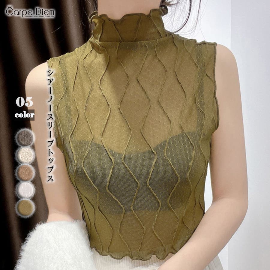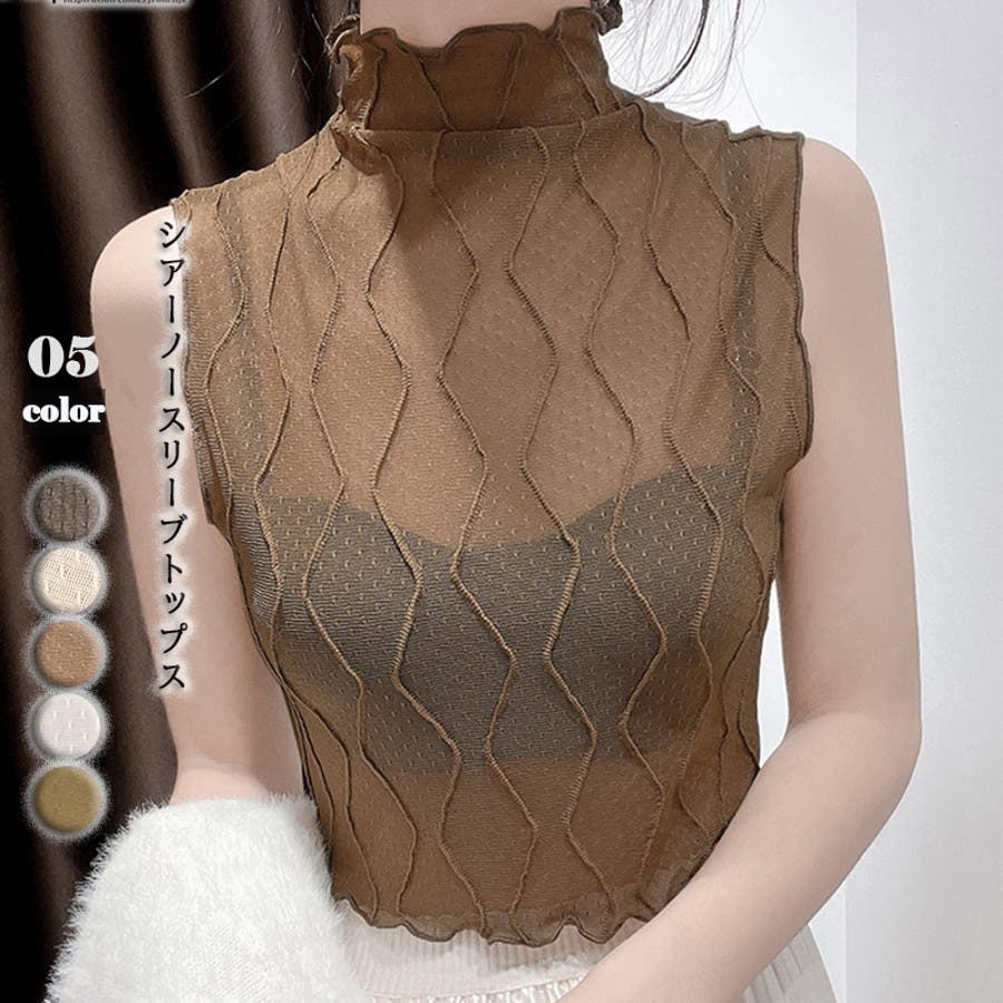 シアー ノースリーブ トップス