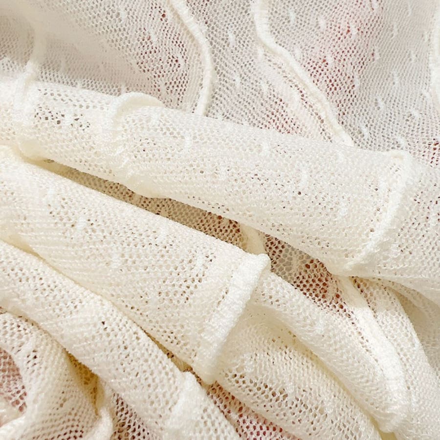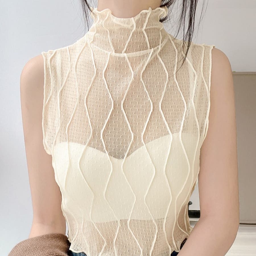 透け感のあるメッシュ生地に立体的なウェーブラインを施した、トレンド感あふれるノースリーブトップス。